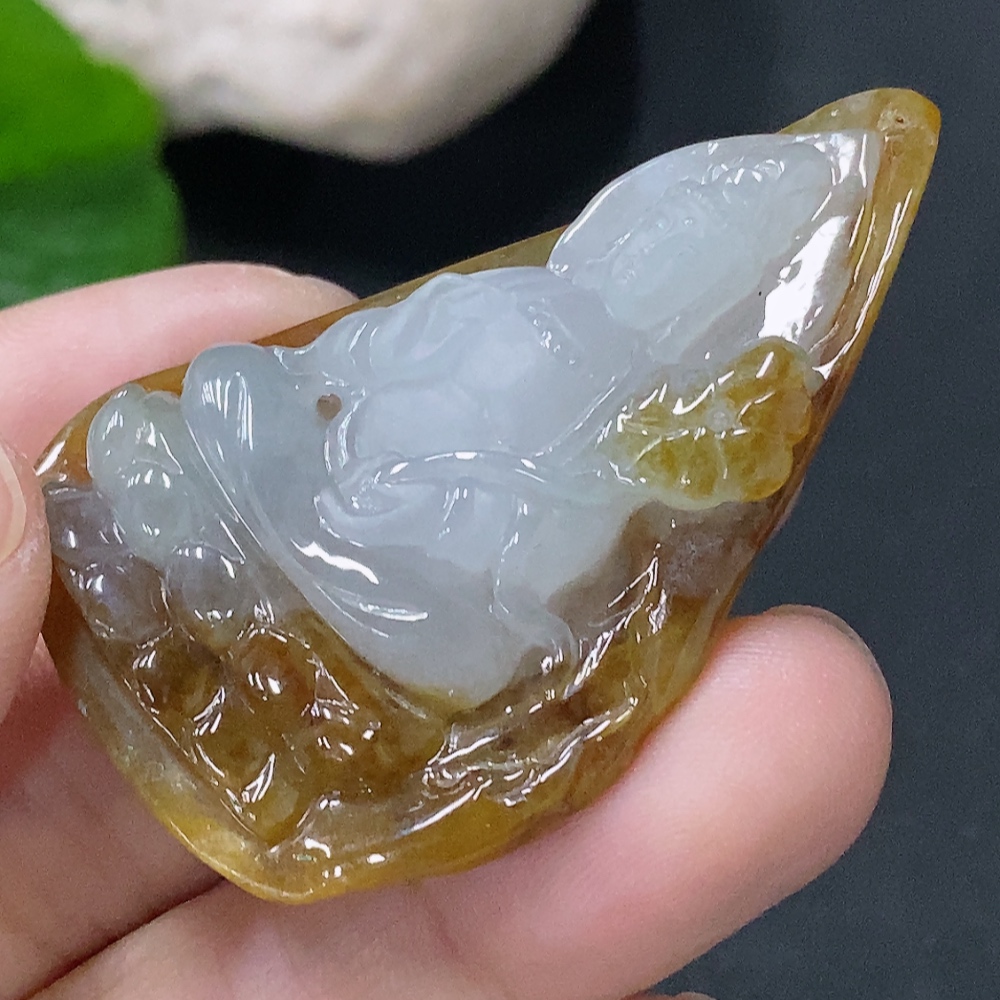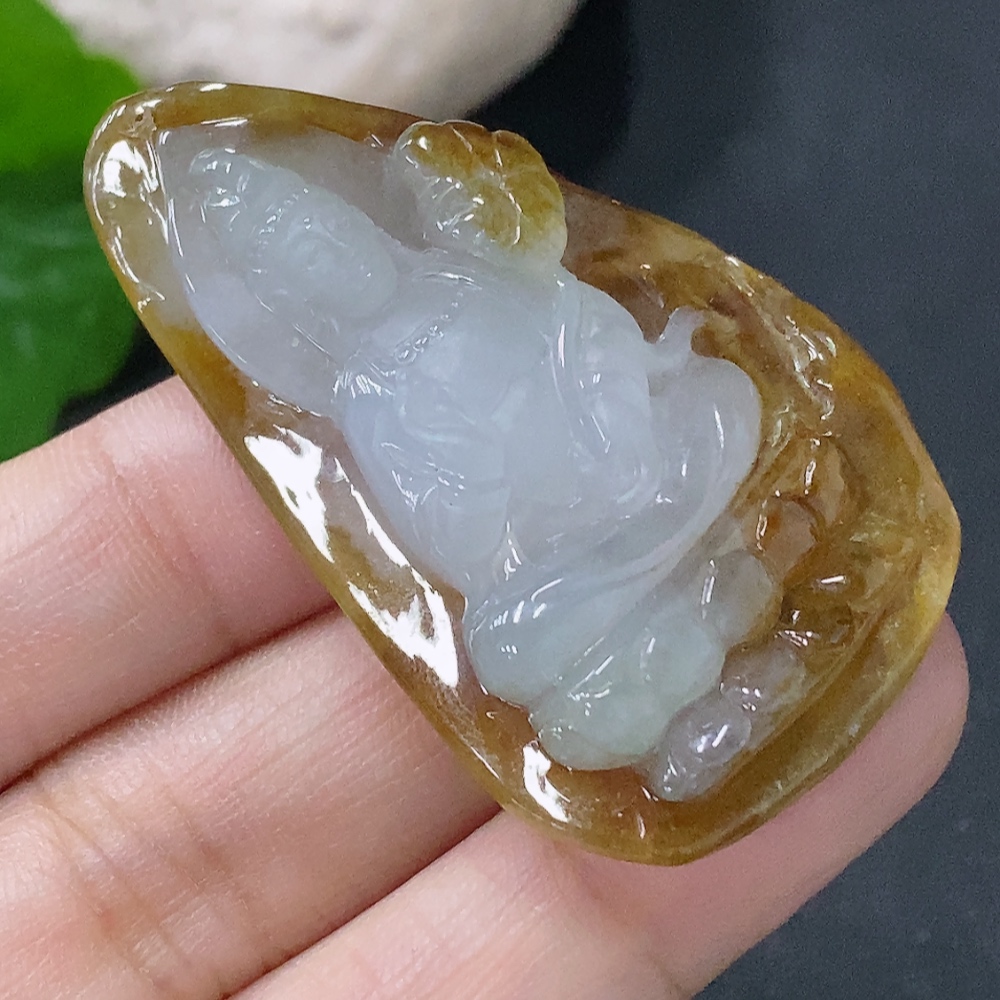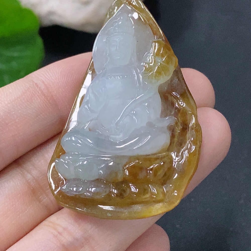 Jadeite Pendant Guanyin Total Weight: Approx. 18.98g Color Origin Undetermined