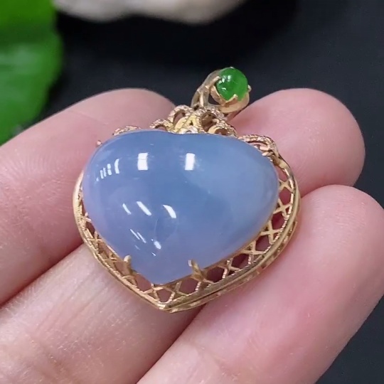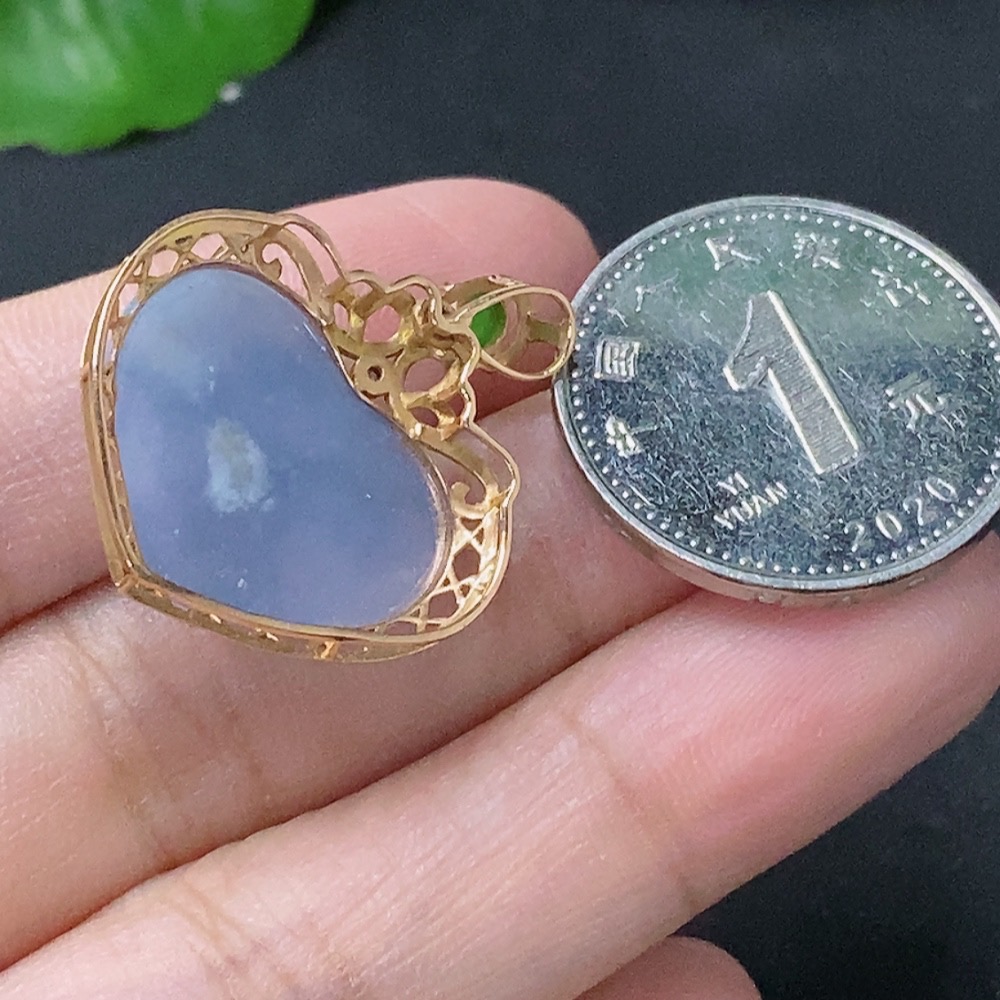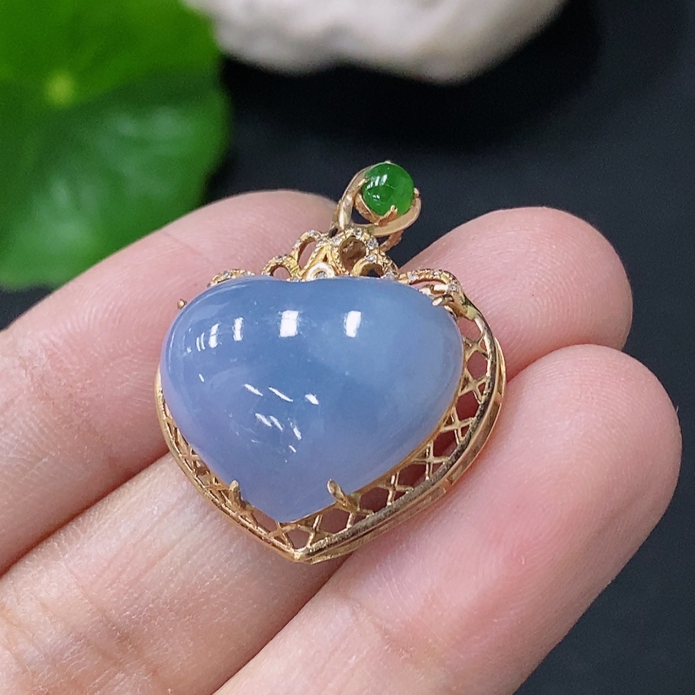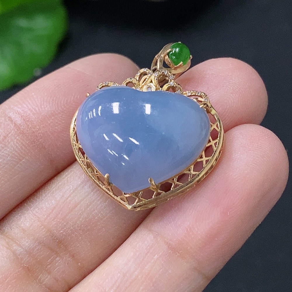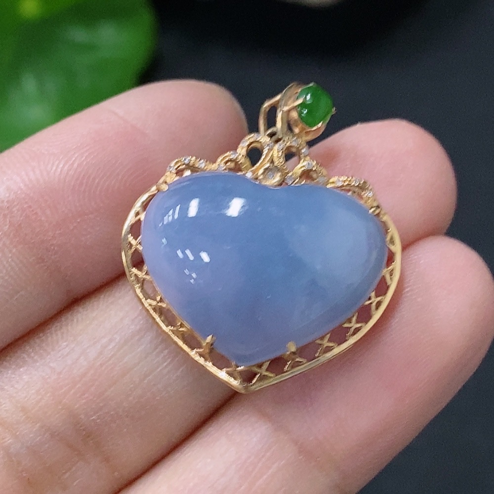 Jadeite Heart Pendant with 18K Gold and Diamond Accents, Total Weight Approximately 4g