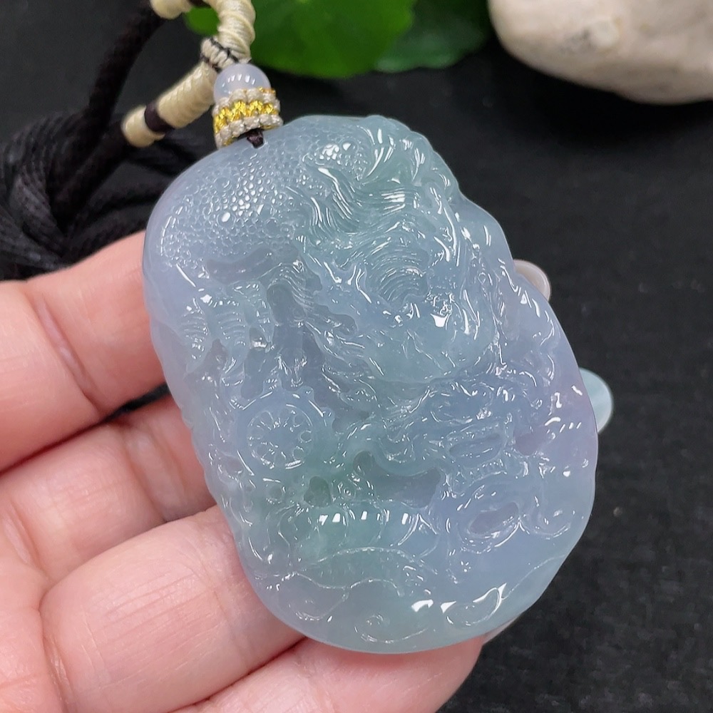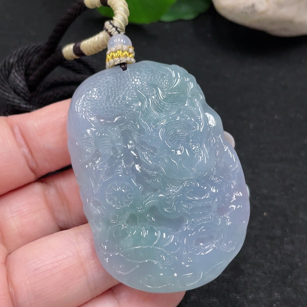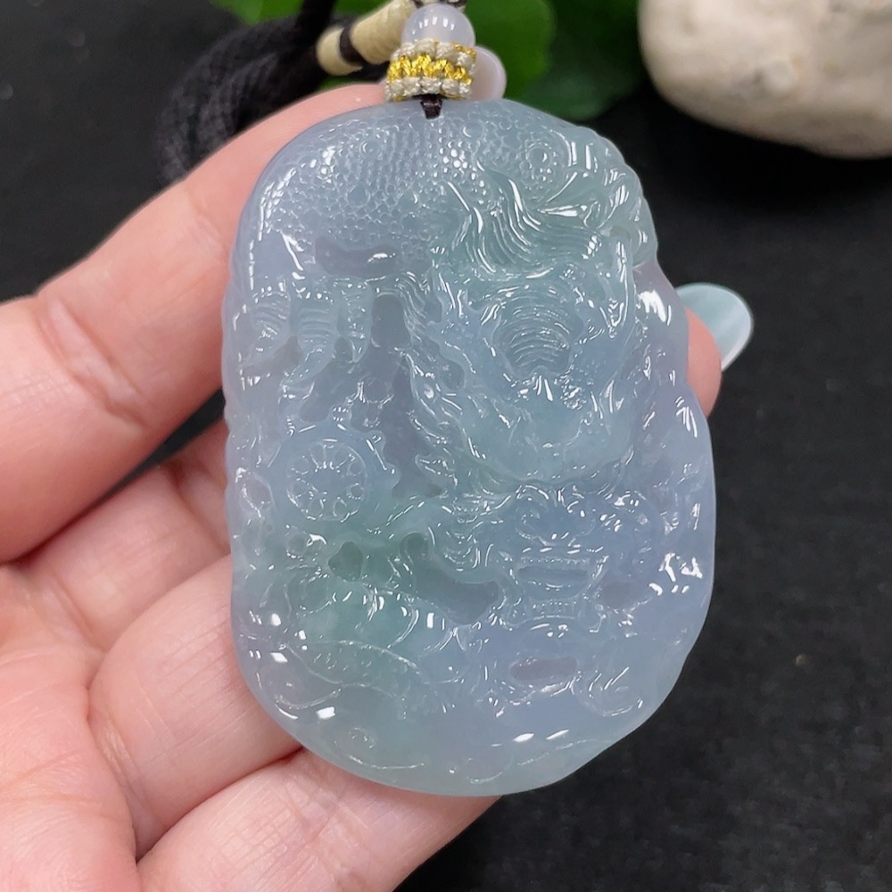 Jadeite Dragon Pendant Total Weight Approx. 37.3g (Including Rope Weight)