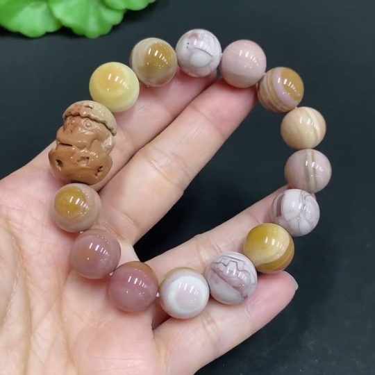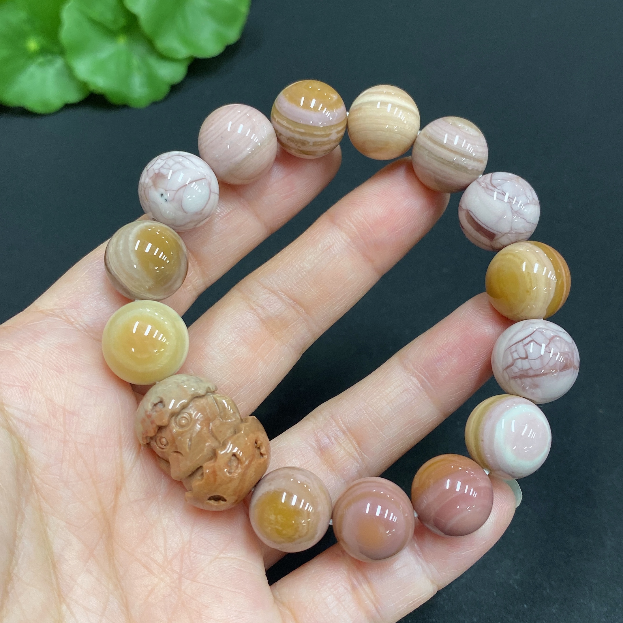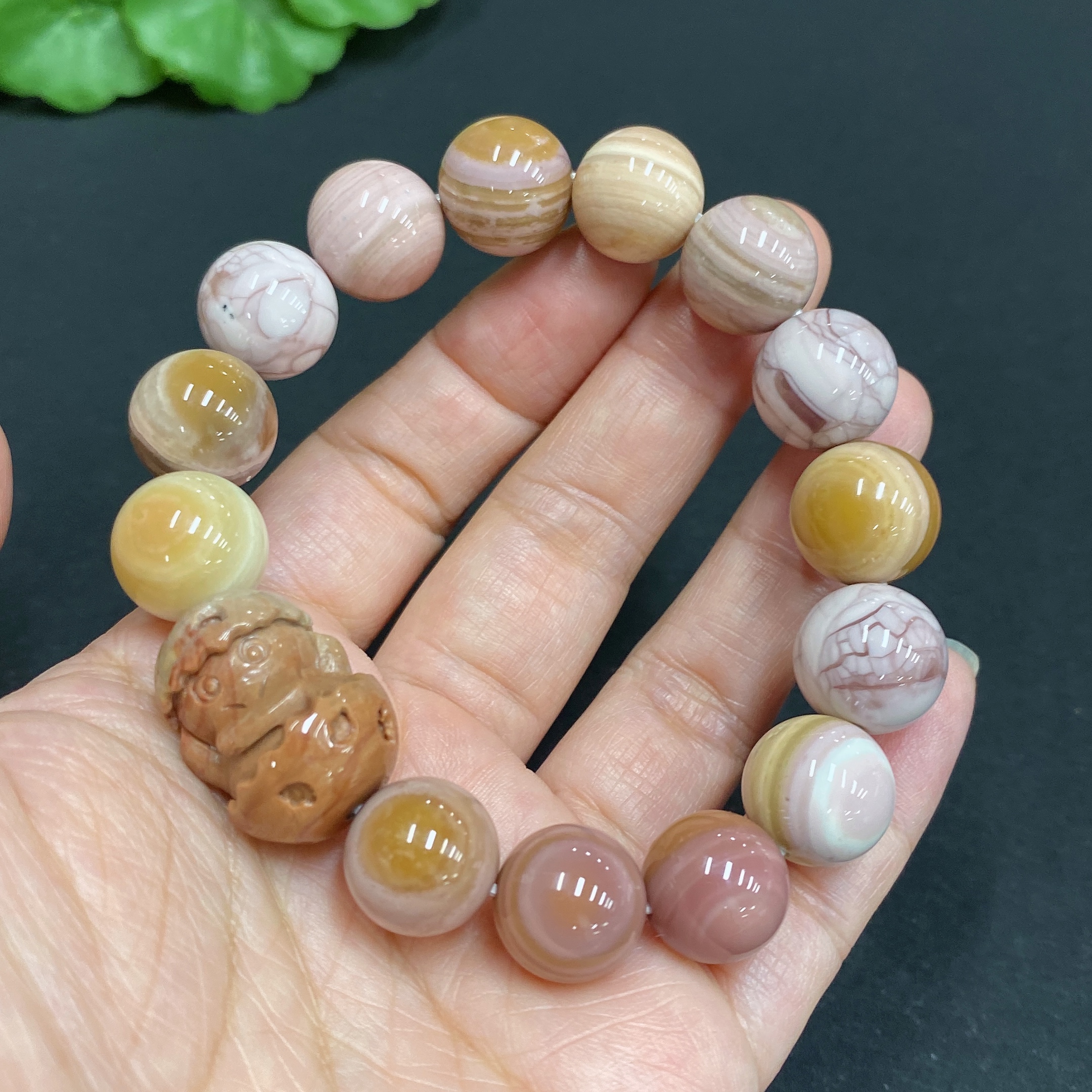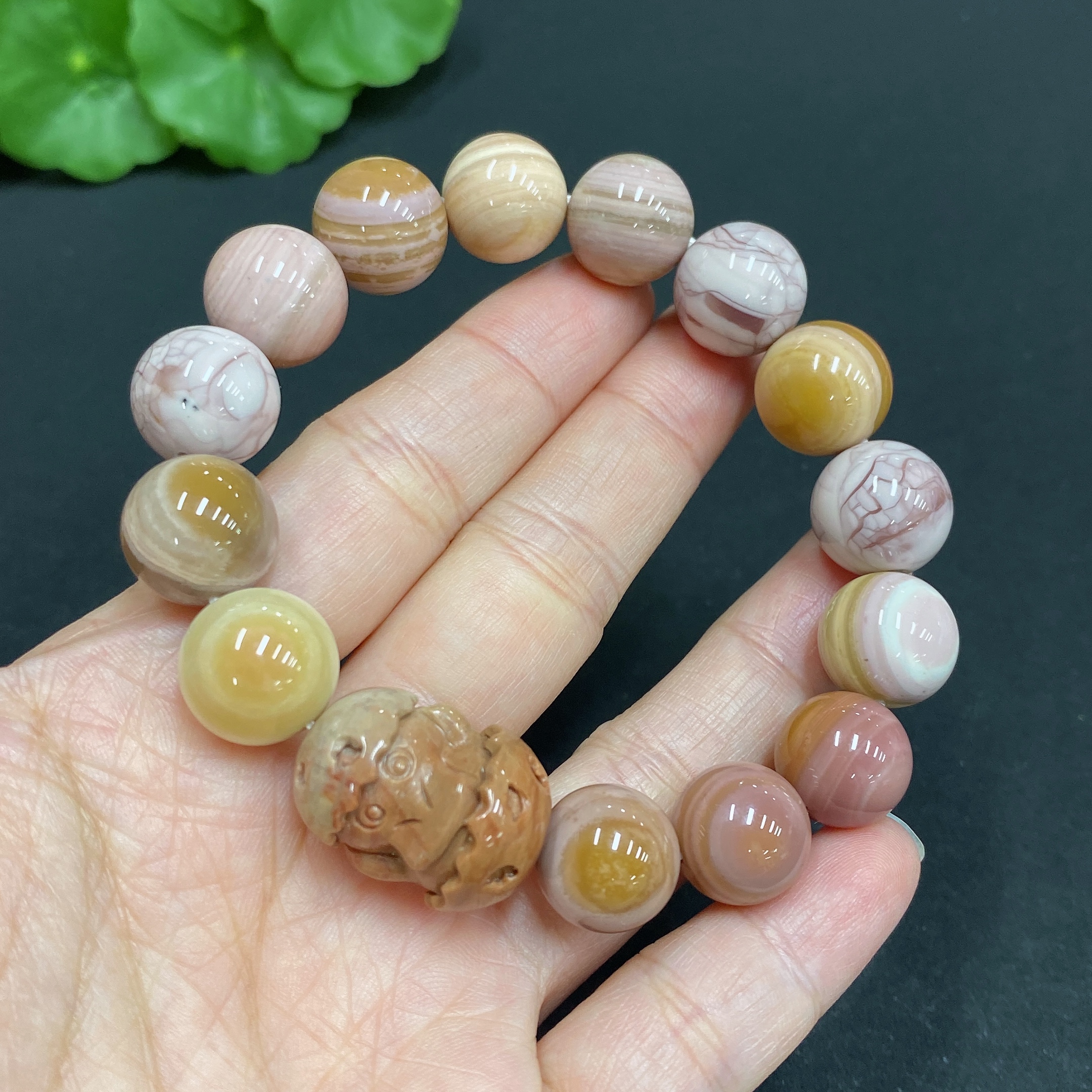 Alashan Agate Bracelet Approx. 12mm Total Weight About 44.5g Contains Other Mineral Components