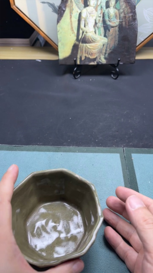 Ceramic, intact, octagonal brush washer from small kiln (subject to the actual item)