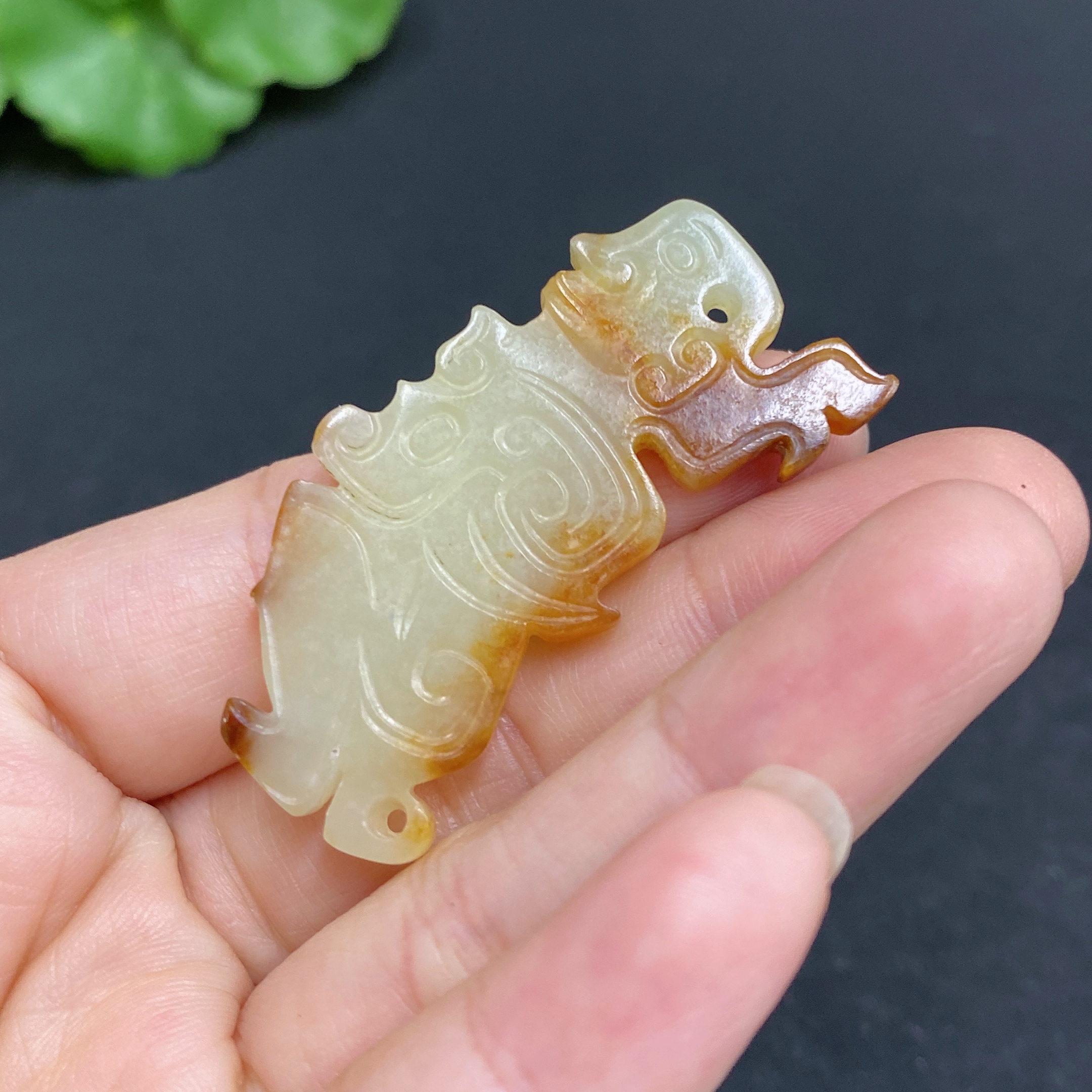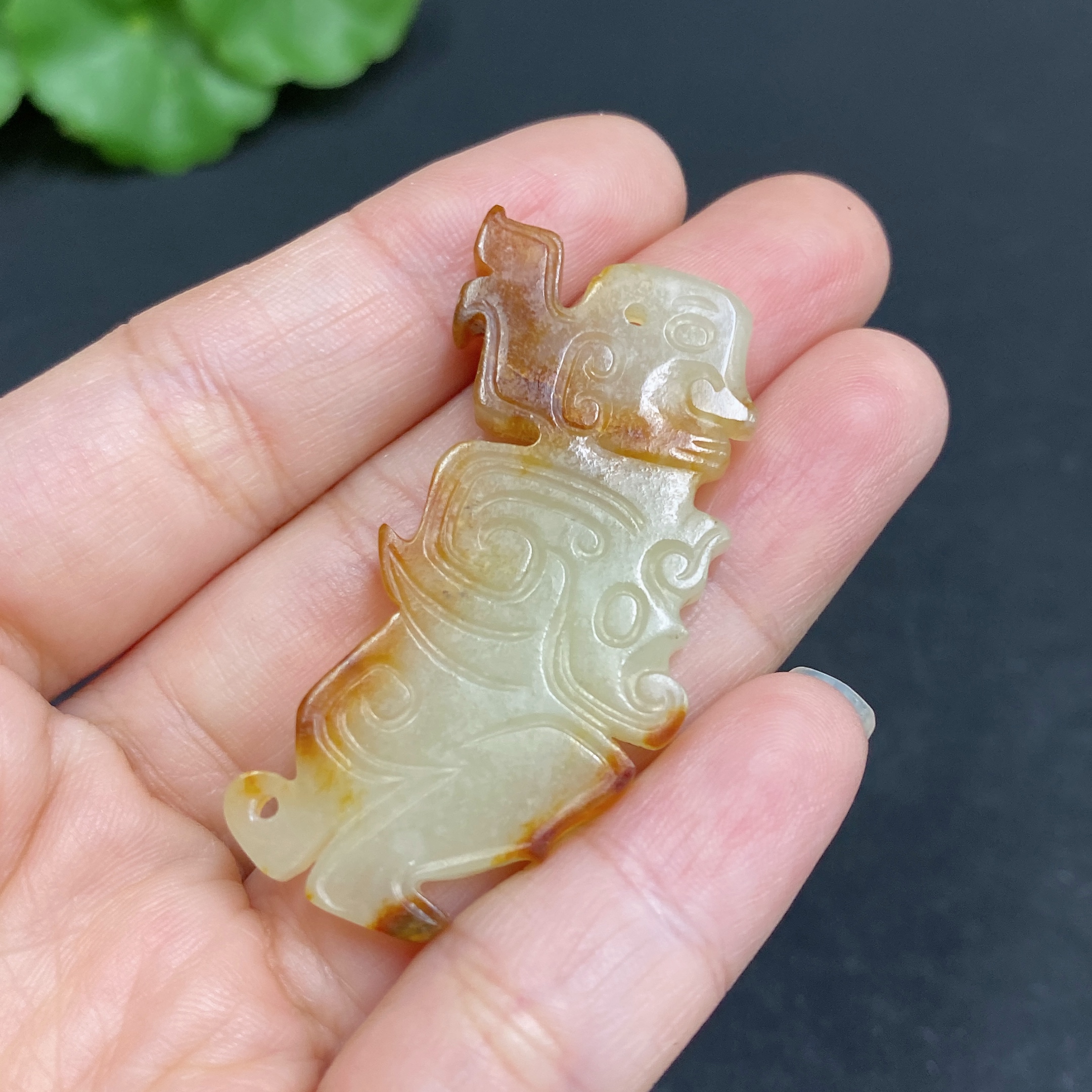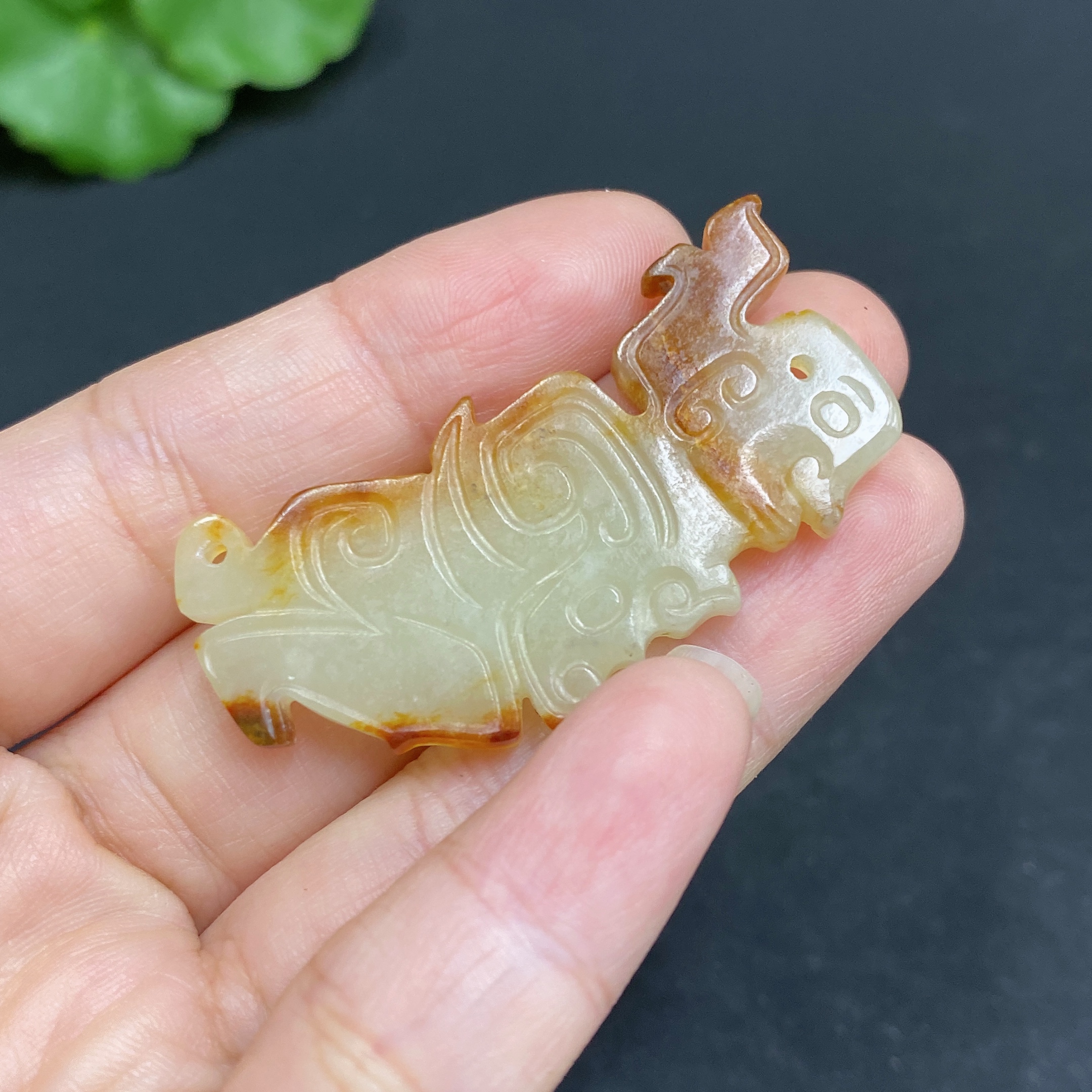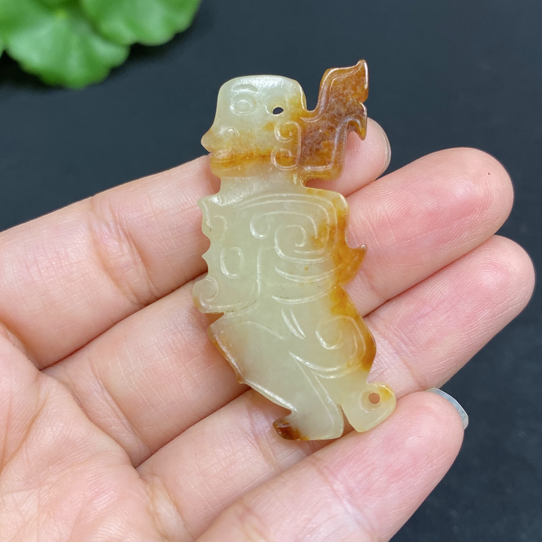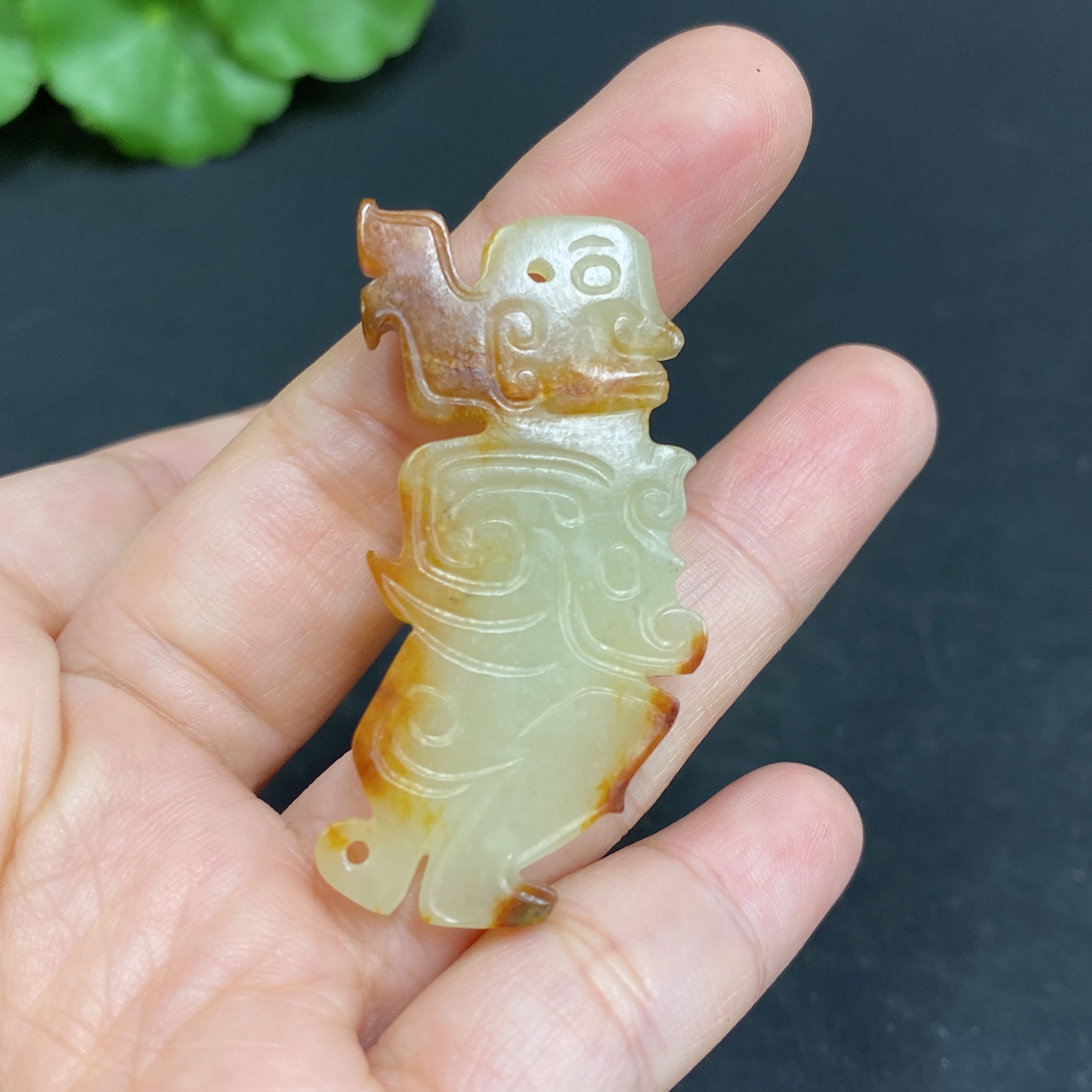 Hetian Jade Pendant, Antique-style Piece, Undetermined Skin Color Origin, Total Weight Approximately 7.7g