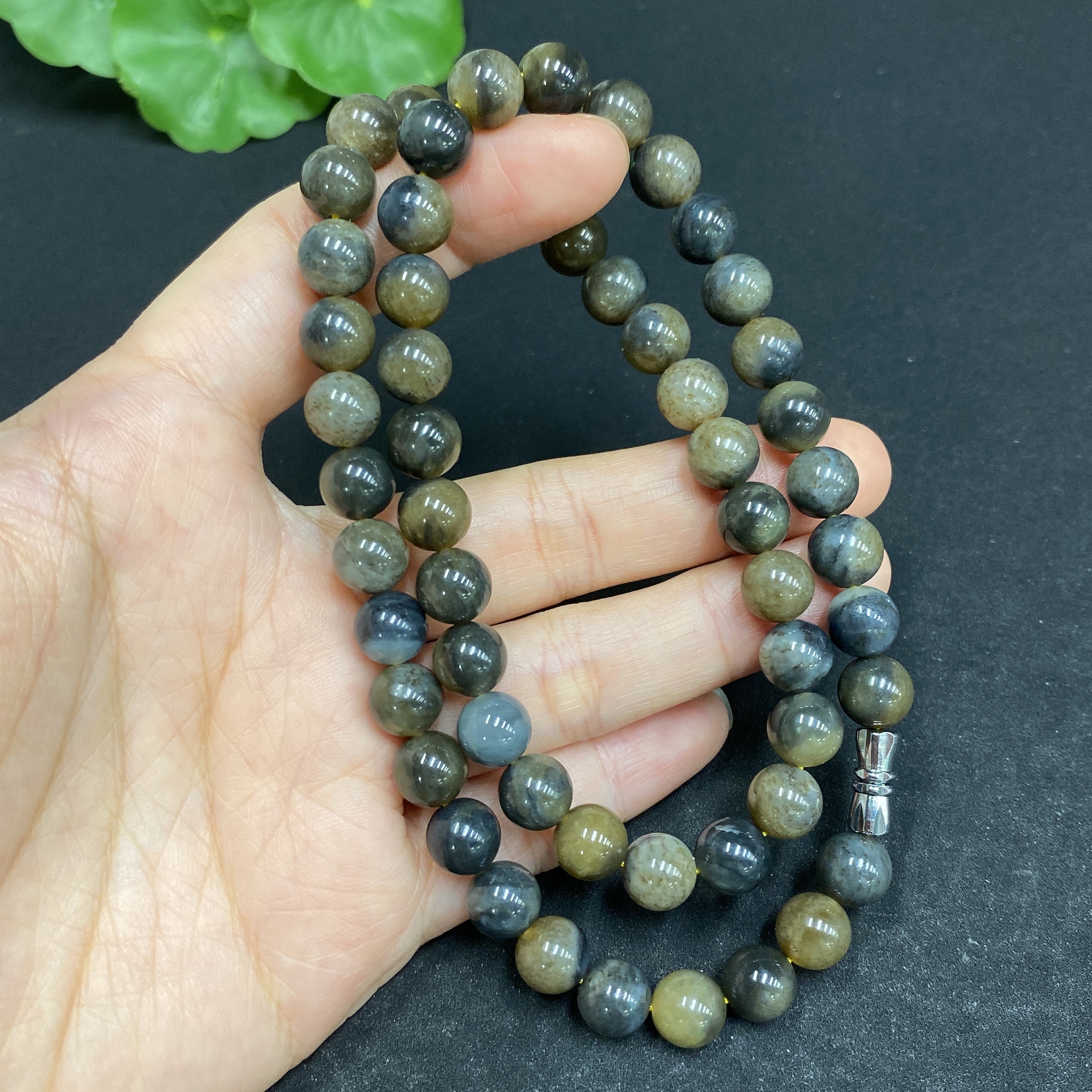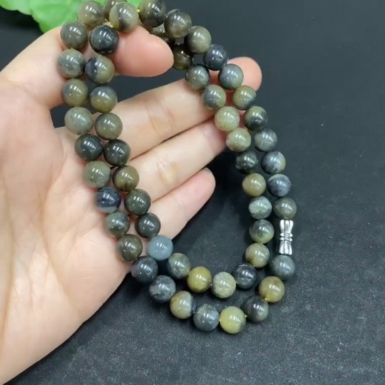 Hetian Jade Beaded Necklace Approx. 7.7mm Beads Total Weight Approx. 43.4g