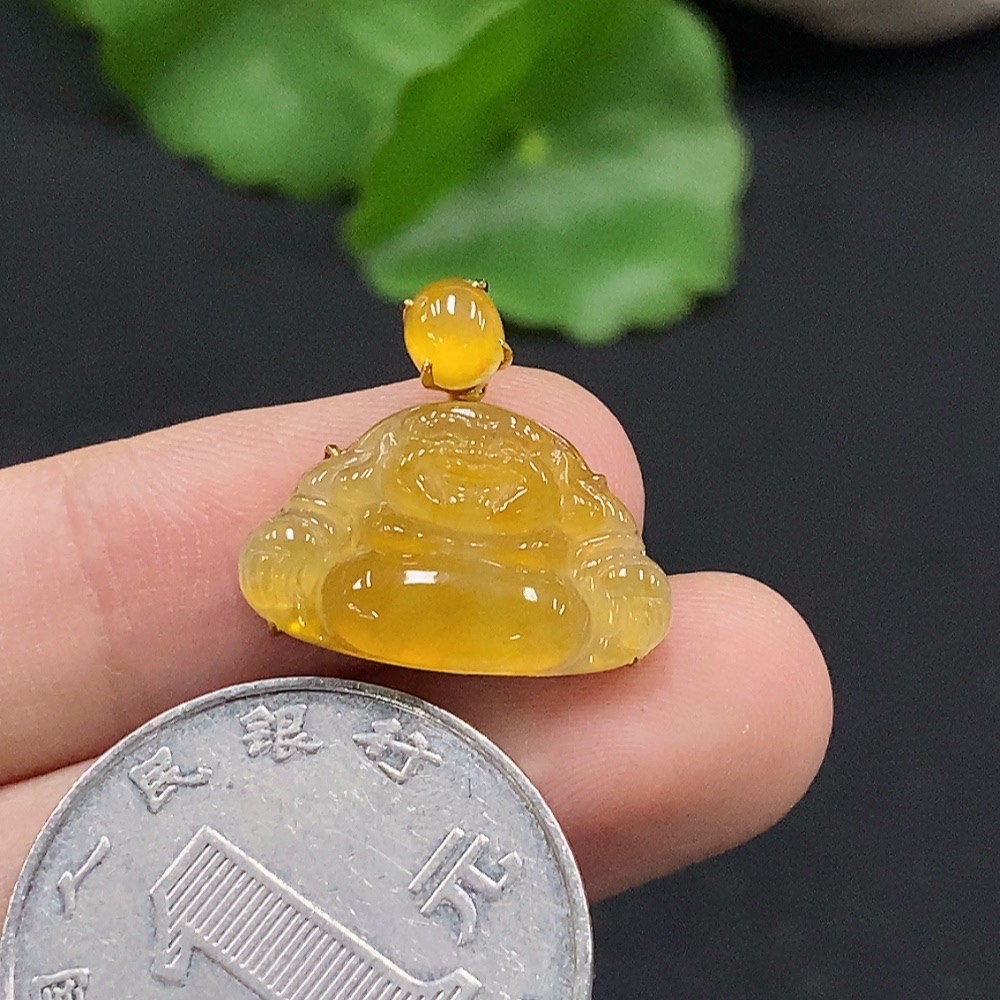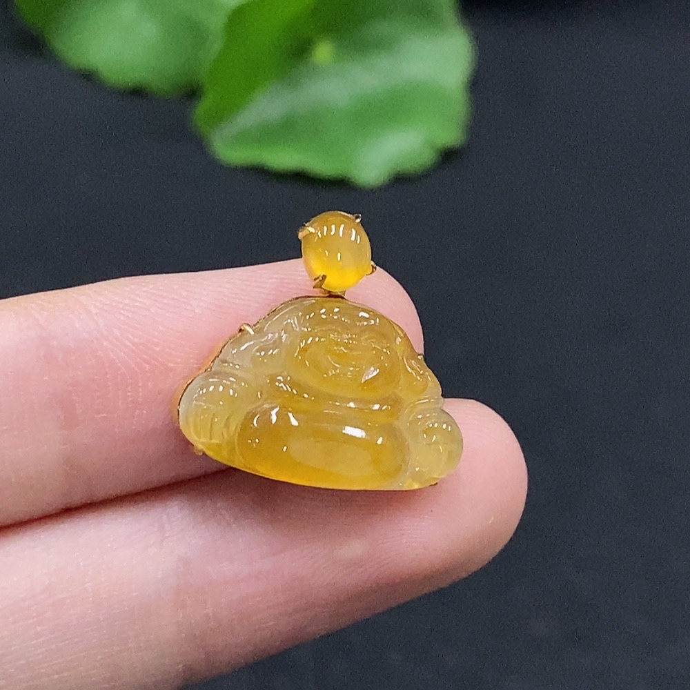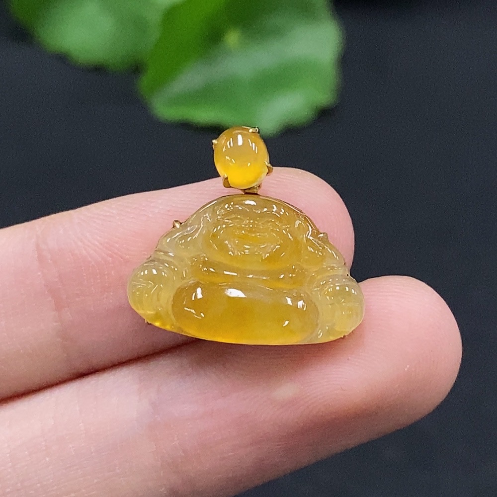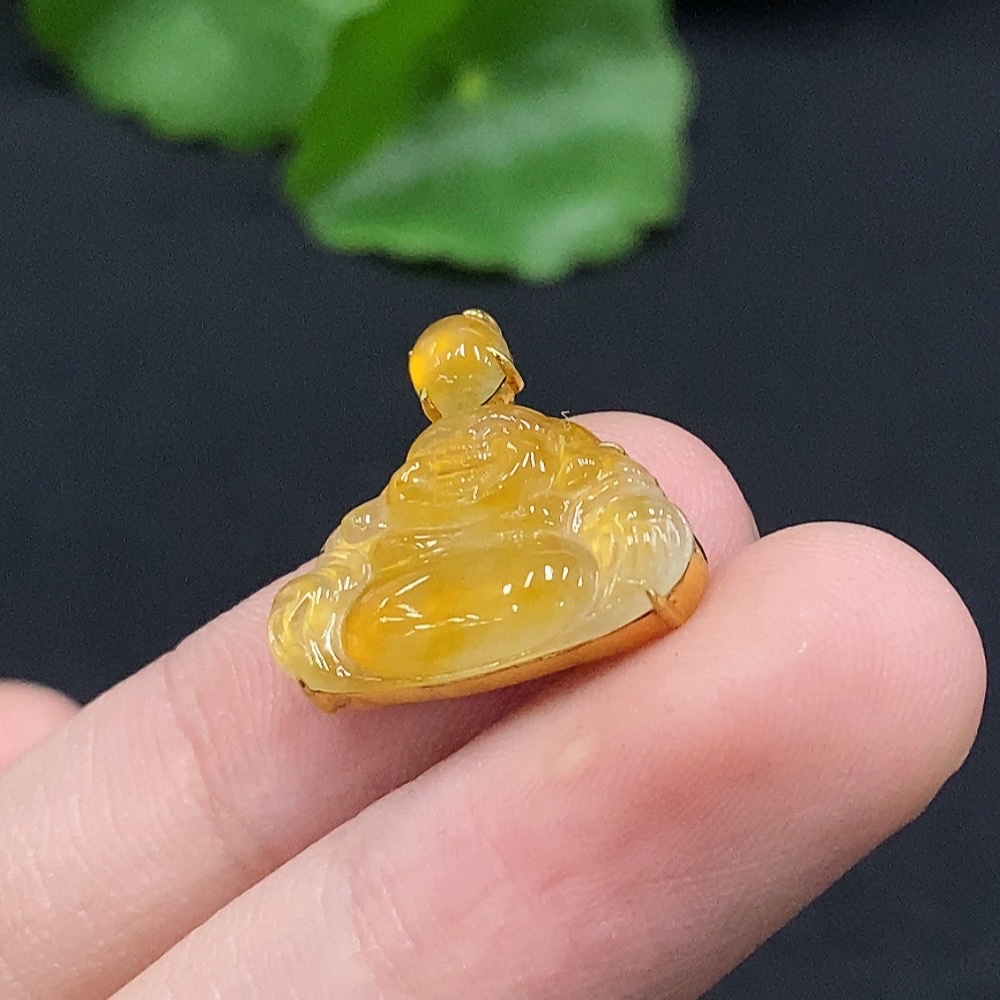 Jadeite Buddha Pendant with 18K Gold Mounting, Total Weight Approx. 1.85g, Color Origin Undetermined