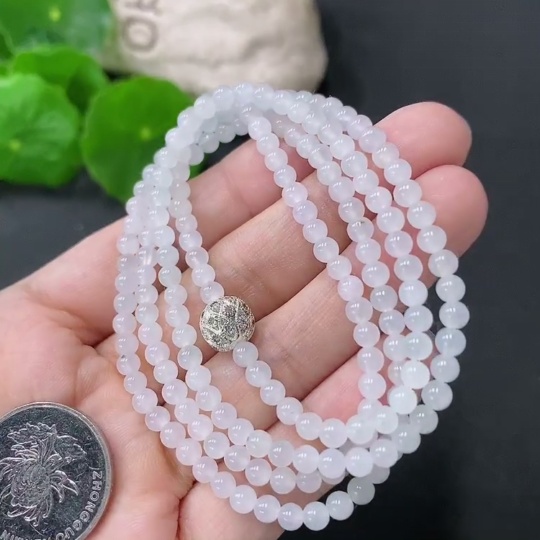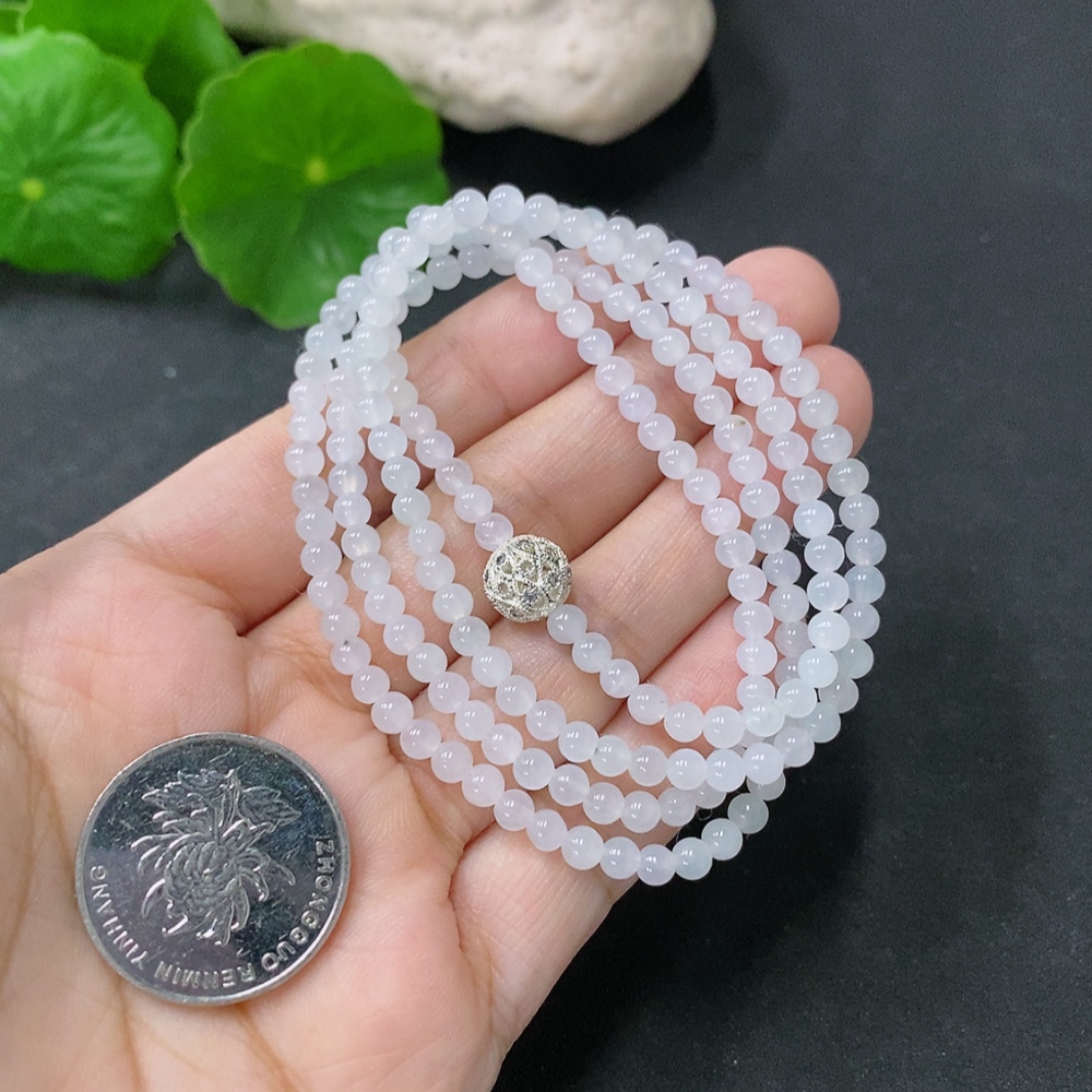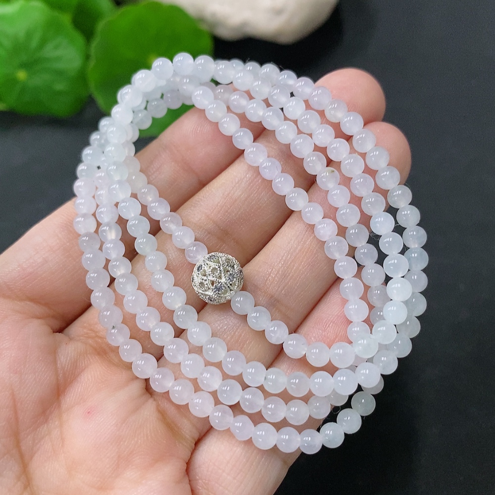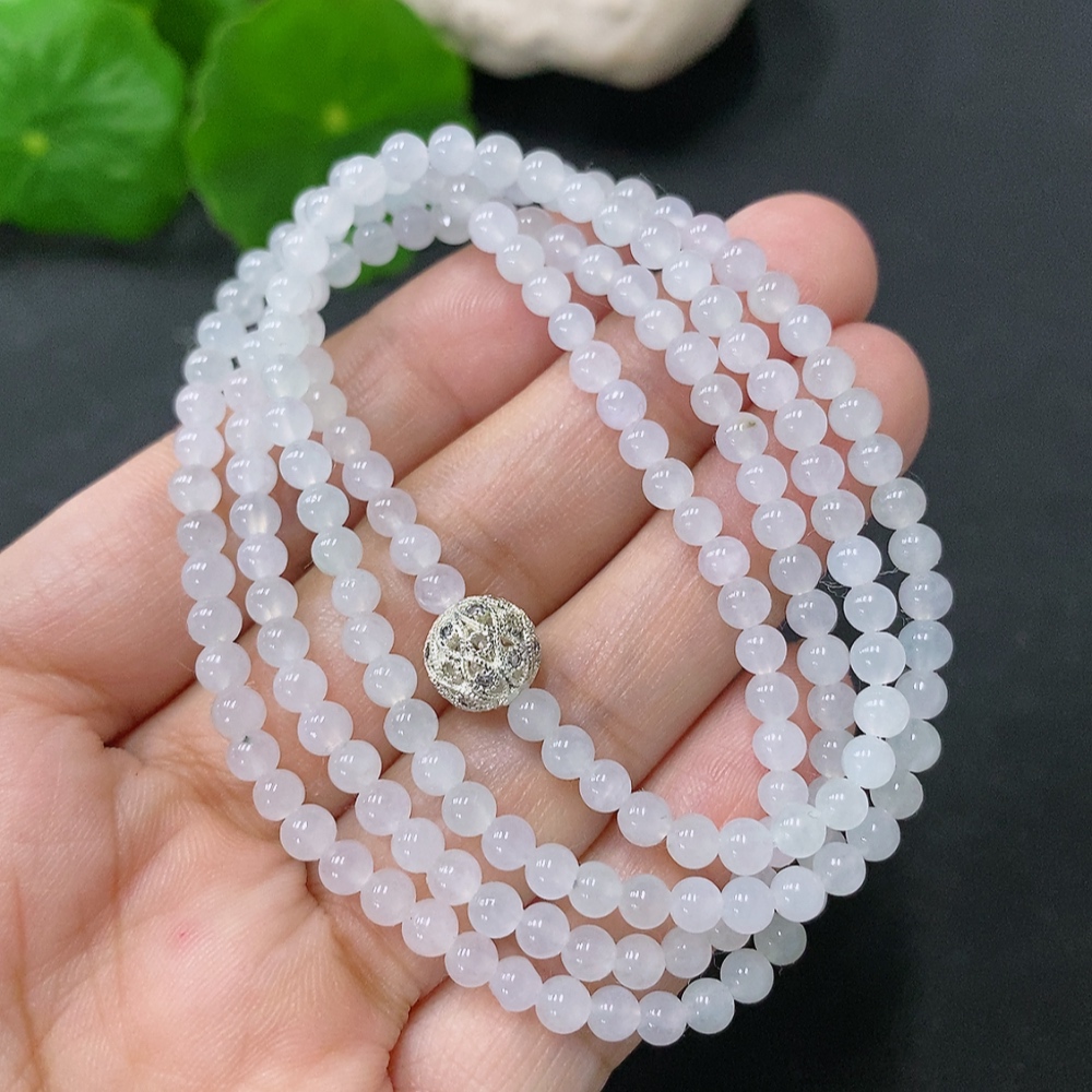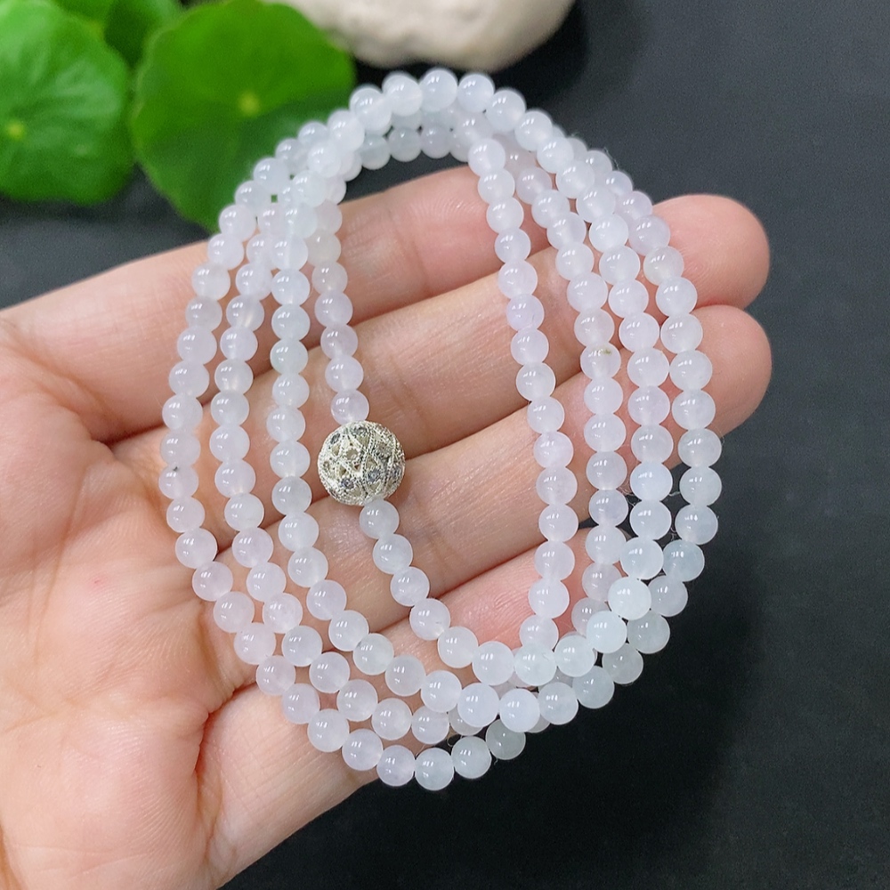 Jadeite Bead Necklace Approx. 3.8mm Non-Gold Total Weight Approx. 15.3g