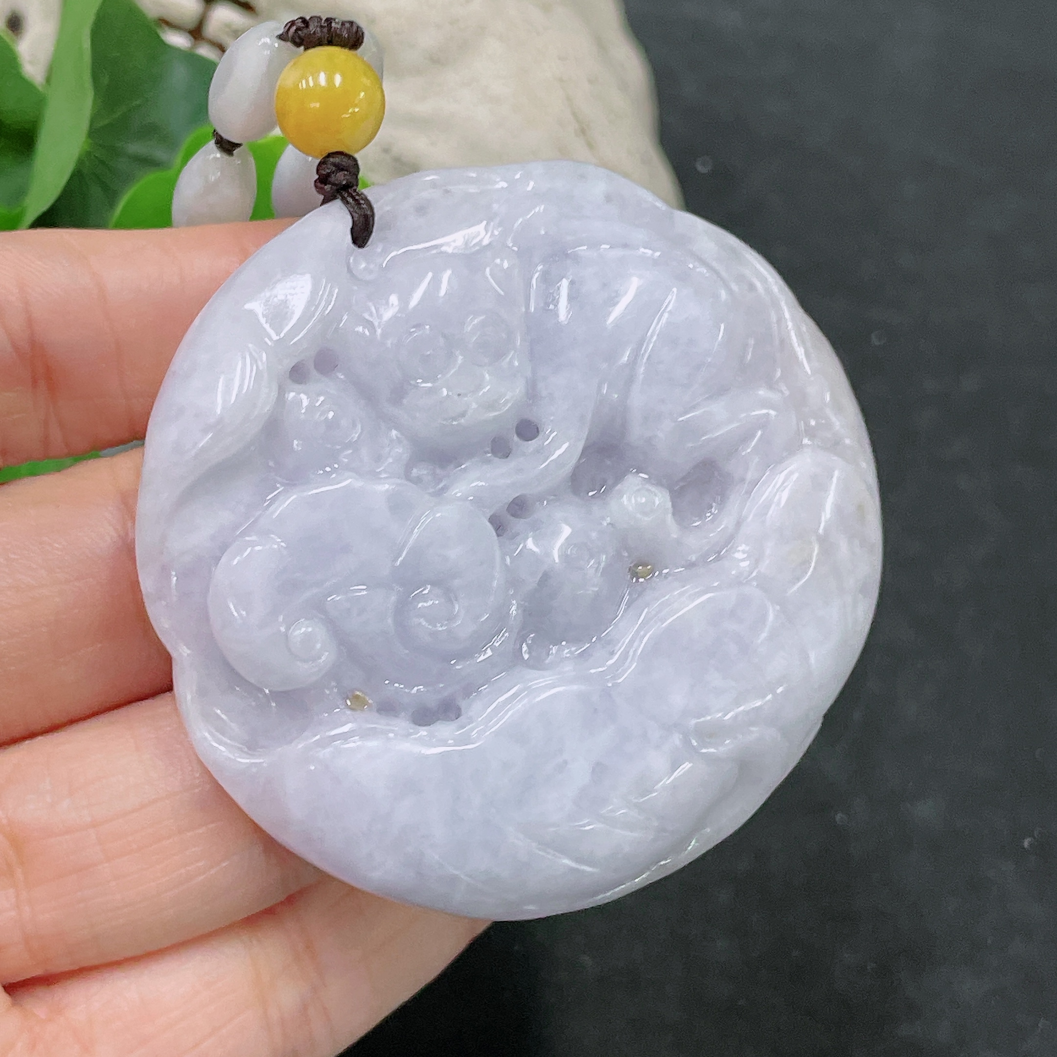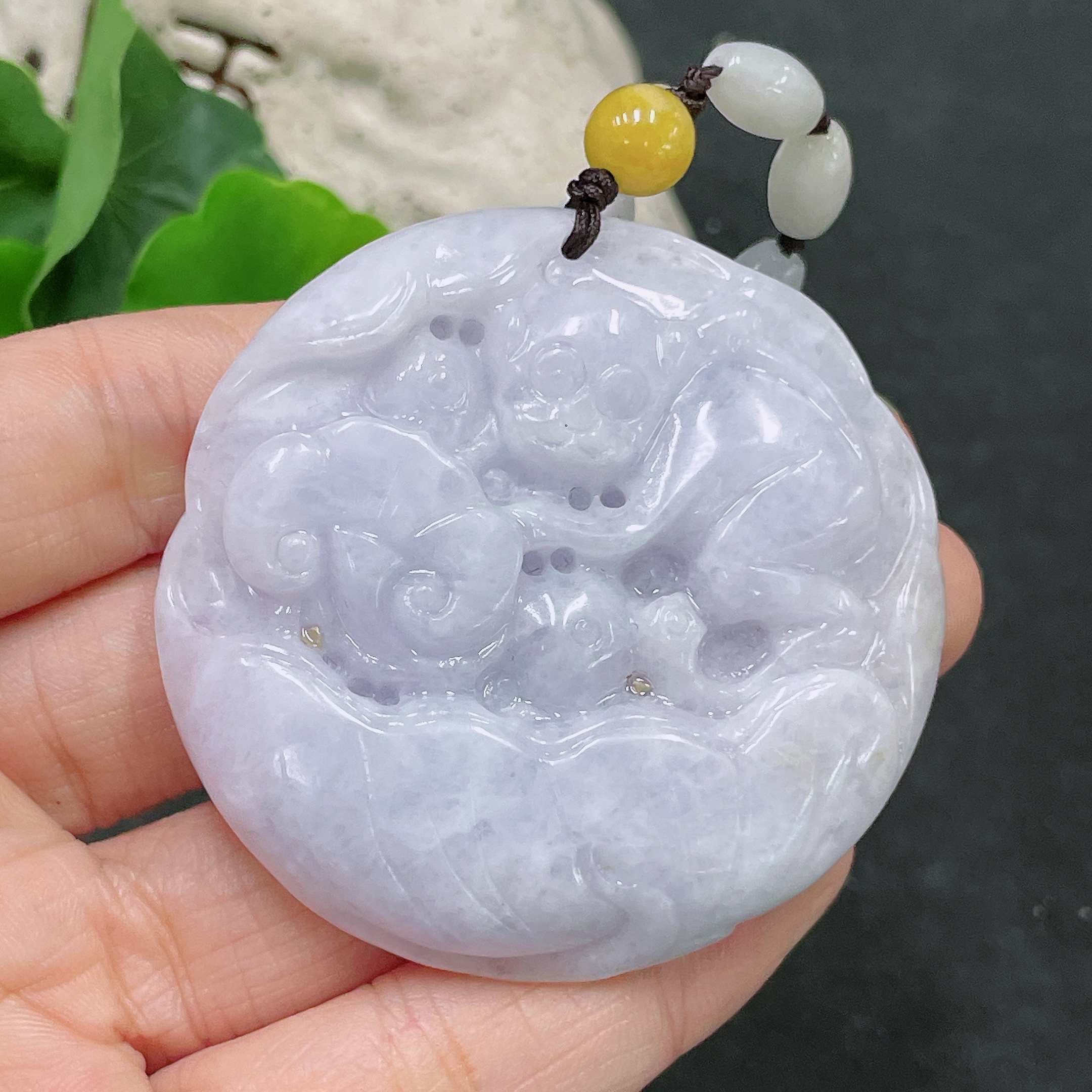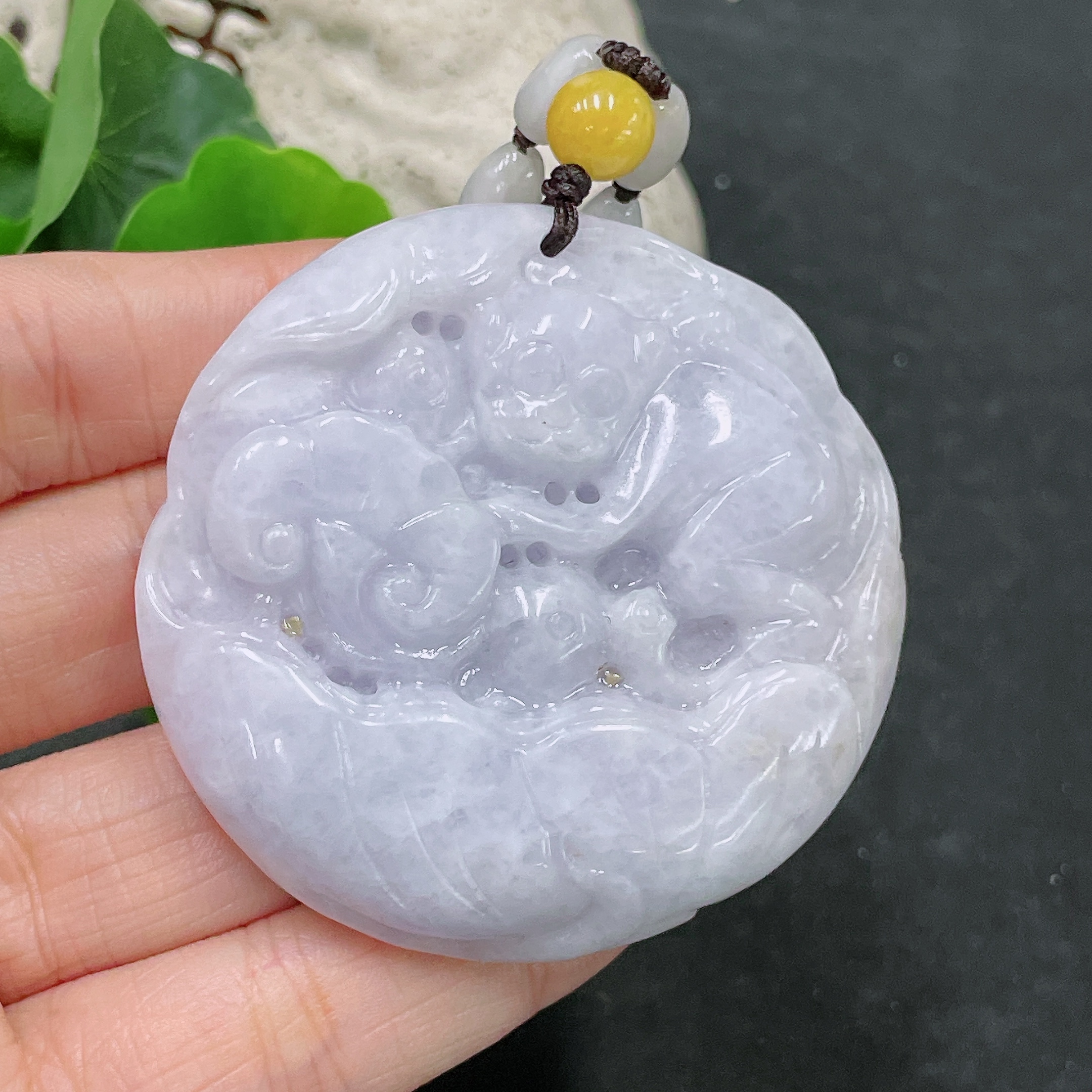 Trezaar - Jadeite Monkey Presenting Longevity Pendant