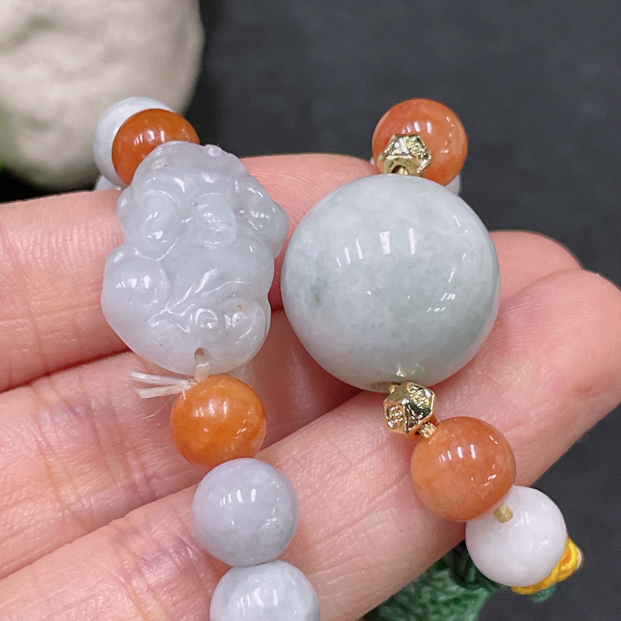 Jadeite Bracelet + Rope, Sell as a Lot, Beads Non-Grade A