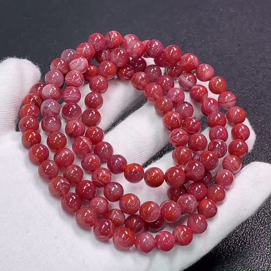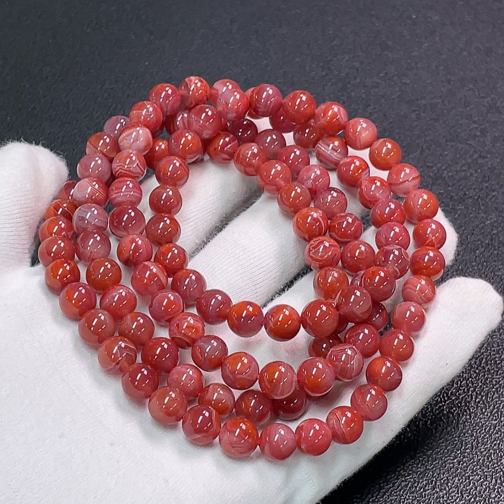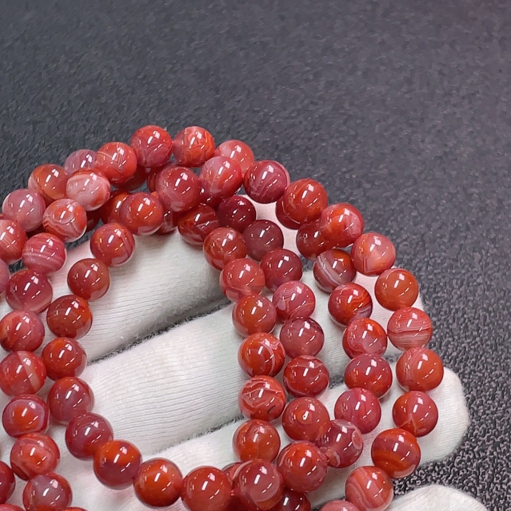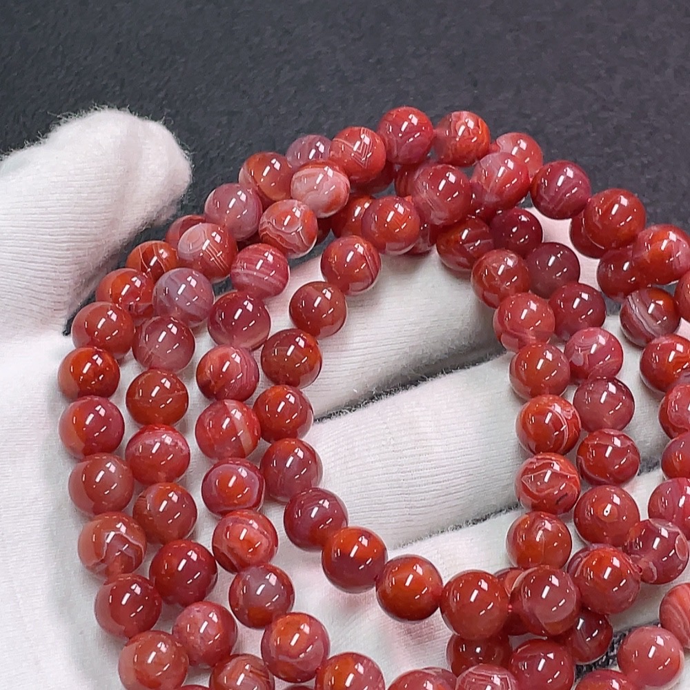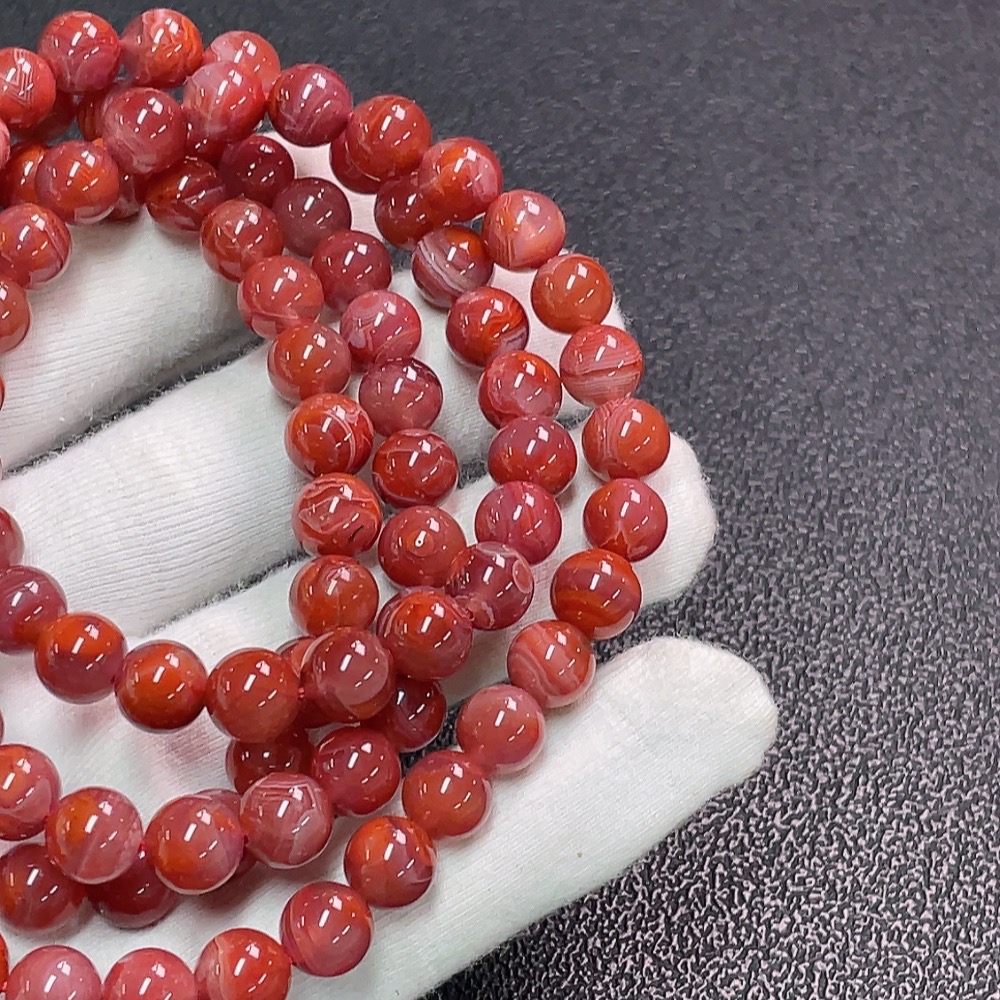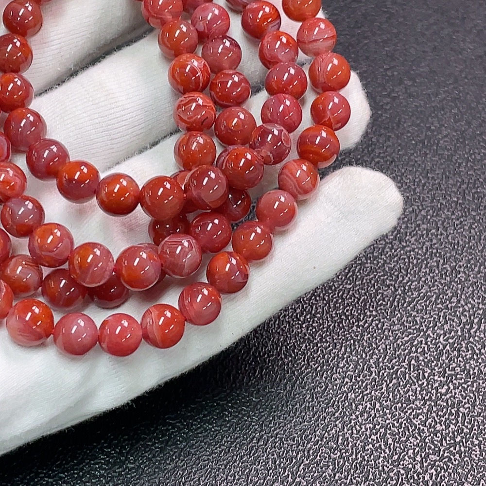South Red Agate Bead Strand with Visible Organic Matter, Total Weight Approx. 81.83g, Size About 7.7mm