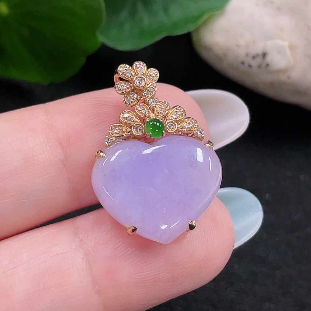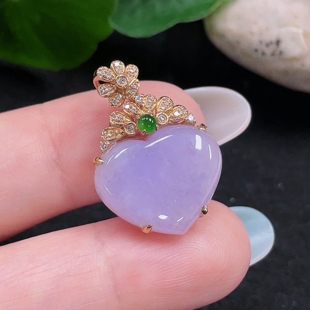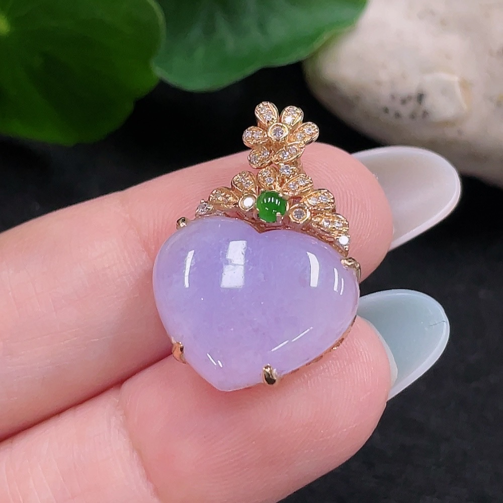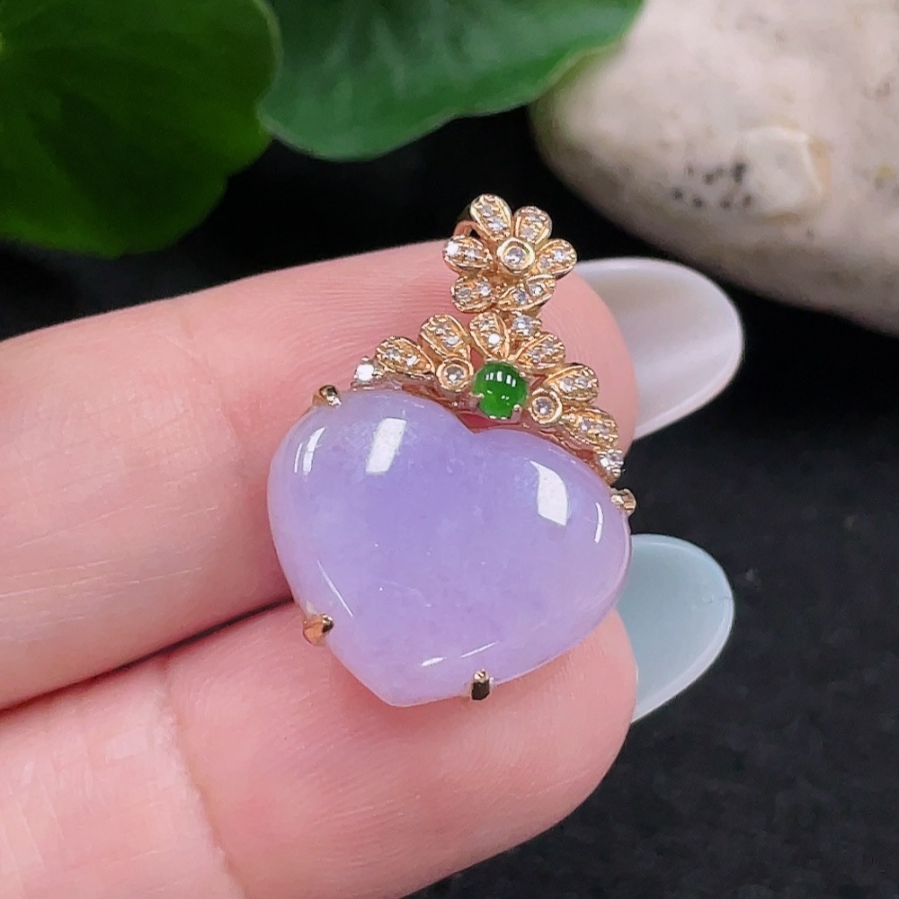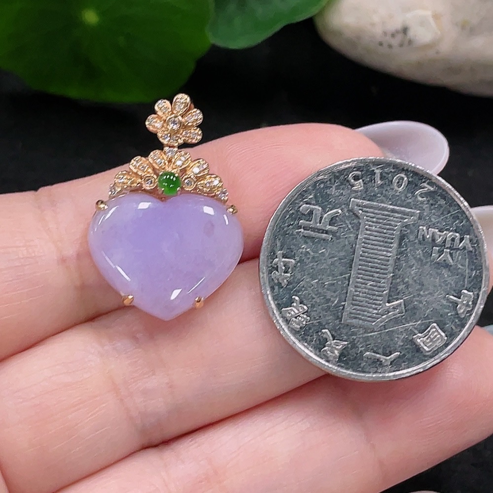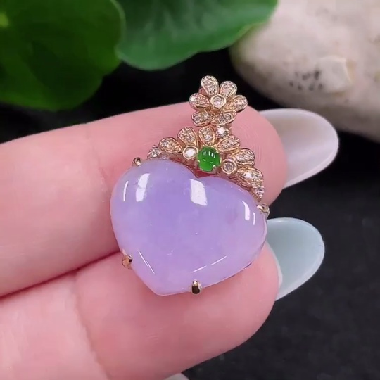 Jadeite inlaid pendant 18K gold total weight 3g (with diamond inlays)