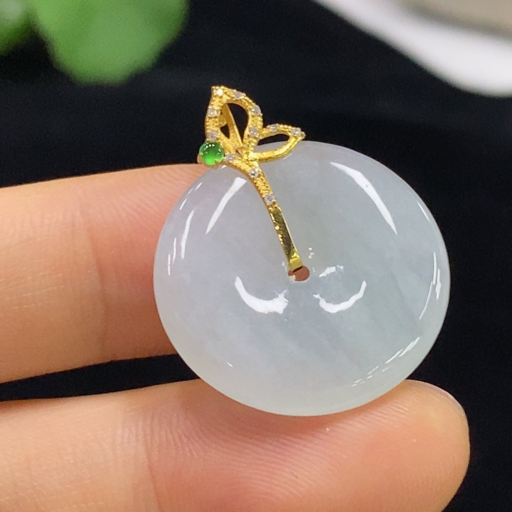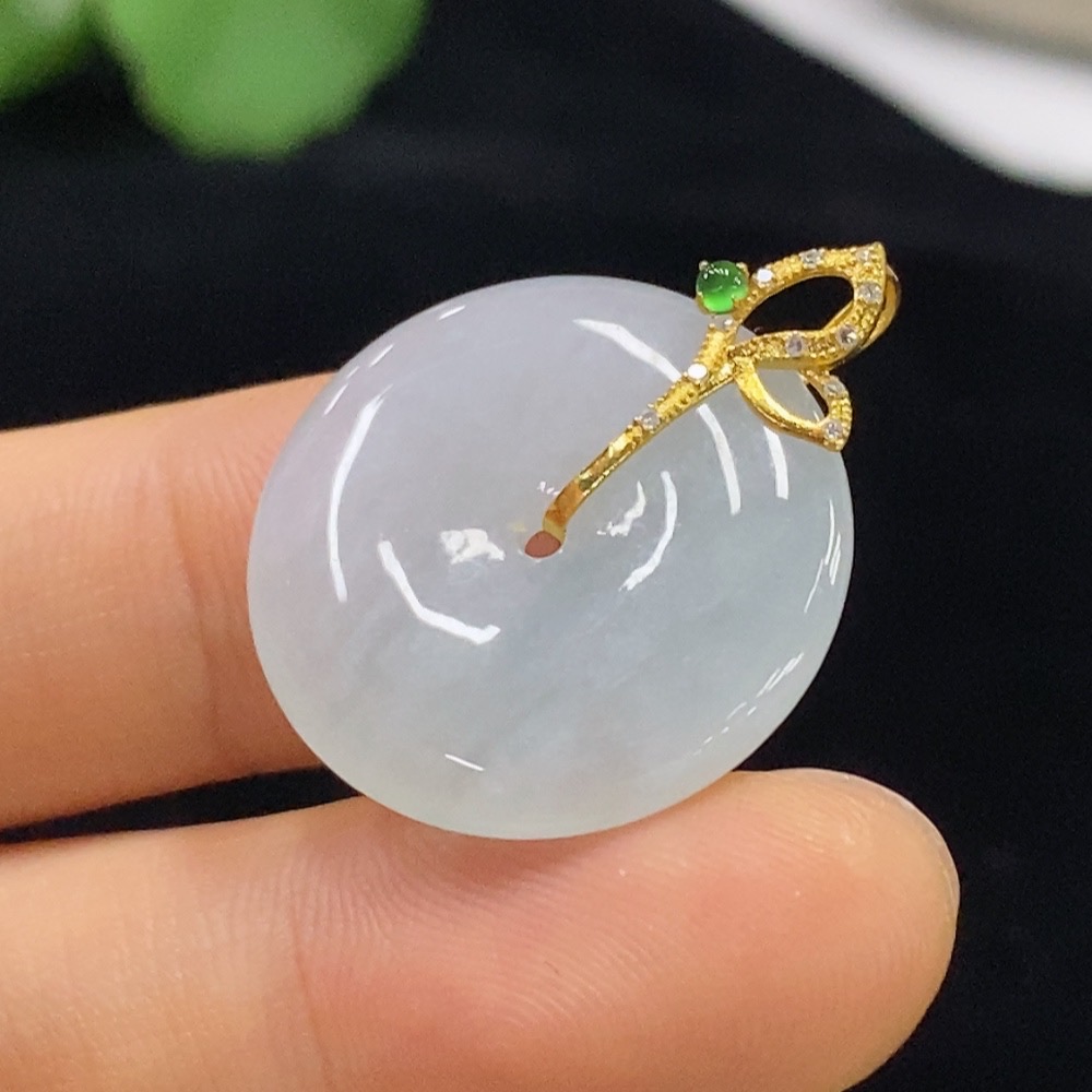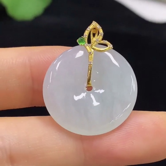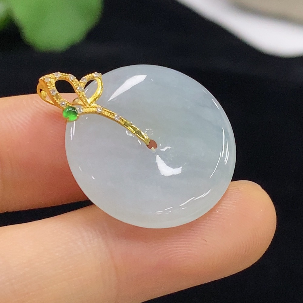 Jadeite Safety Buckle Pendant with 18k Gold, Total Weight Approximately 4.68g