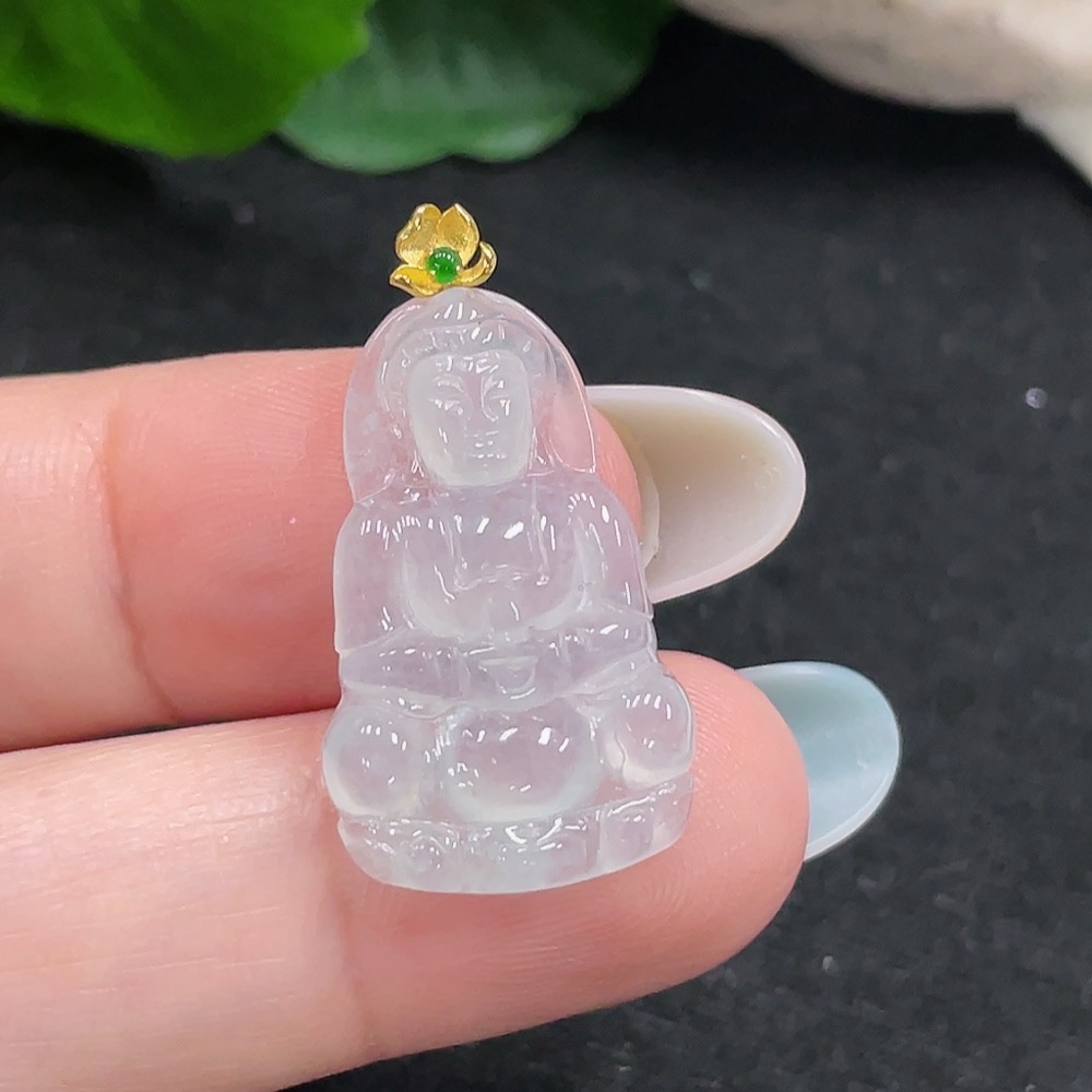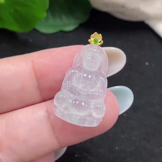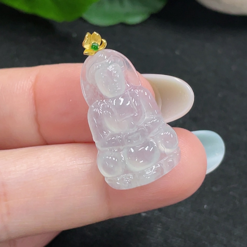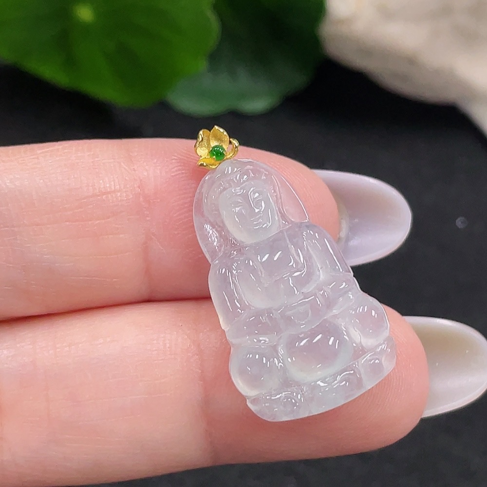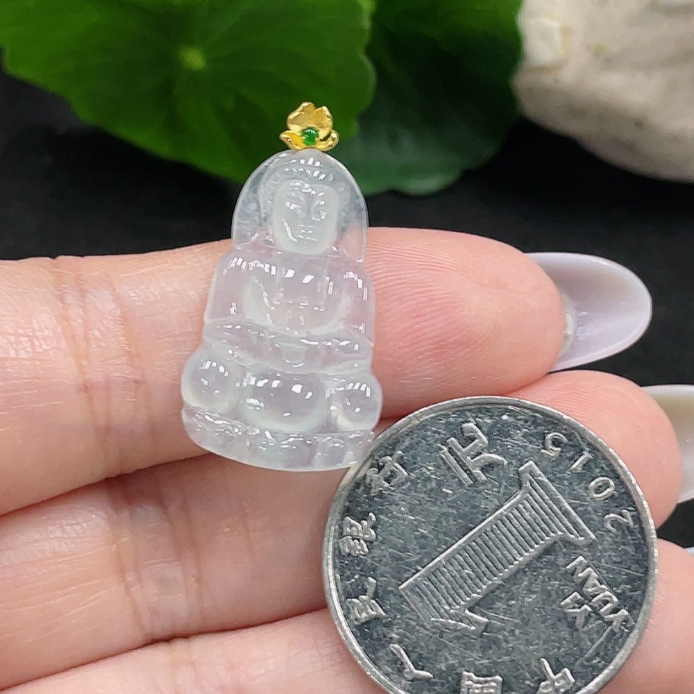 Jadeite Guanyin Pendant 18K Gold Total Weight Approx. 2.2g