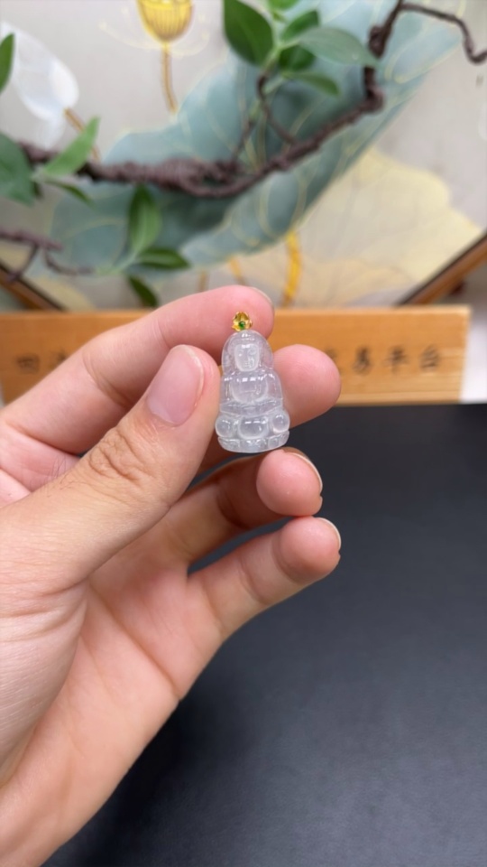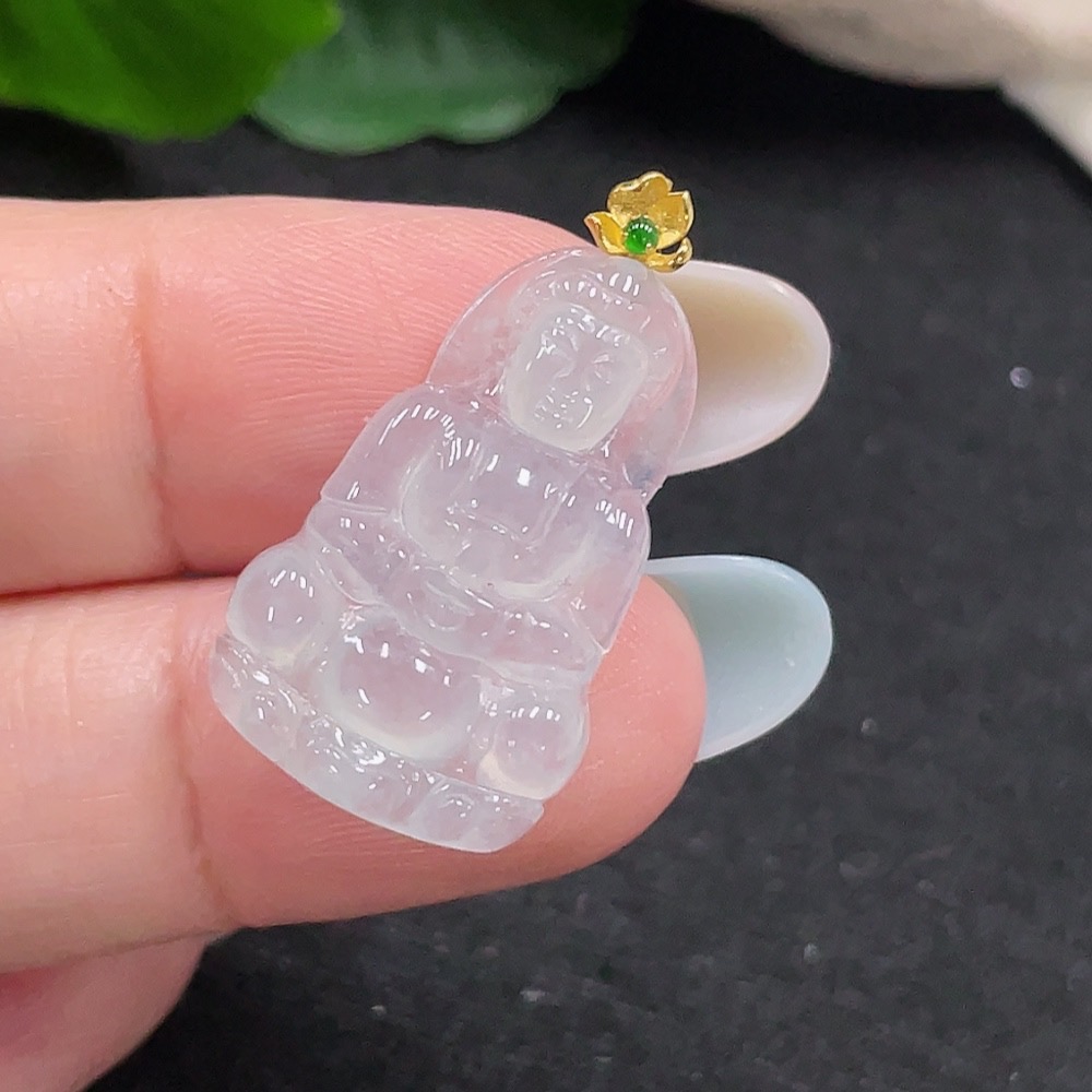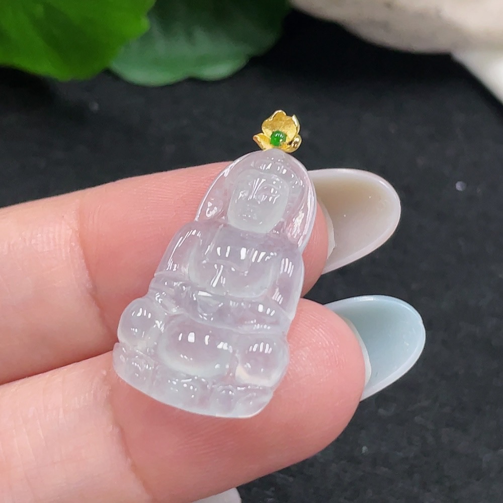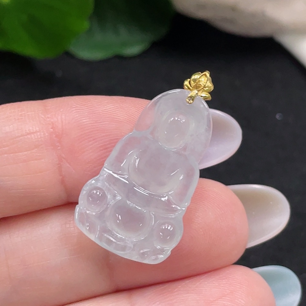 Jadeite Guanyin Pendant 18K Gold Total Weight Approx. 2.2g