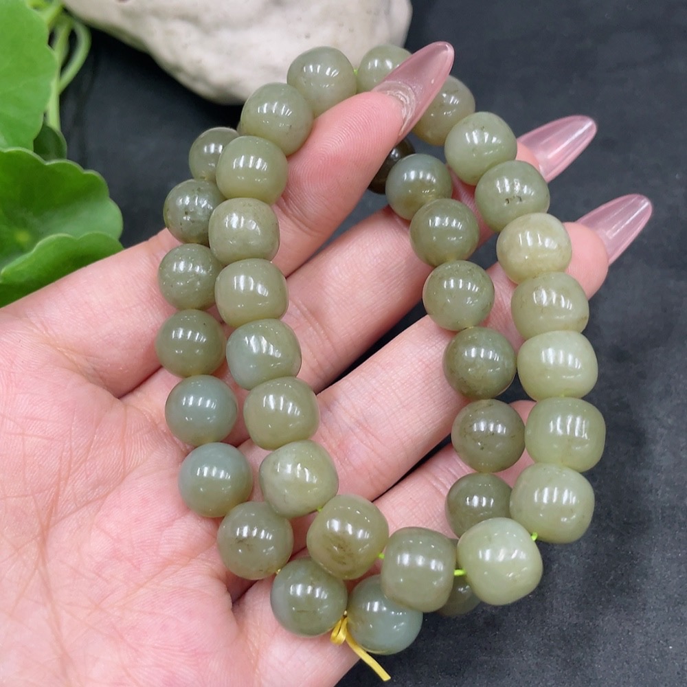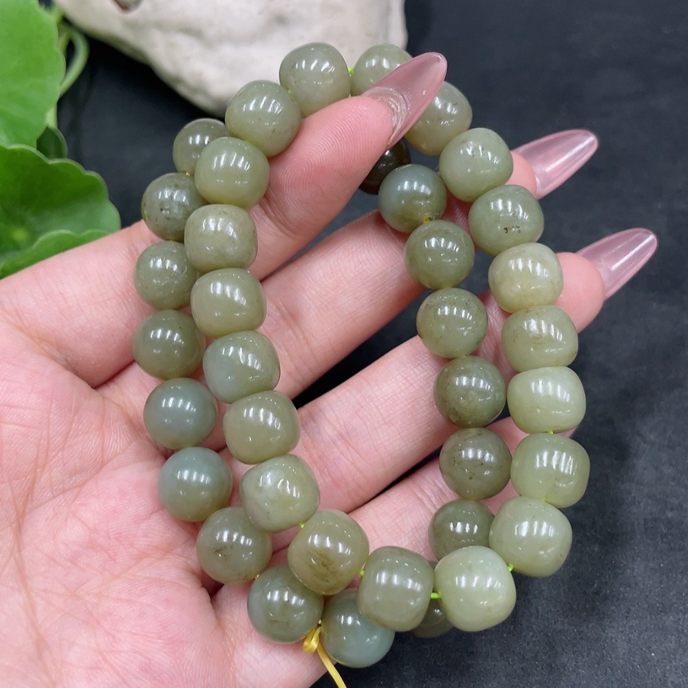 Hetian Jade Bracelet, Maximum Bead Size Approx. 10mm, Total Weight Approx. 63.7g