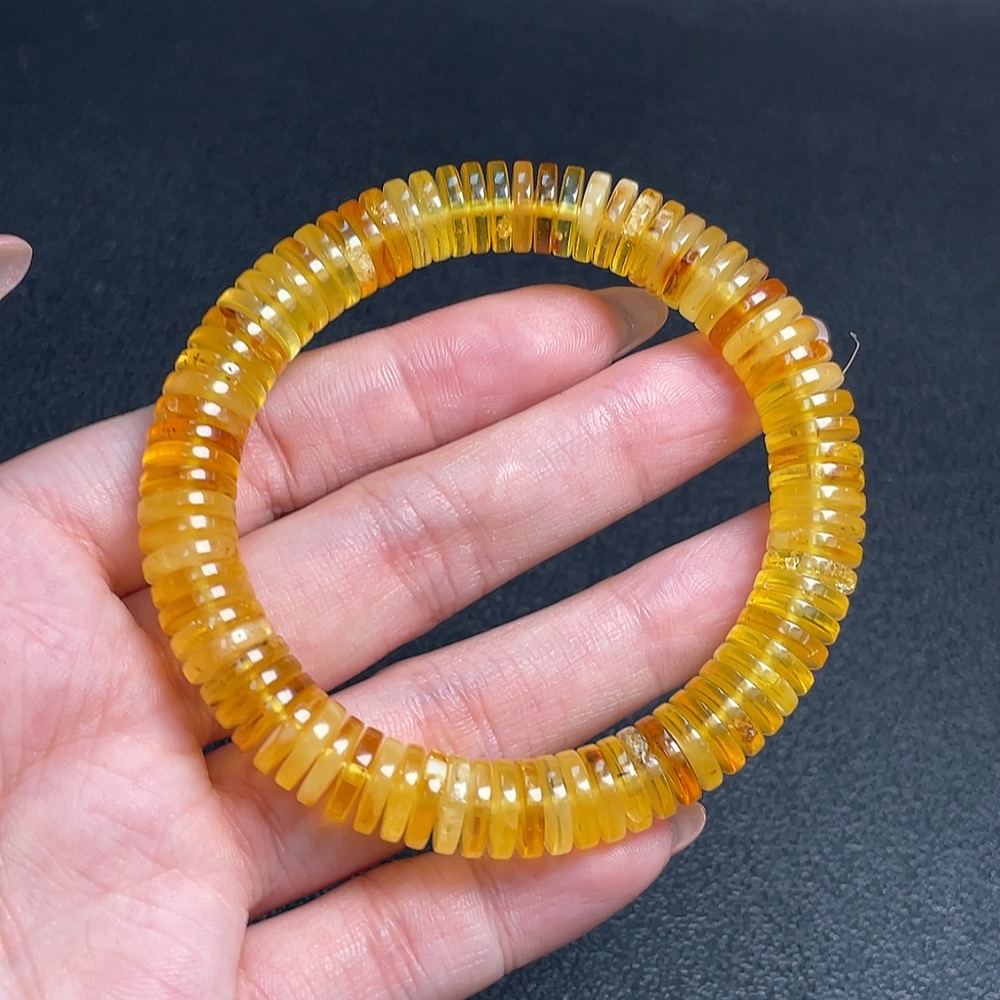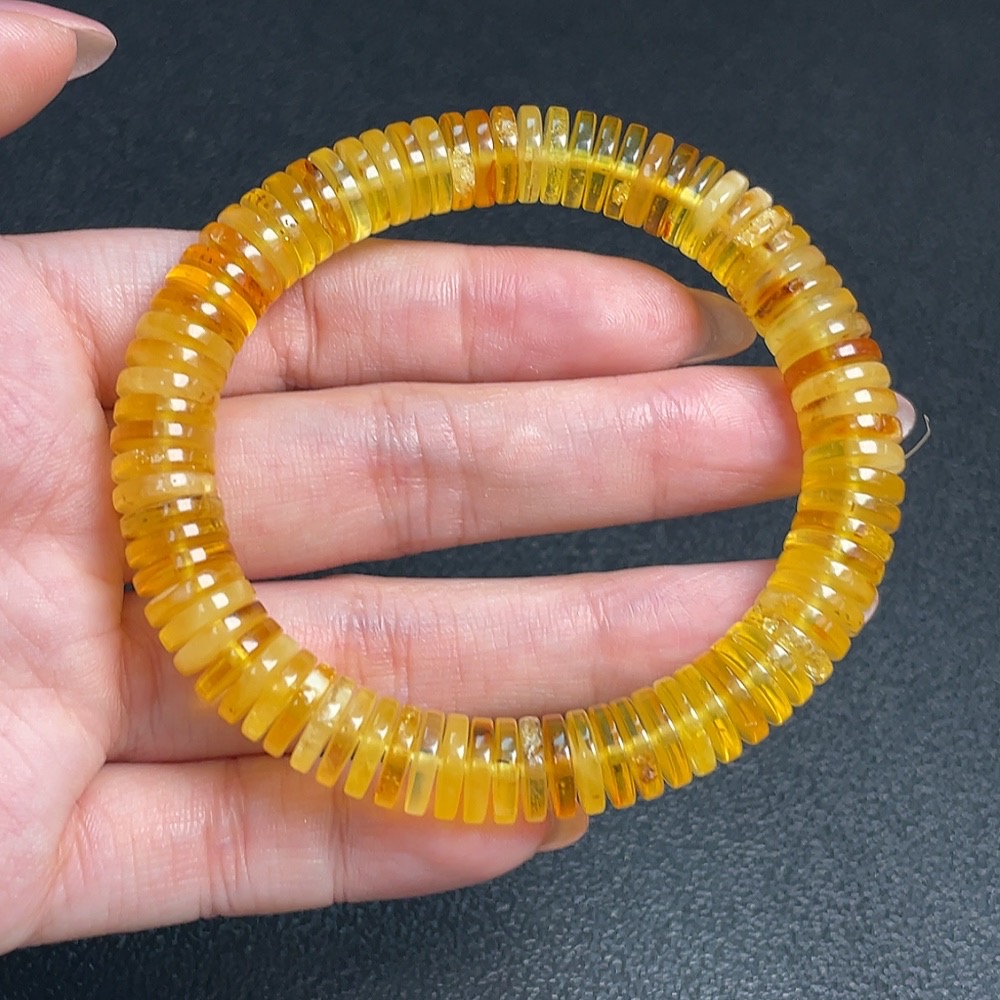Amber Beeswax Bracelet, Total Weight Approx. 13.15g, Size About 9.4mm