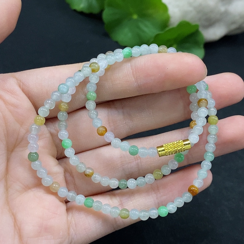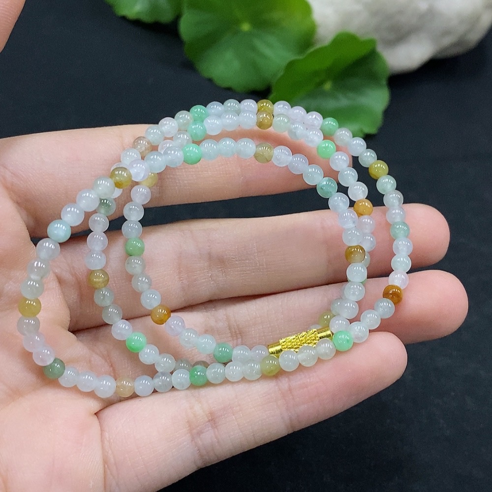 Jadeite Bead Necklace Approx. 3.6mm Total Weight Approx. 11.3g Non-Gold Setting Color Origin Undetermined