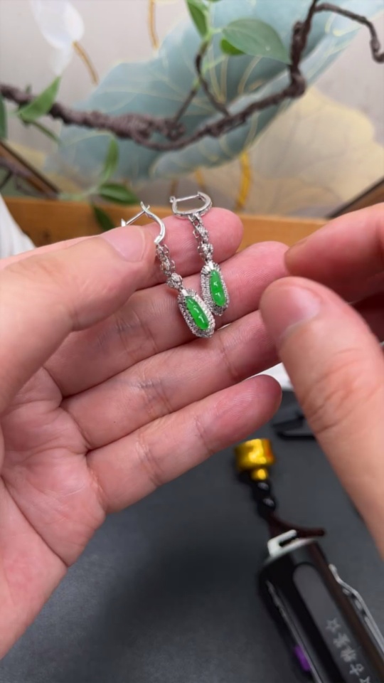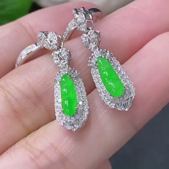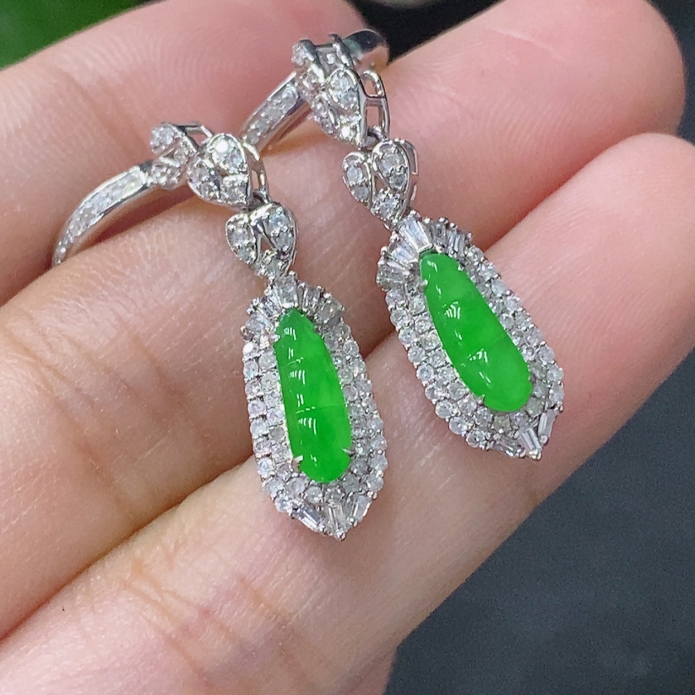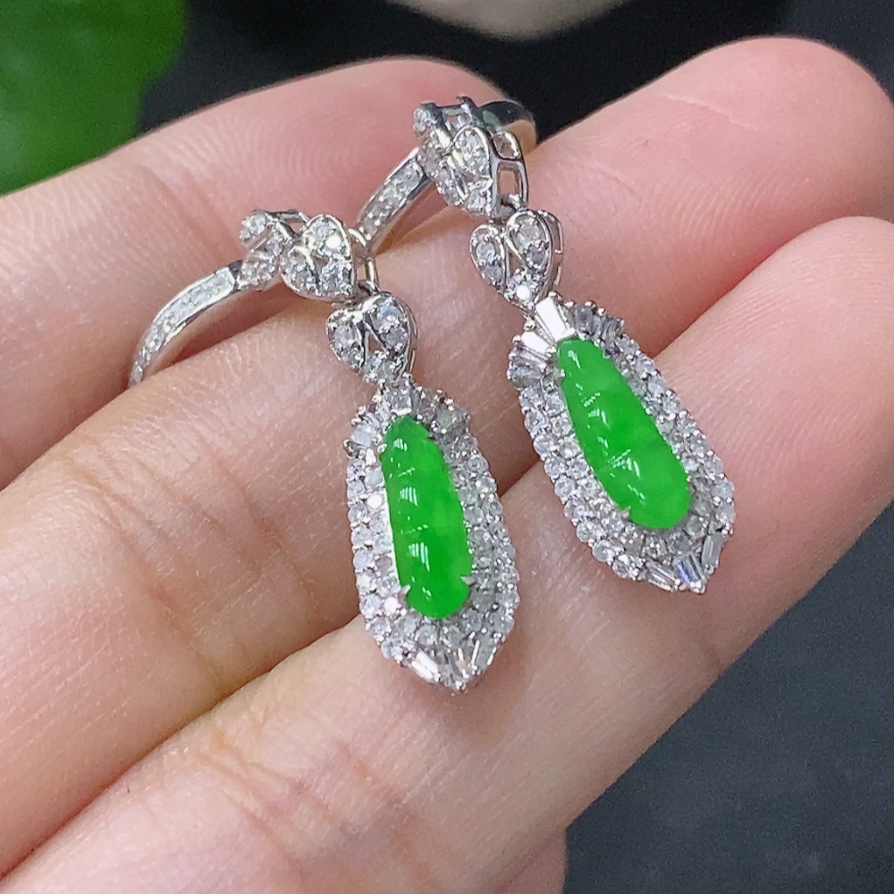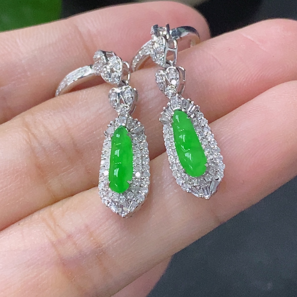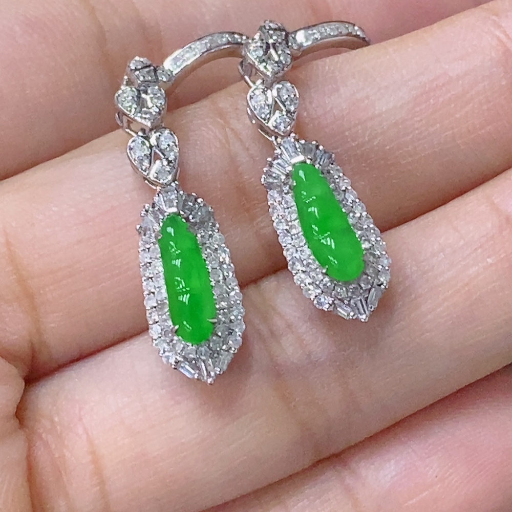 Jadeite and Diamond Earrings in 18K Gold, Total Weight Approx. 4.97g
