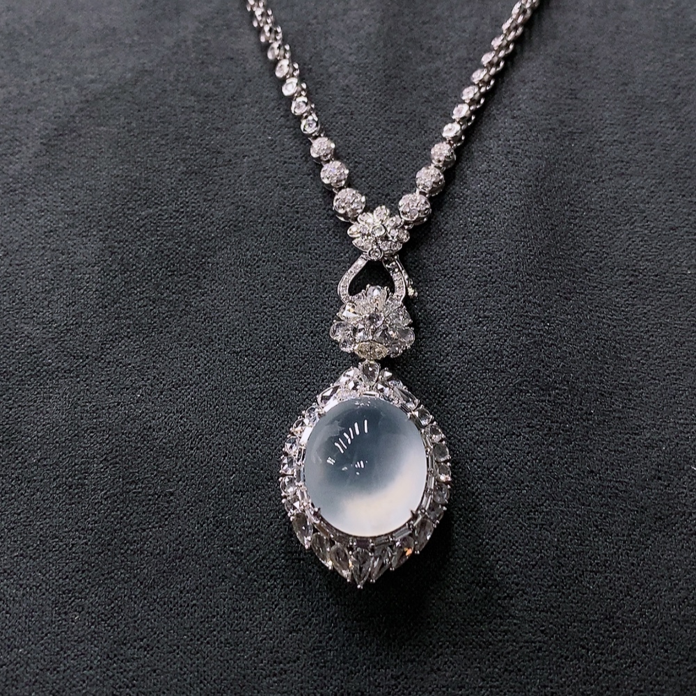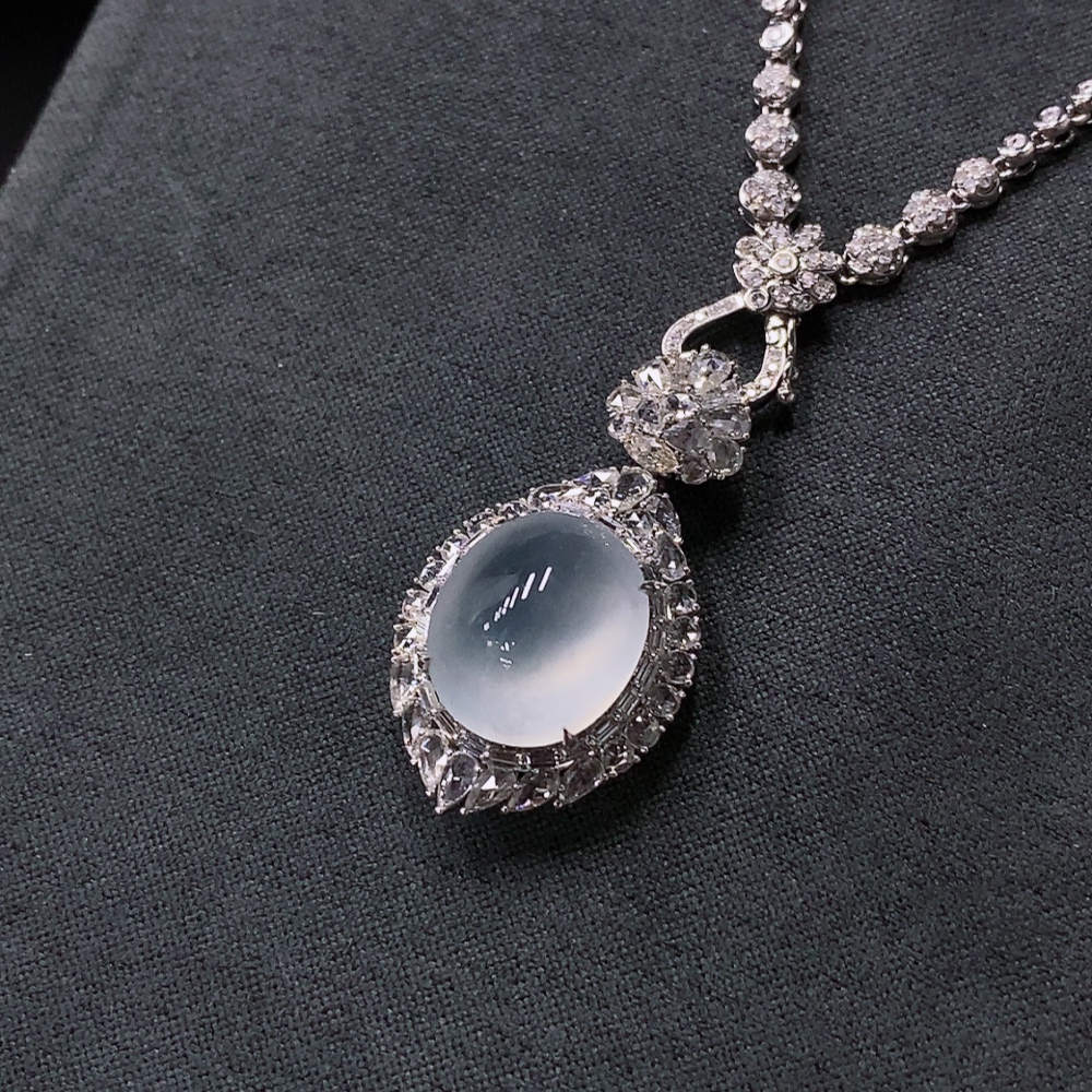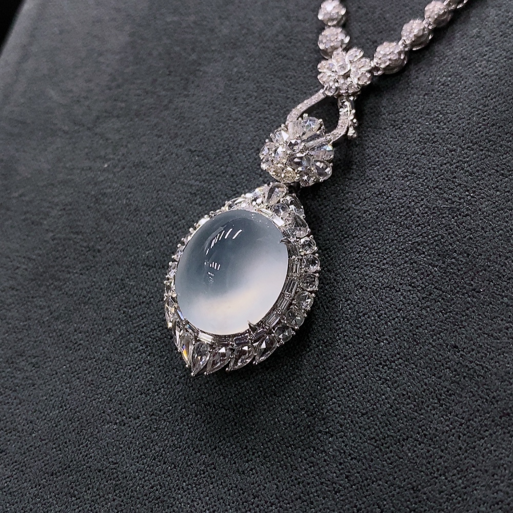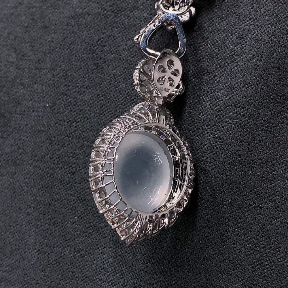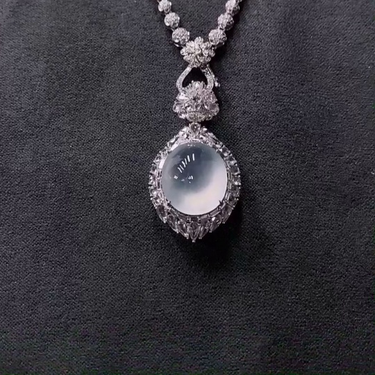 Jadeite Bezel-set Cabochon Pendant in 18k with Diamond Accents Total Item Weight Approximately 15.48g Including Chain