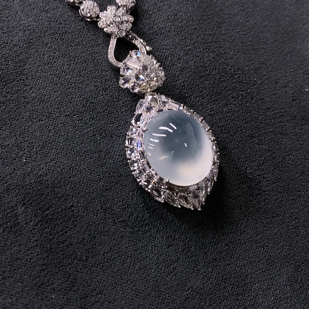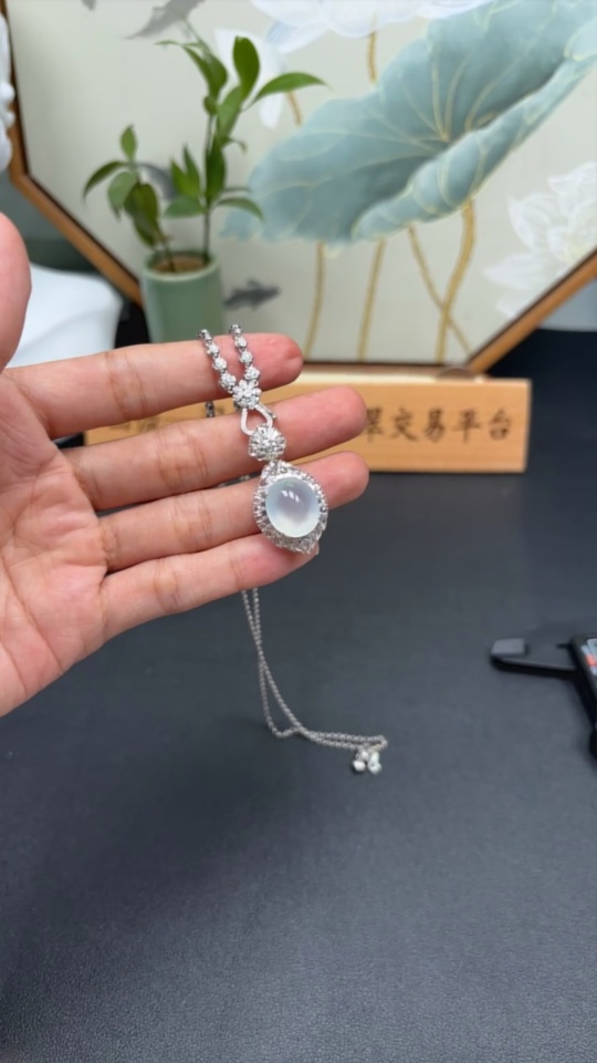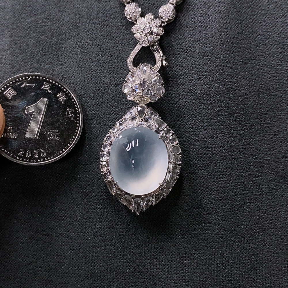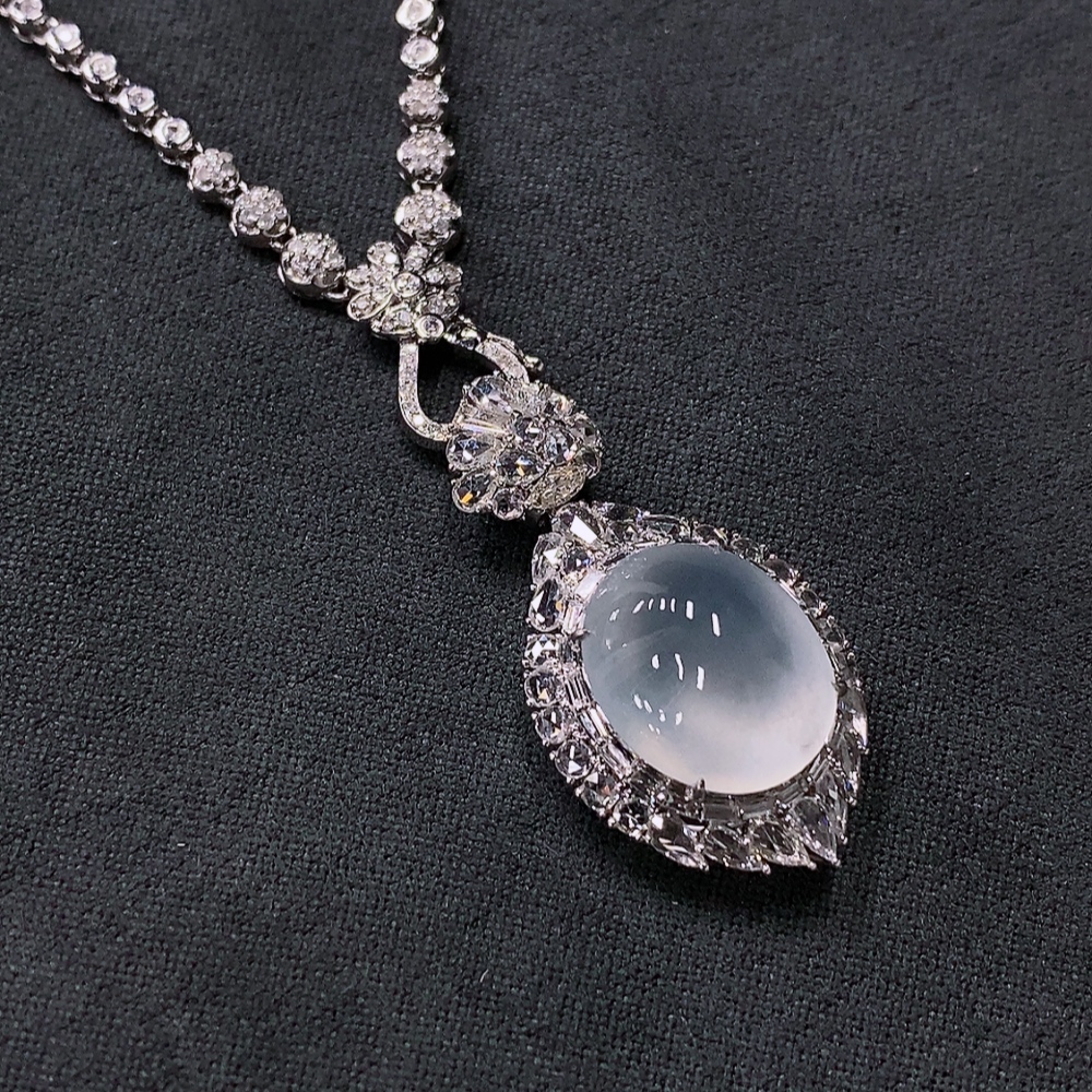 Jadeite Bezel-set Cabochon Pendant in 18k with Diamond Accents Total Item Weight Approximately 15.48g Including Chain