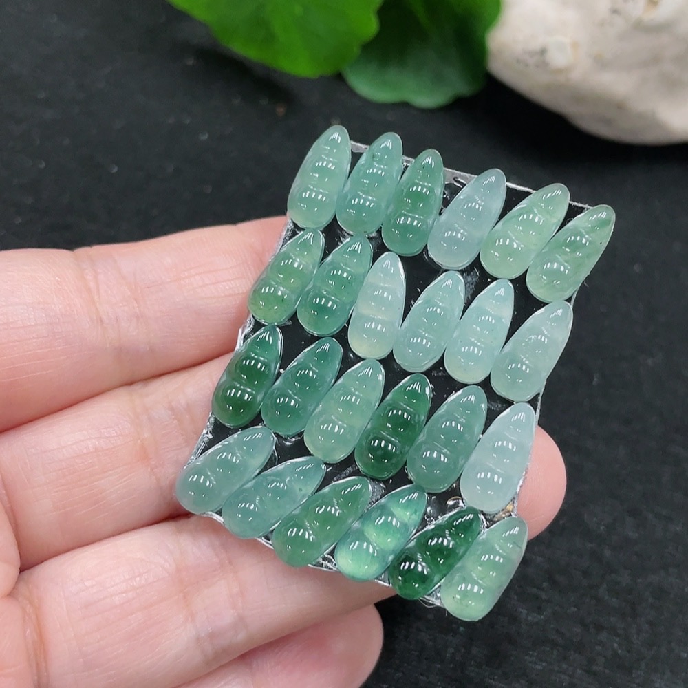 Jadeite Auspicious Bean Inlay Sell as a Lot