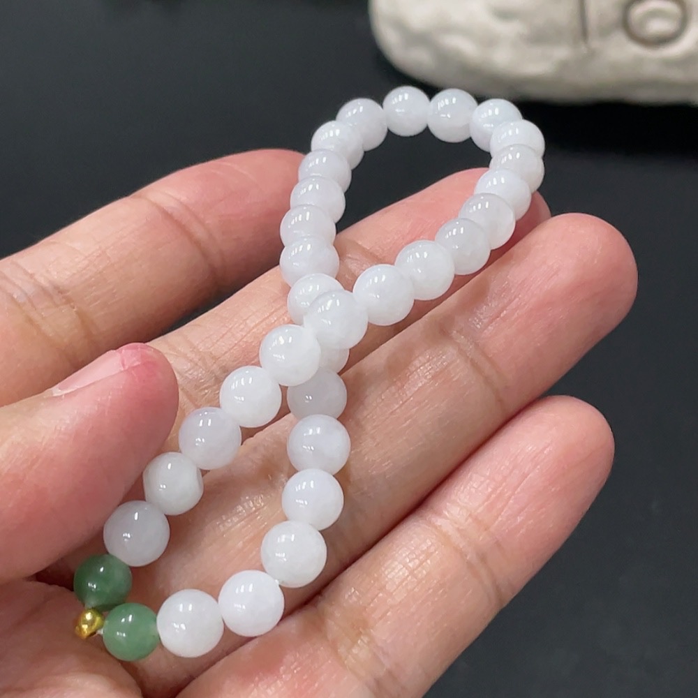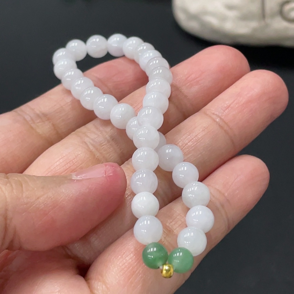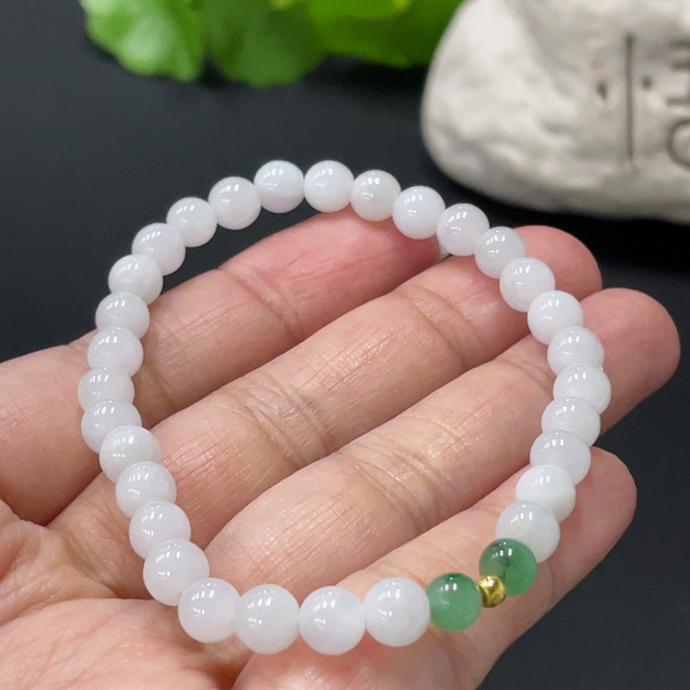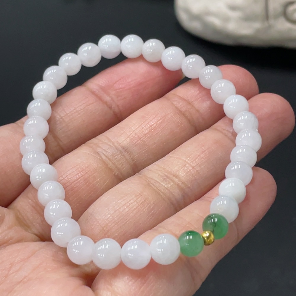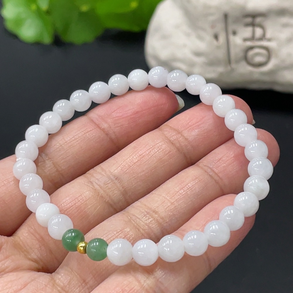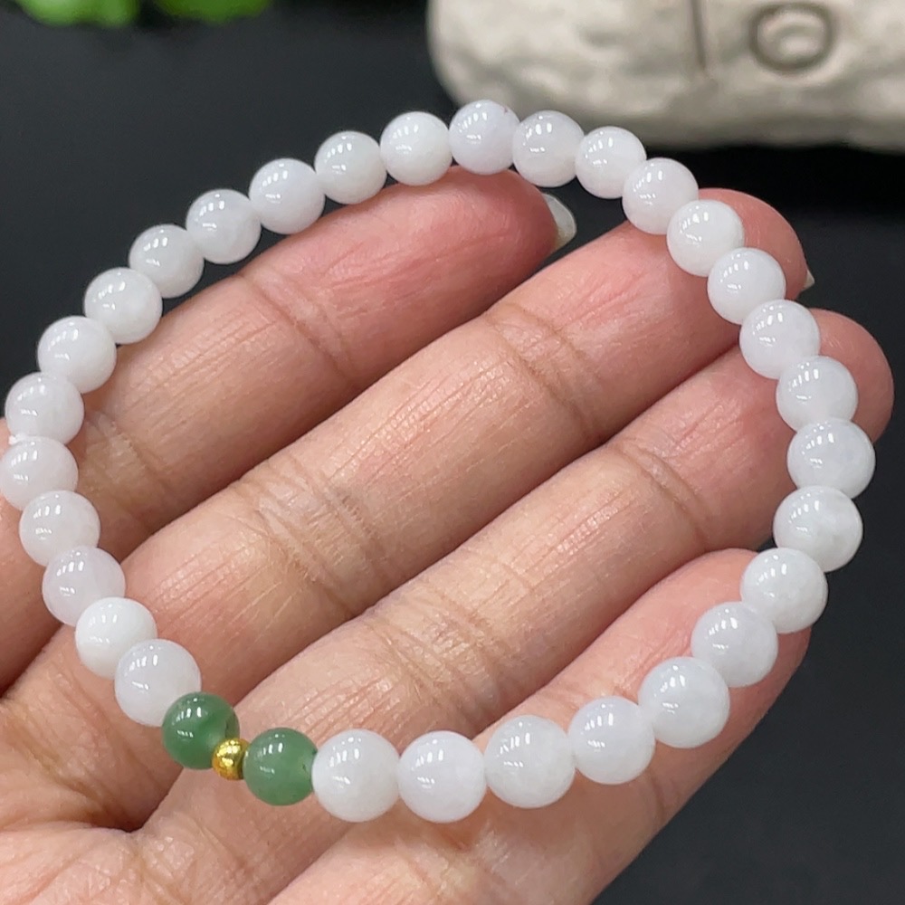 Jadeite Bracelet Approx. 6mm Beads Total Weight 10.7g 99% Gold Accent Beads Non-Grade A
