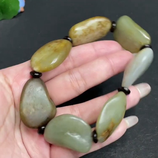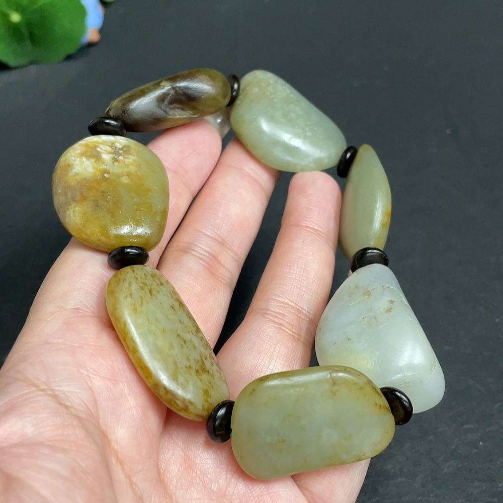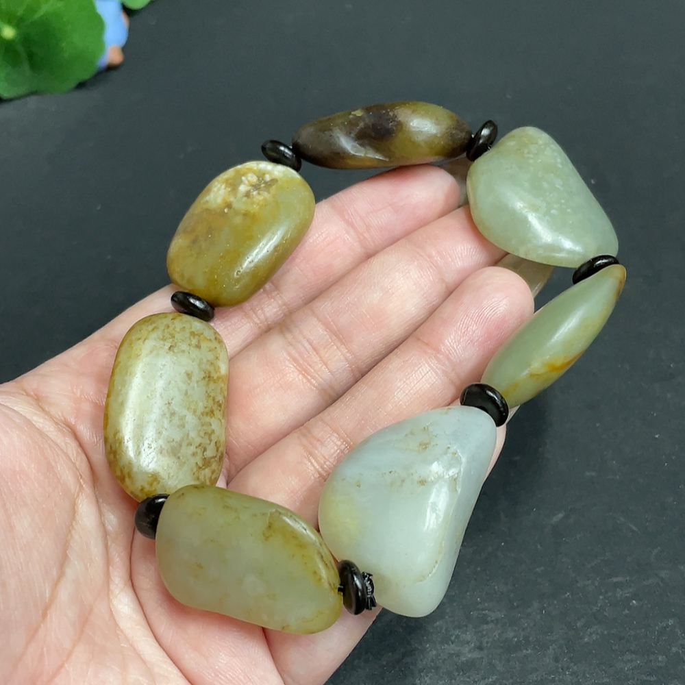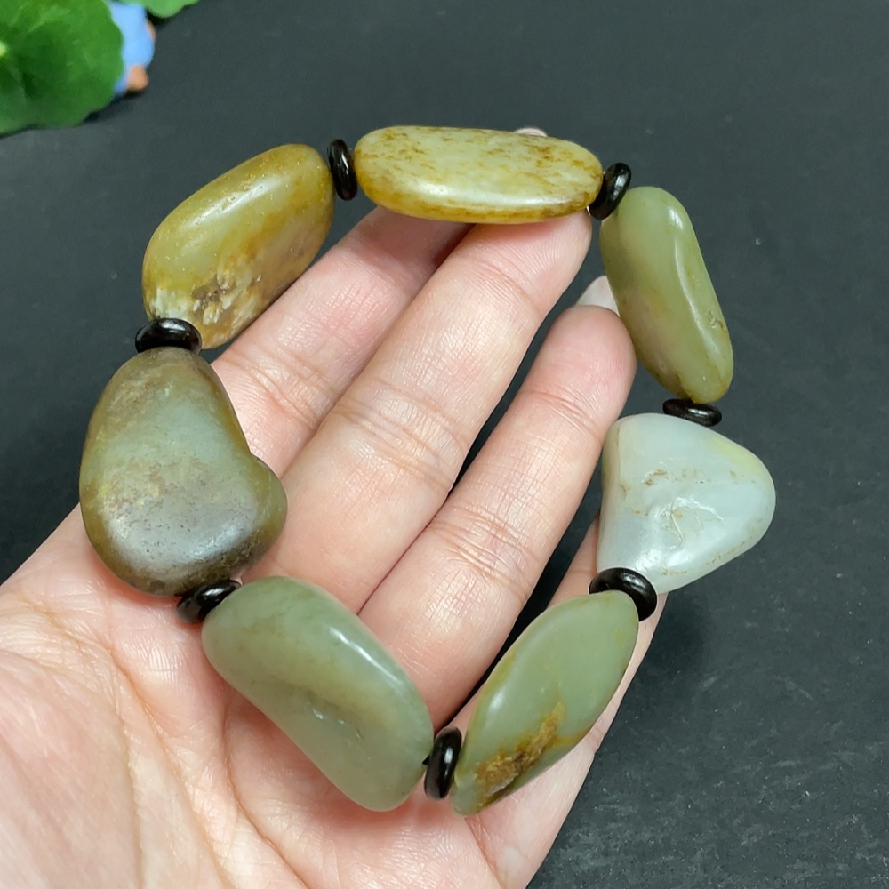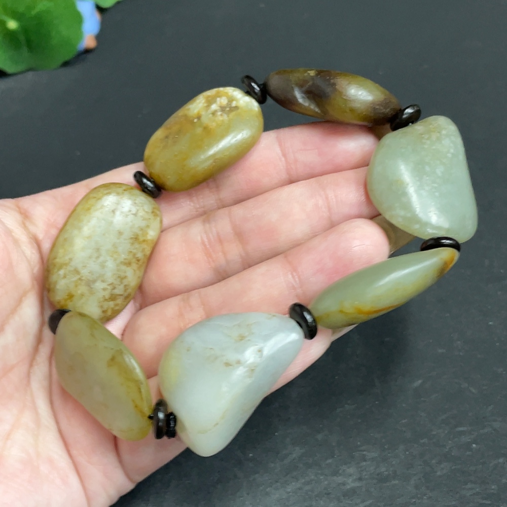 Hetian Jade Bracelet with Other Mineral Components, Undetermined Skin Color Origin, Total Weight Approximately 88.7g