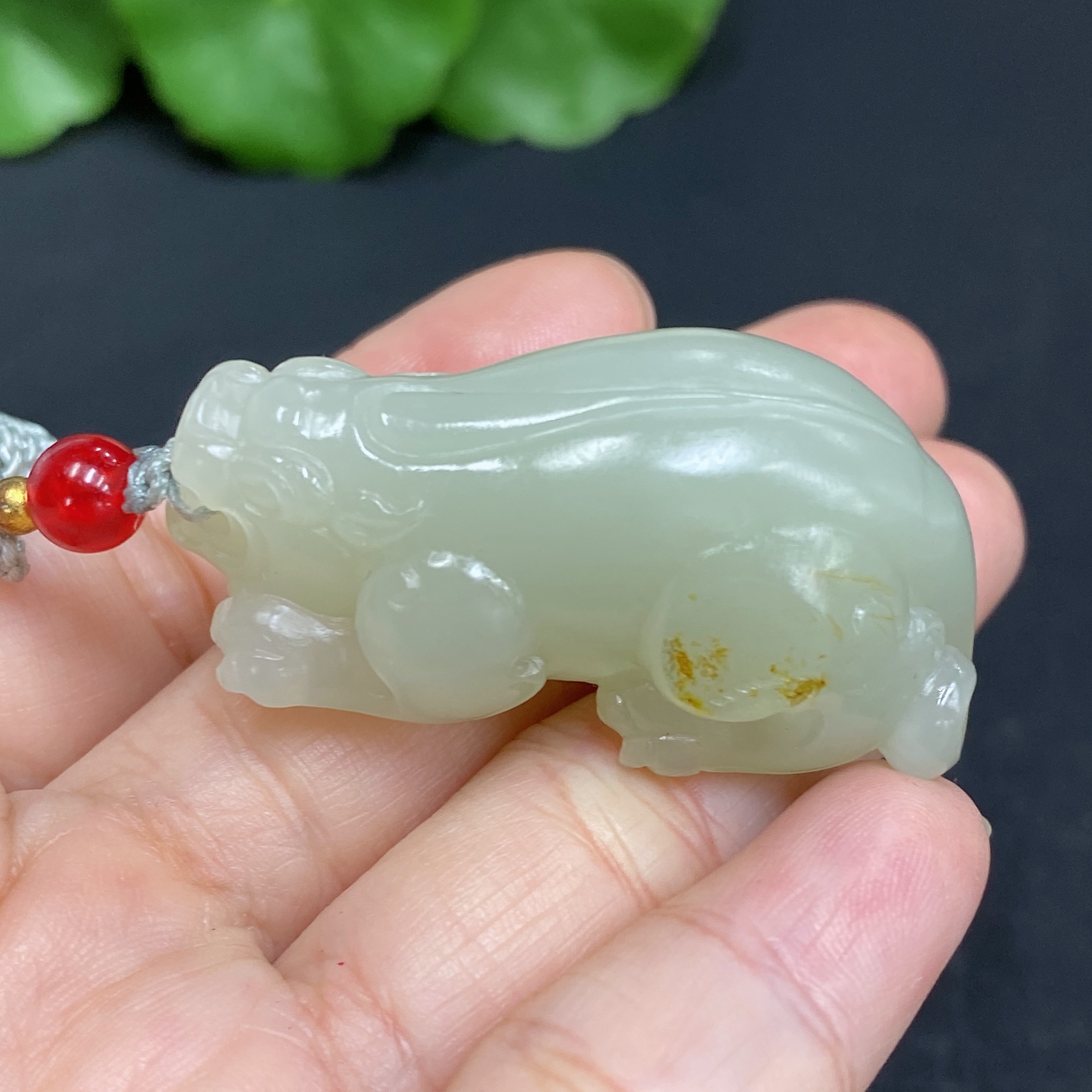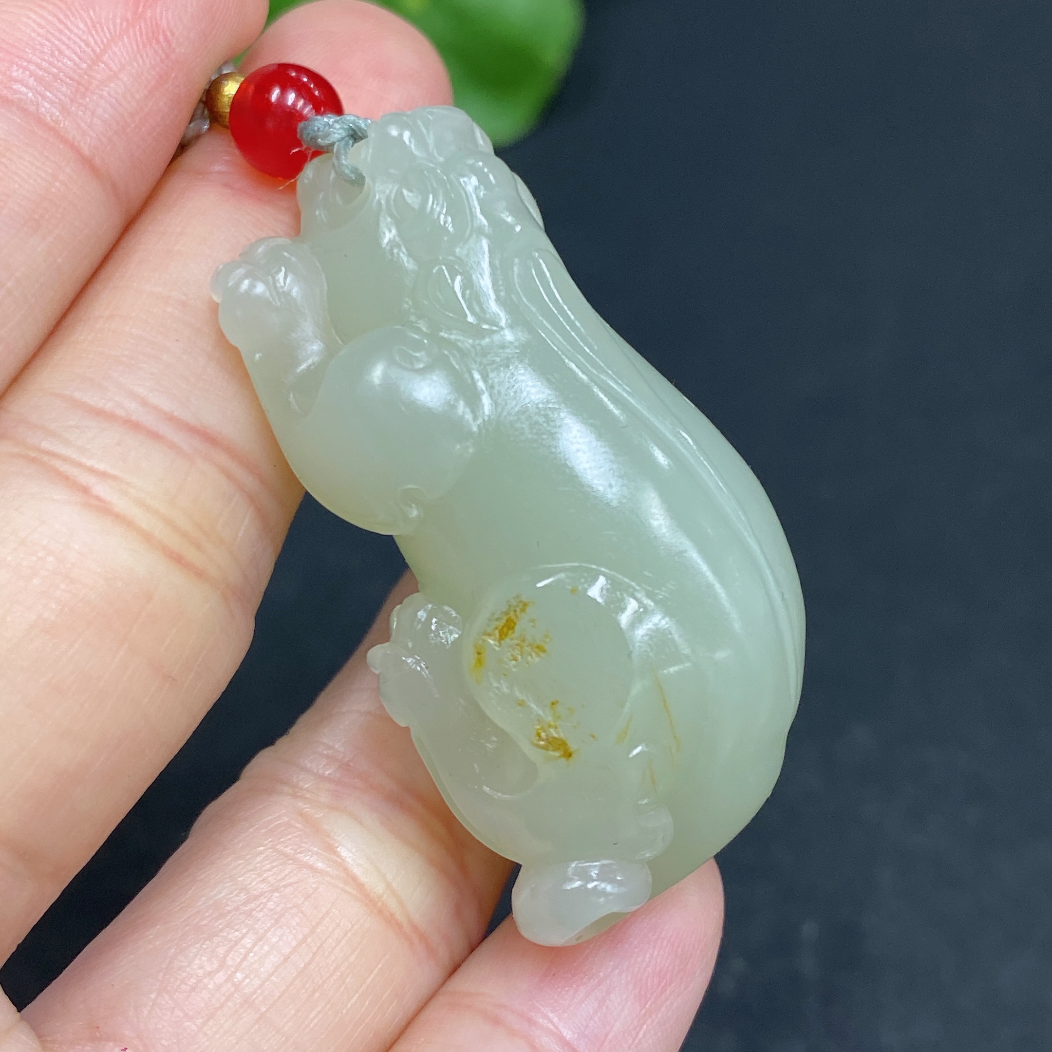 Hetian Jade Pendant, Pixiu, Total Weight (Including Rope) Approx. 25.4g, Undetermined Skin Color Origin