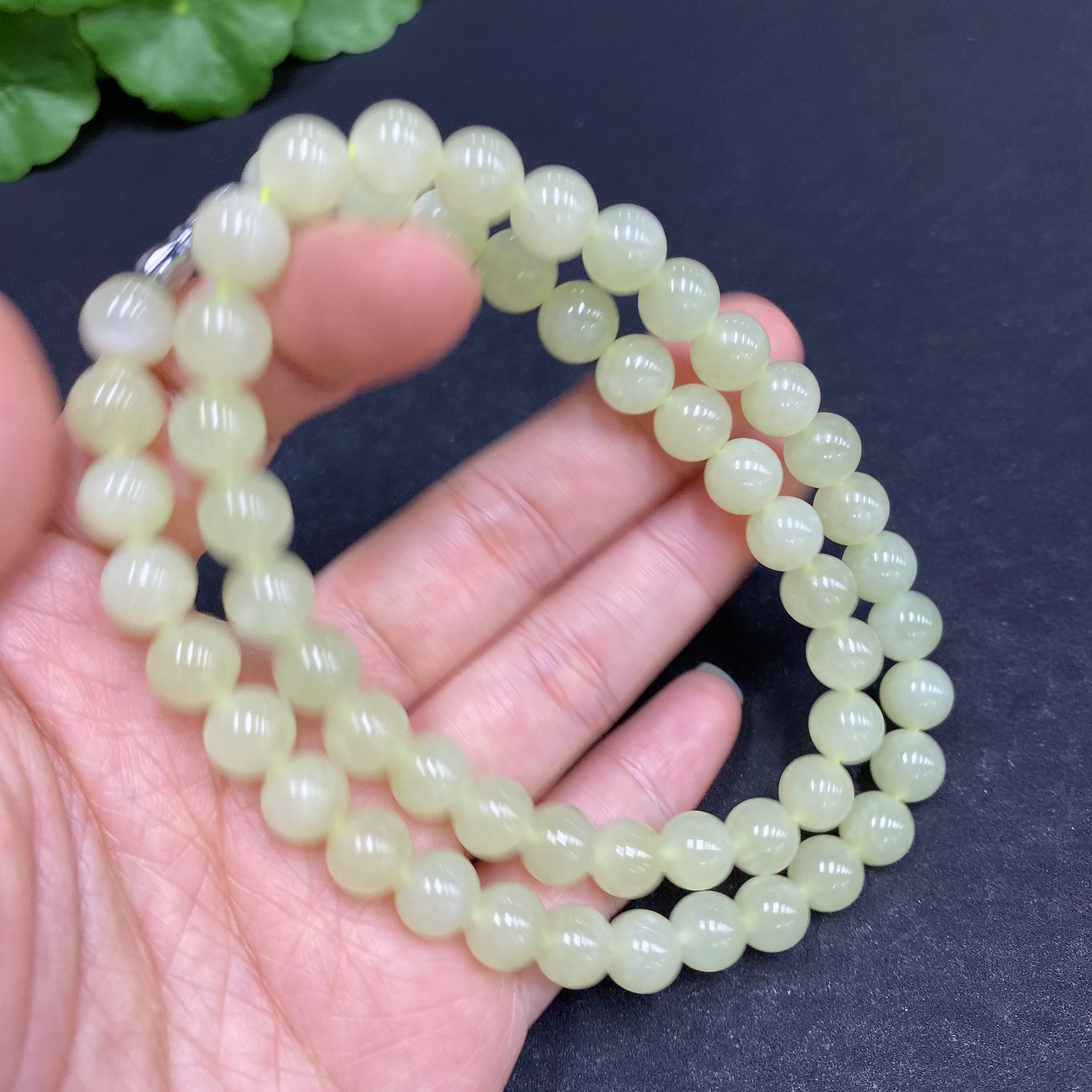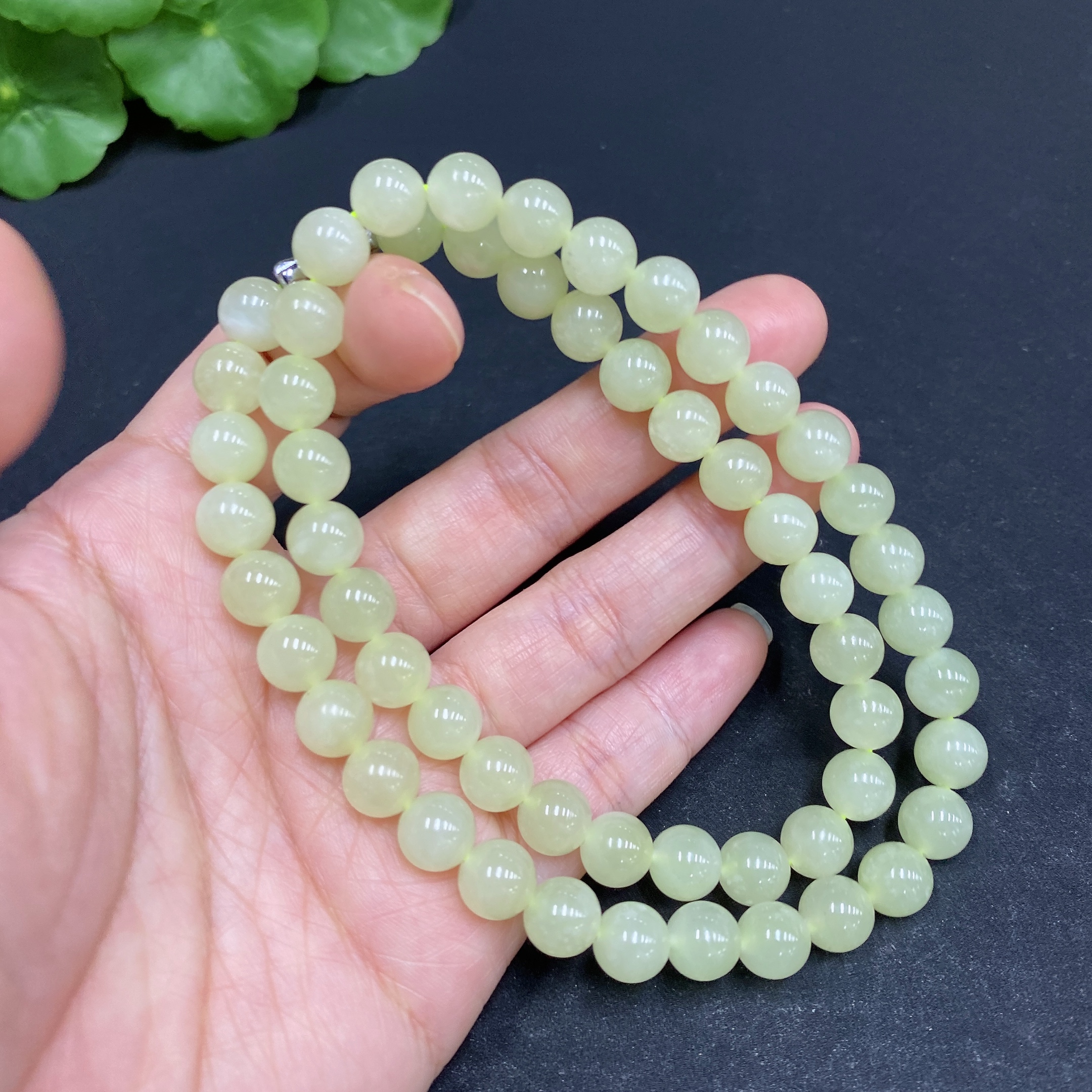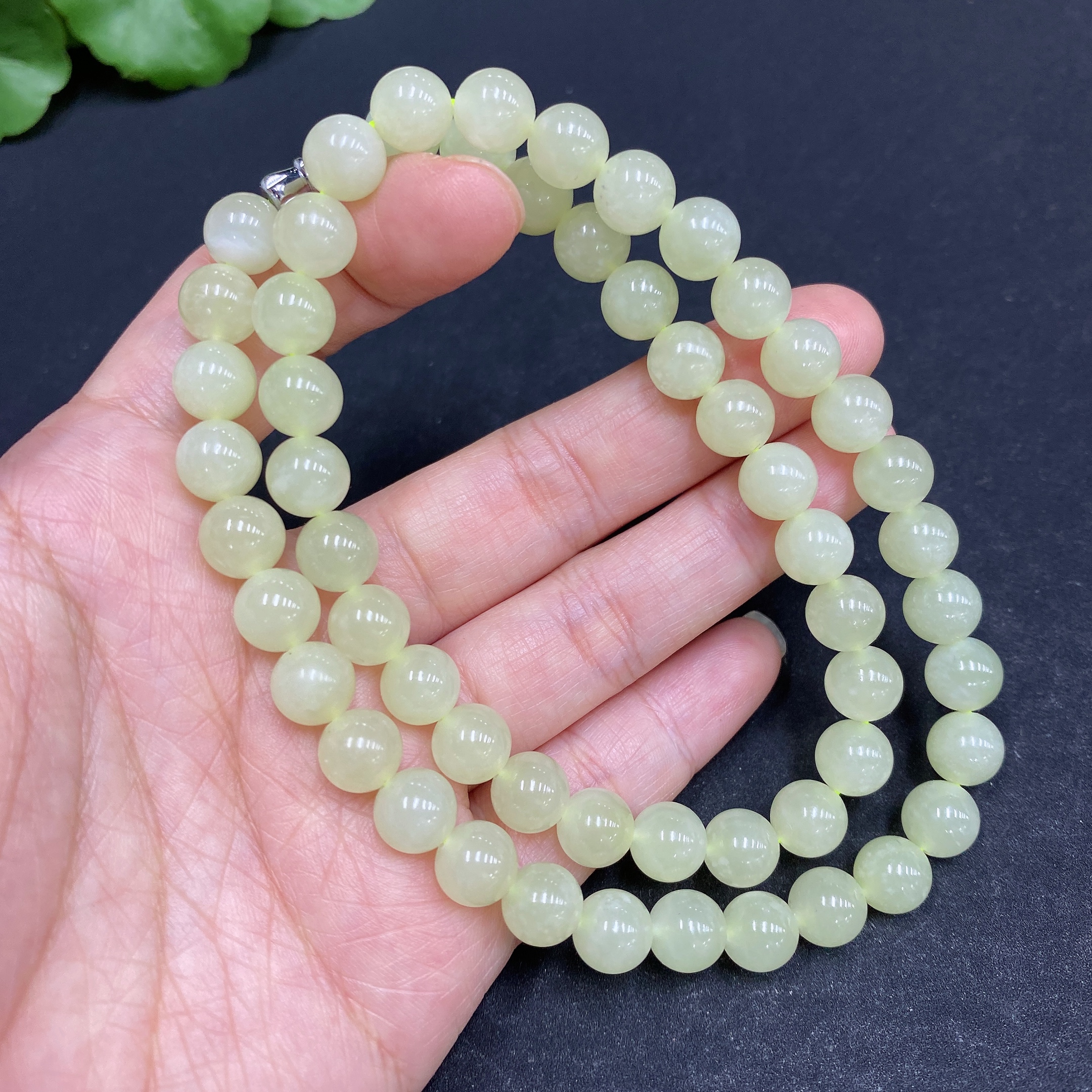 Hetian Jade Bead Necklace, Approx. 7.7mm, Total Weight About 43.5g