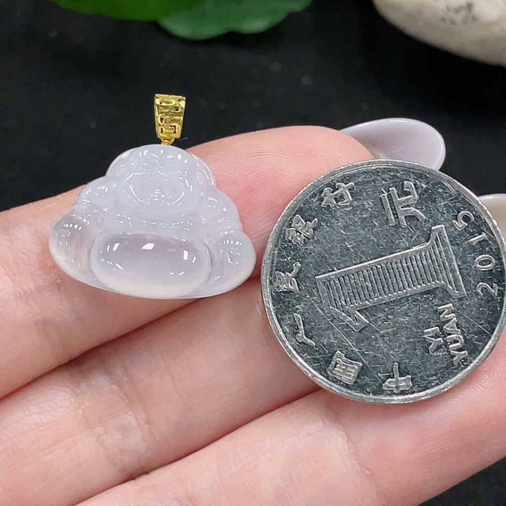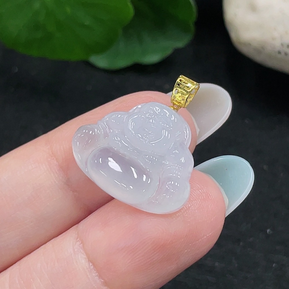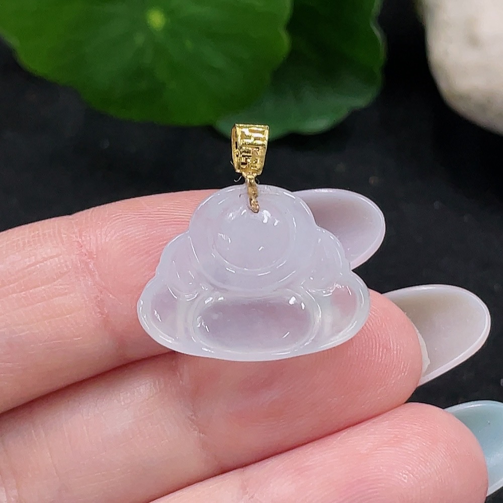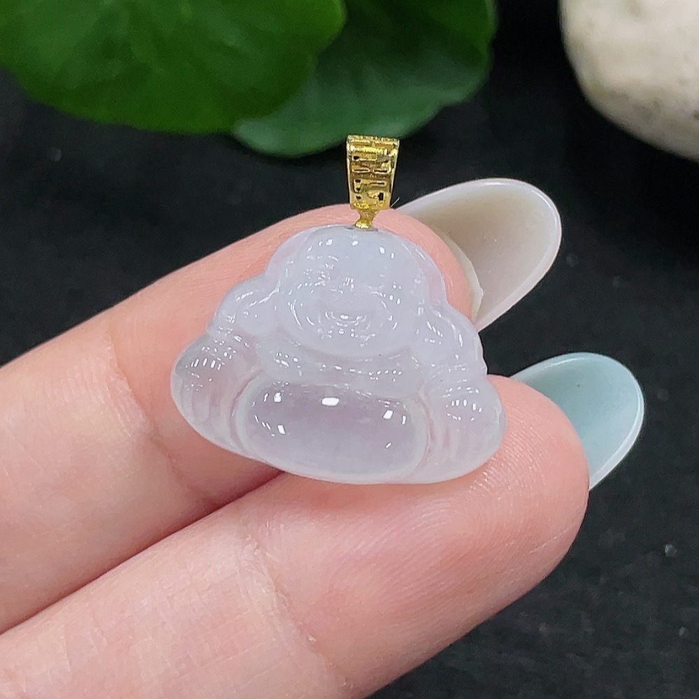 Jadeite Buddha Pendant in 18K Gold, Total Weight Approx. 2.4g