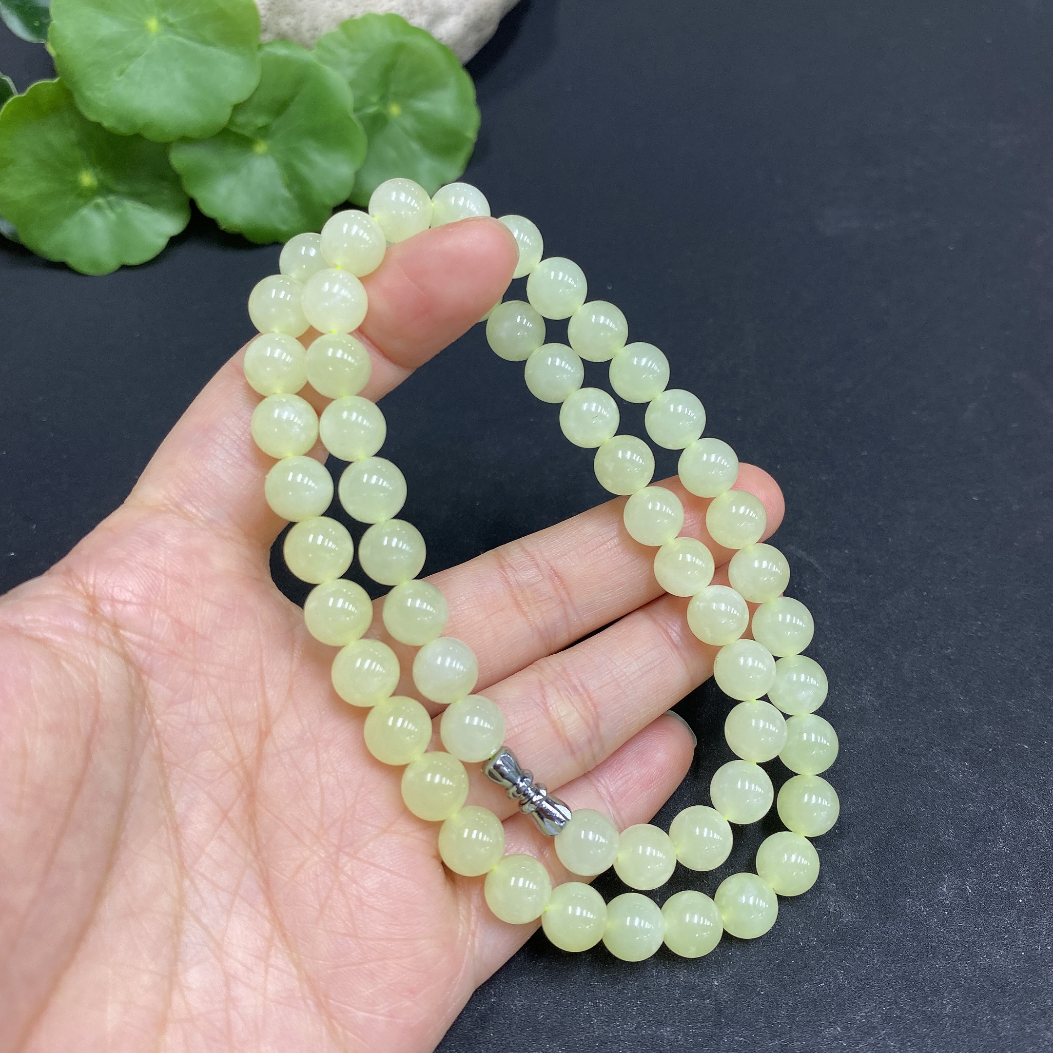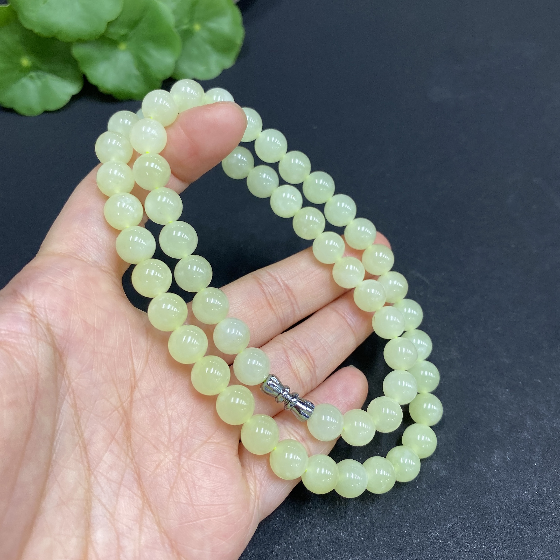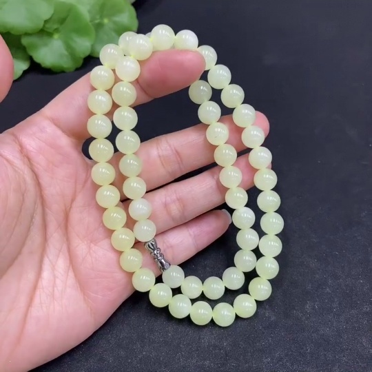 Hetian Jade Bead Necklace, Approx. 7.6mm, Total Weight Approx. 43.7g