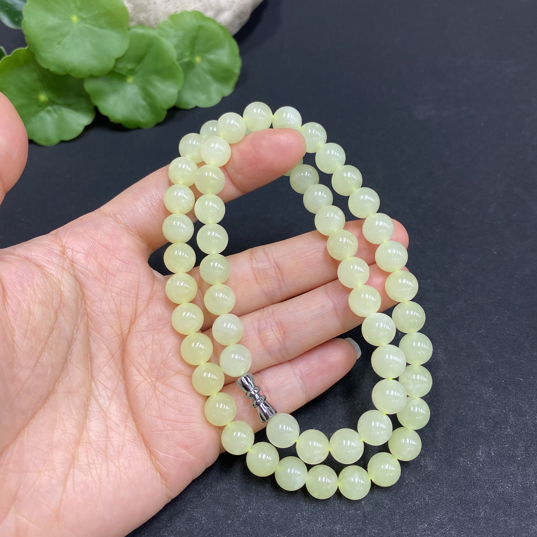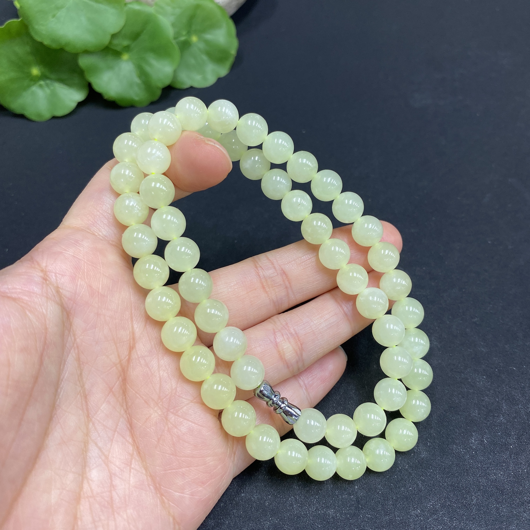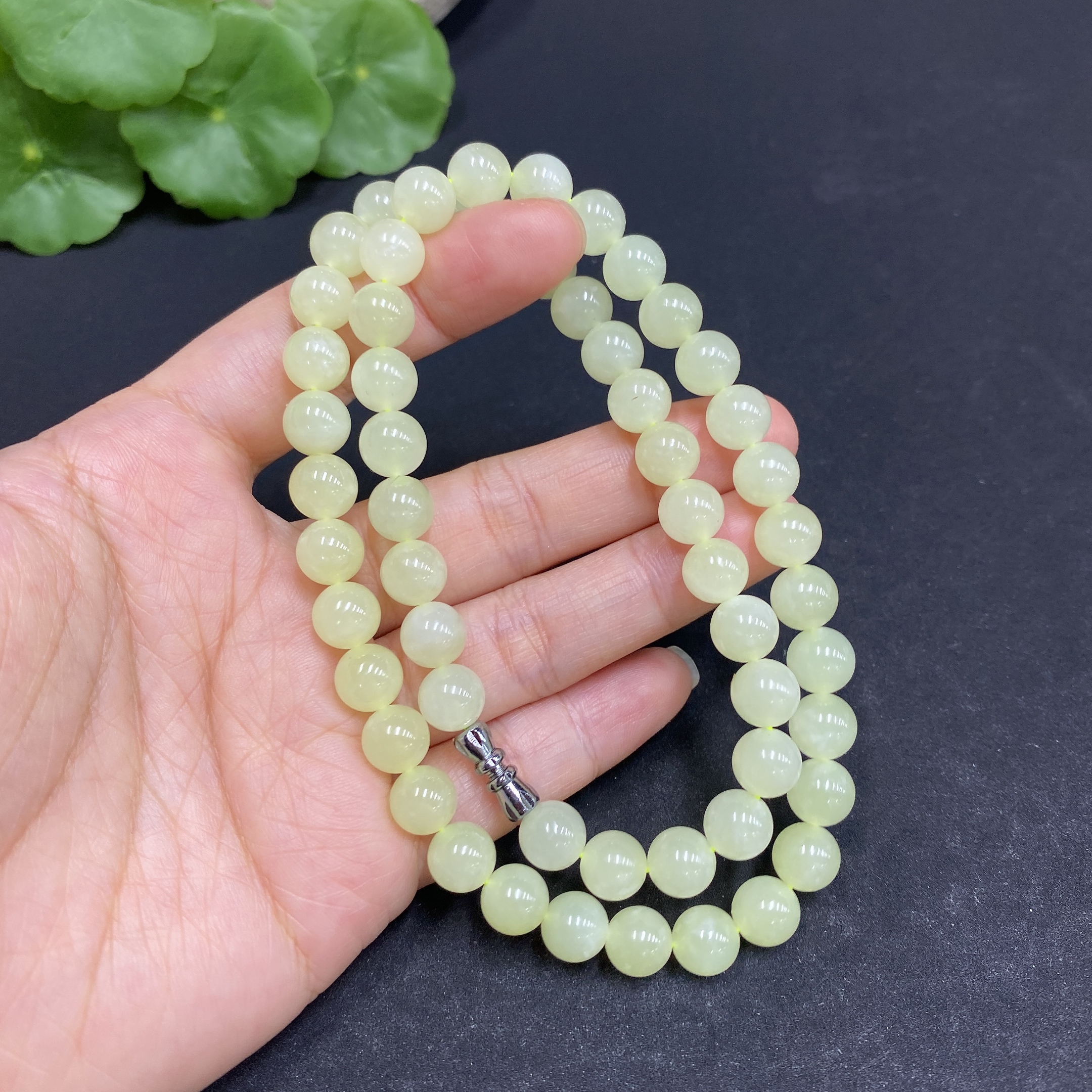 Hetian Jade Bead Necklace, Approx. 7.6mm, Total Weight Approx. 43.7g