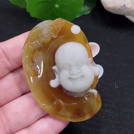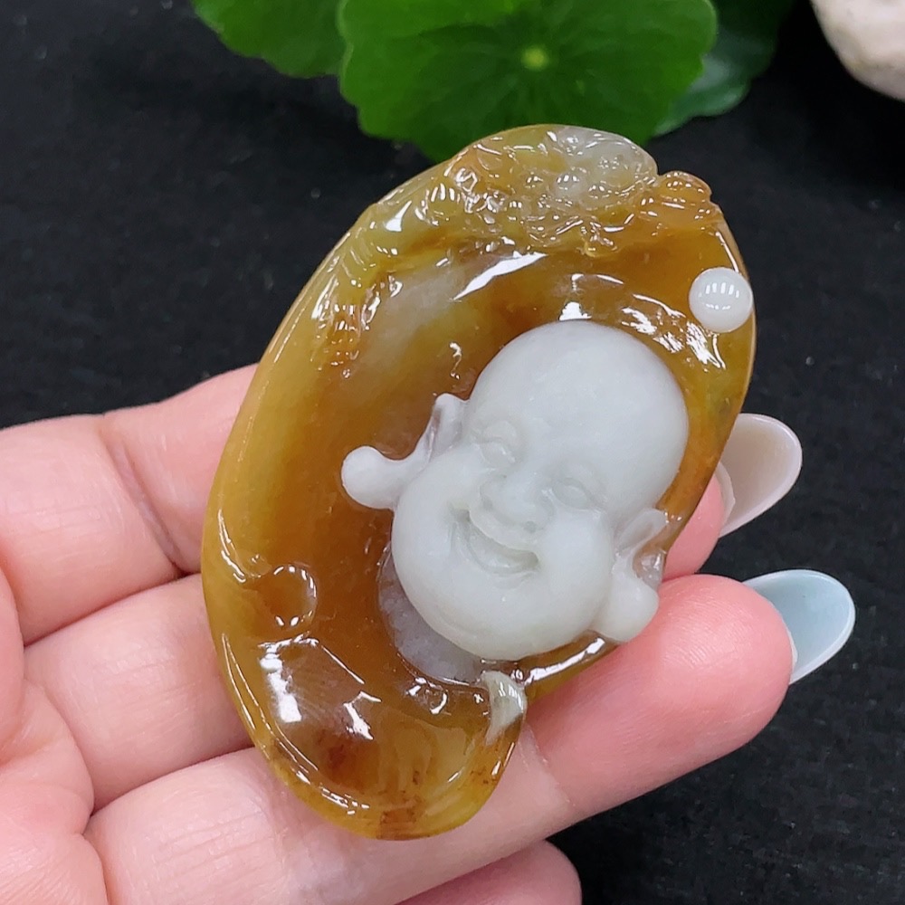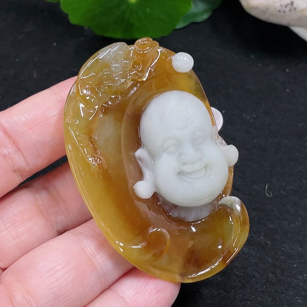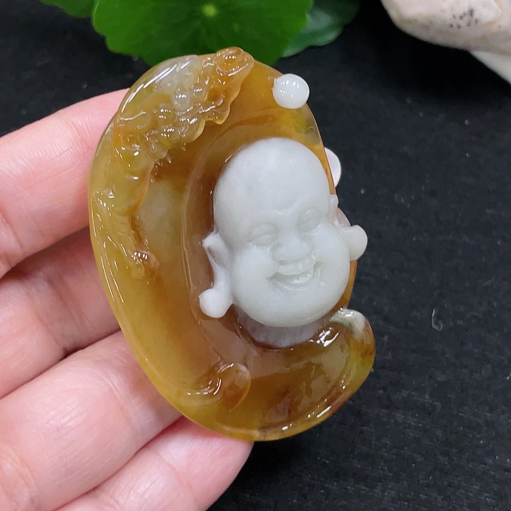 Jadeite Buddha pendant, total weight approx. 30.8g (color origin undetermined)
