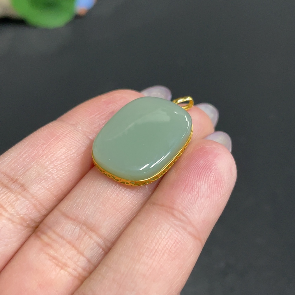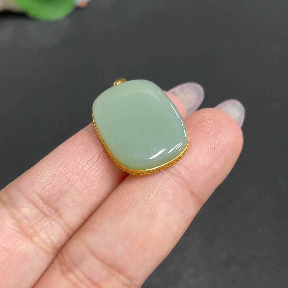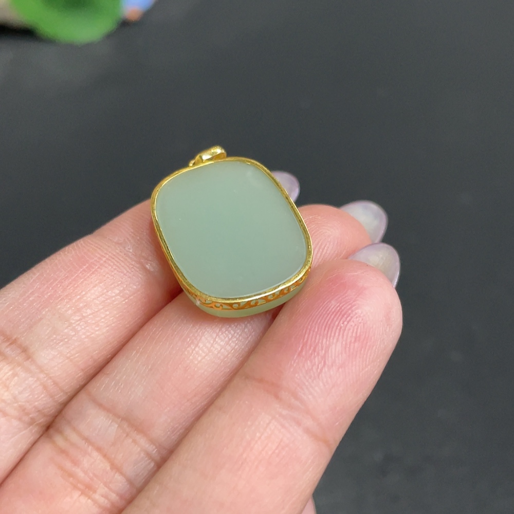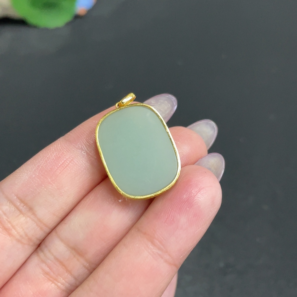Hetian Jade Inlaid Pendant, Plain Pendant, Total Weight Approx. 5g, 18k