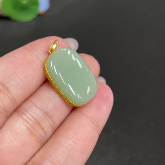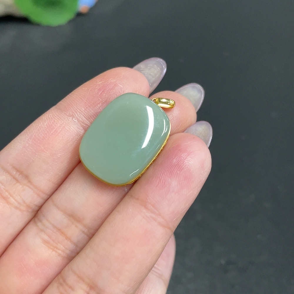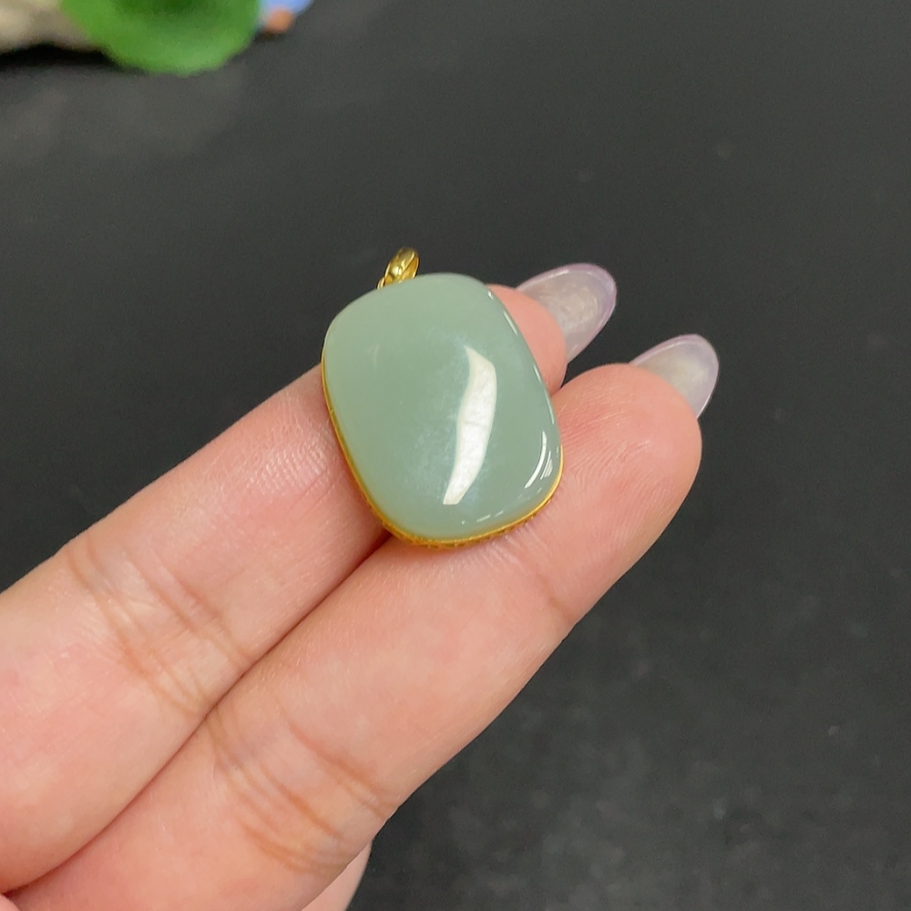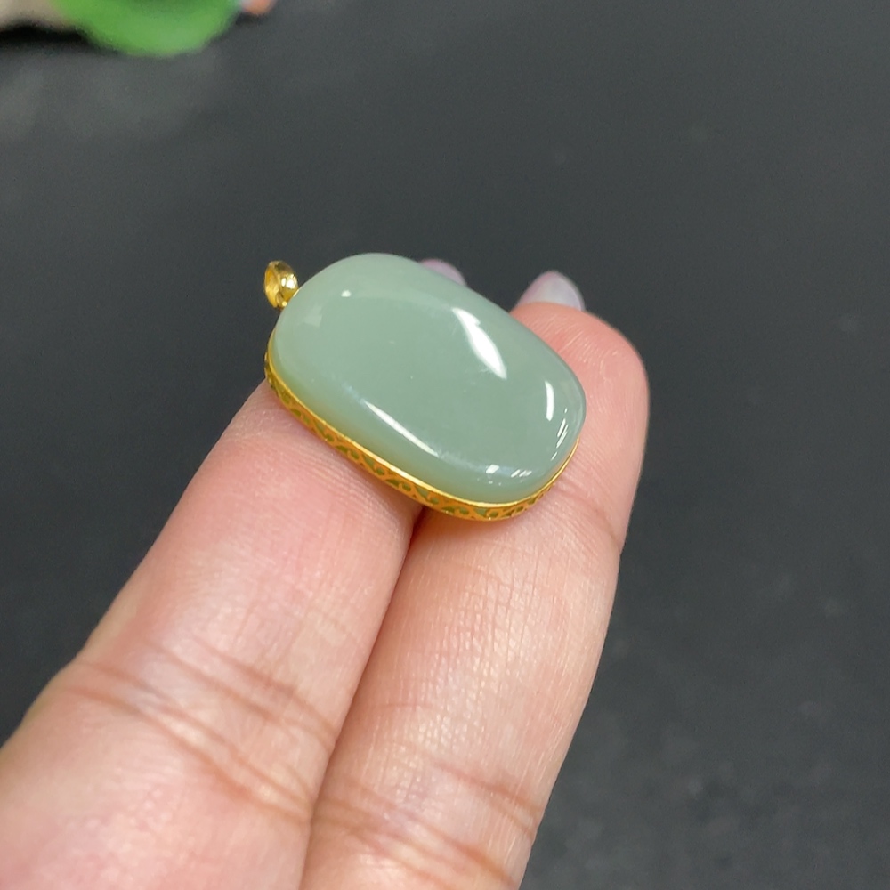 Hetian Jade Inlaid Pendant, Plain Pendant, Total Weight Approx. 5g, 18k