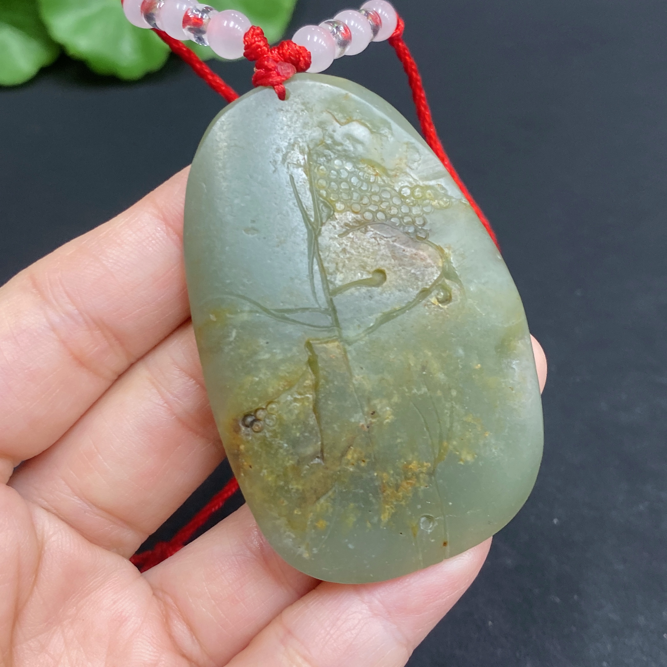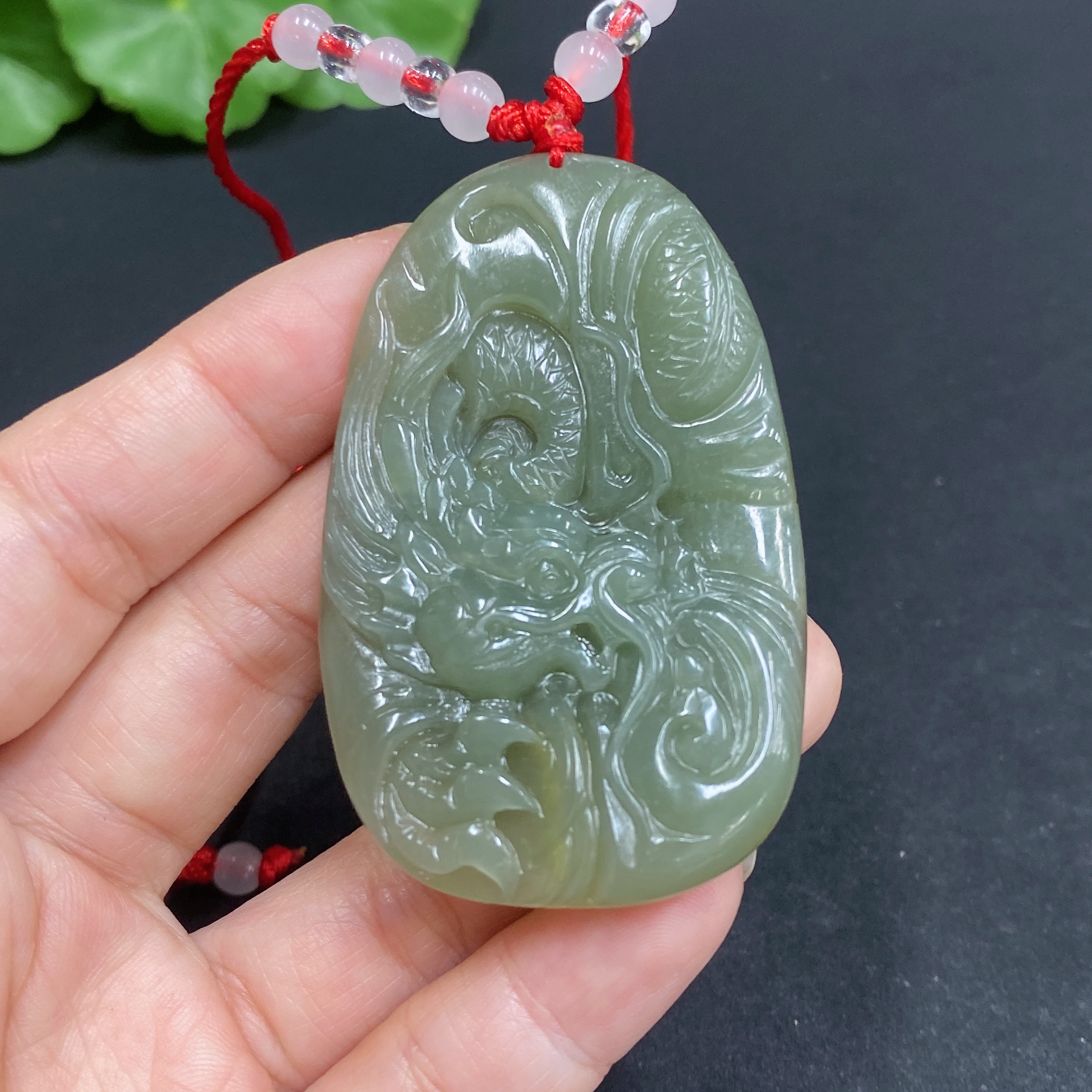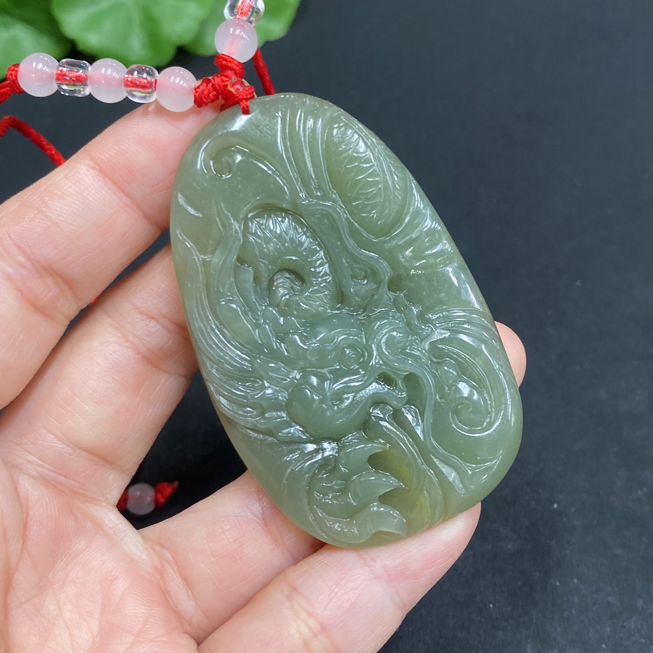 Hetian Jade Seed Material Pendant Dragon Plaque, Total Weight (including rope) Approx. 32g, Undetermined Skin Color Origin