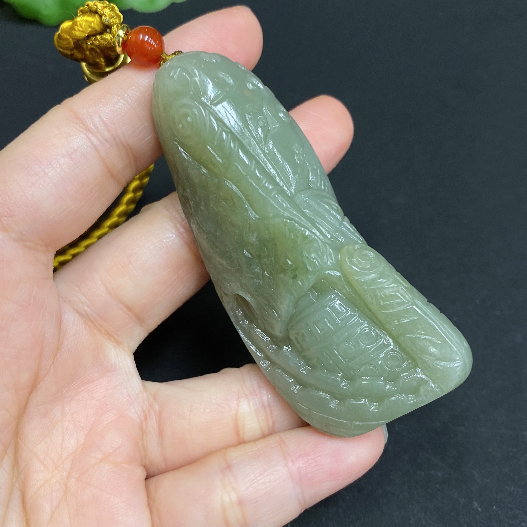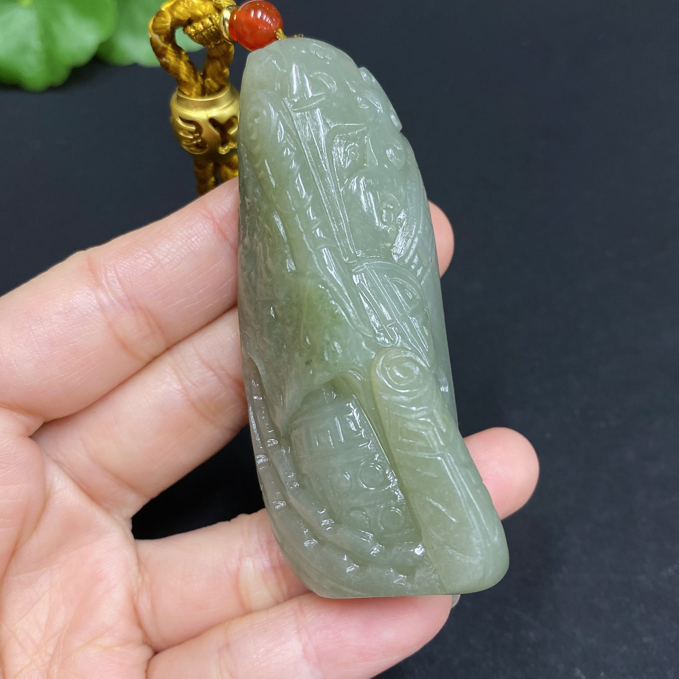 Hetian Jade Seed Material Handheld Piece Archaistic Style Total Weight Approx. (Incl. String) 67.8g