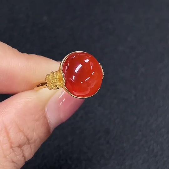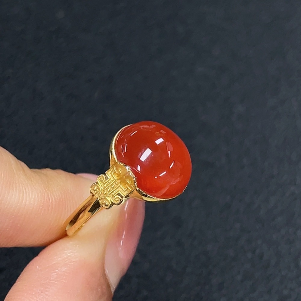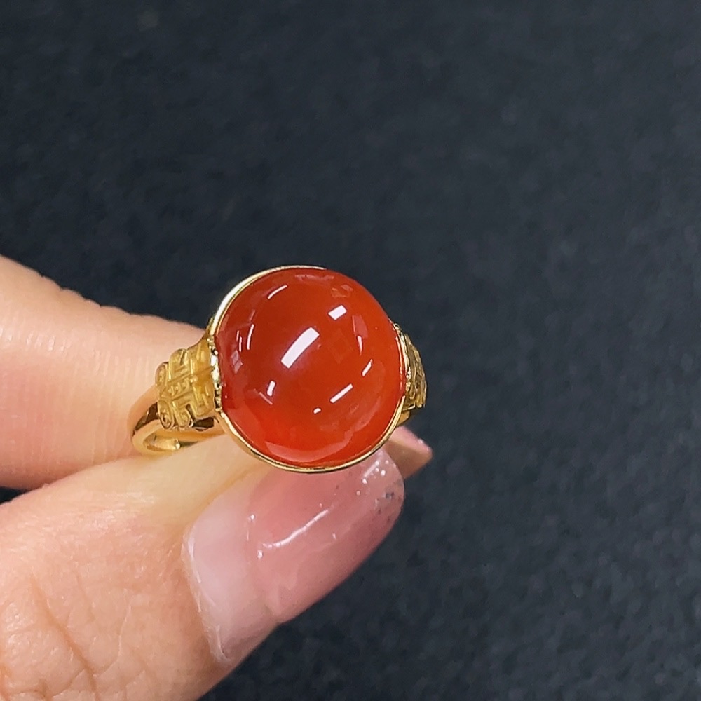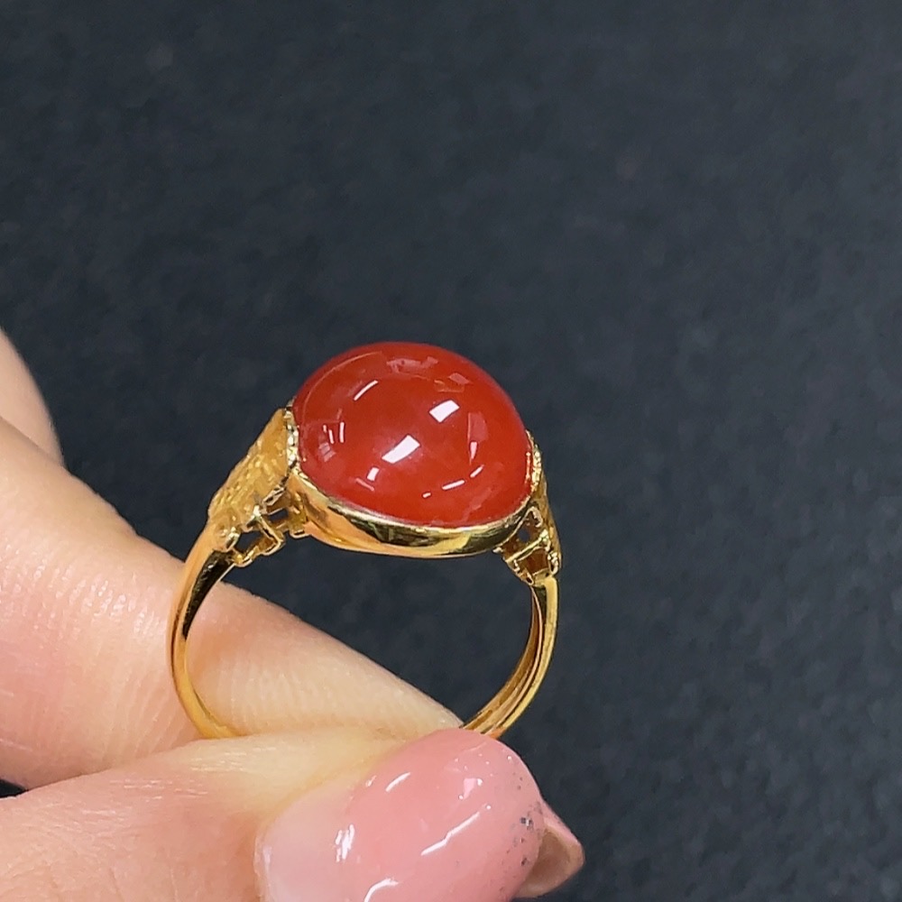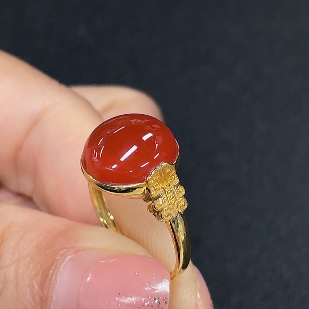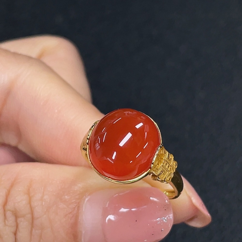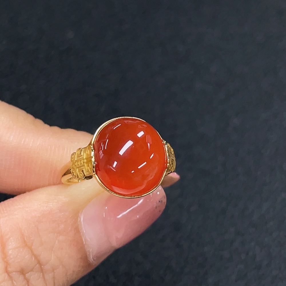 18K Gold South Red Agate Ring, Total Weight Approx. 3.26g, Size 14, Stone 11.9mm