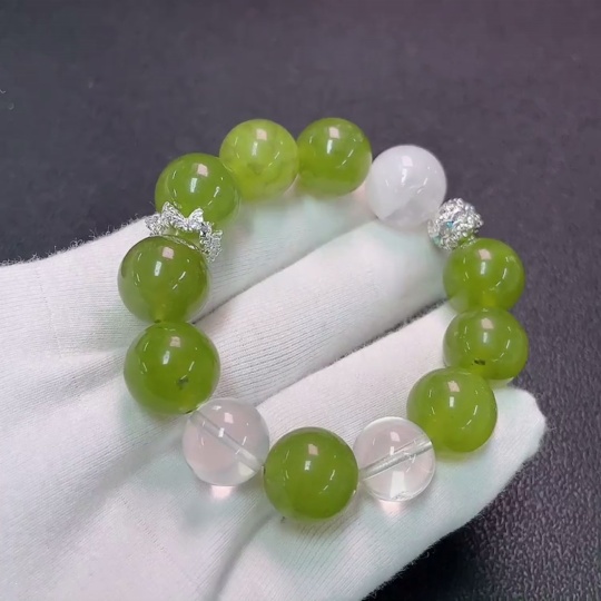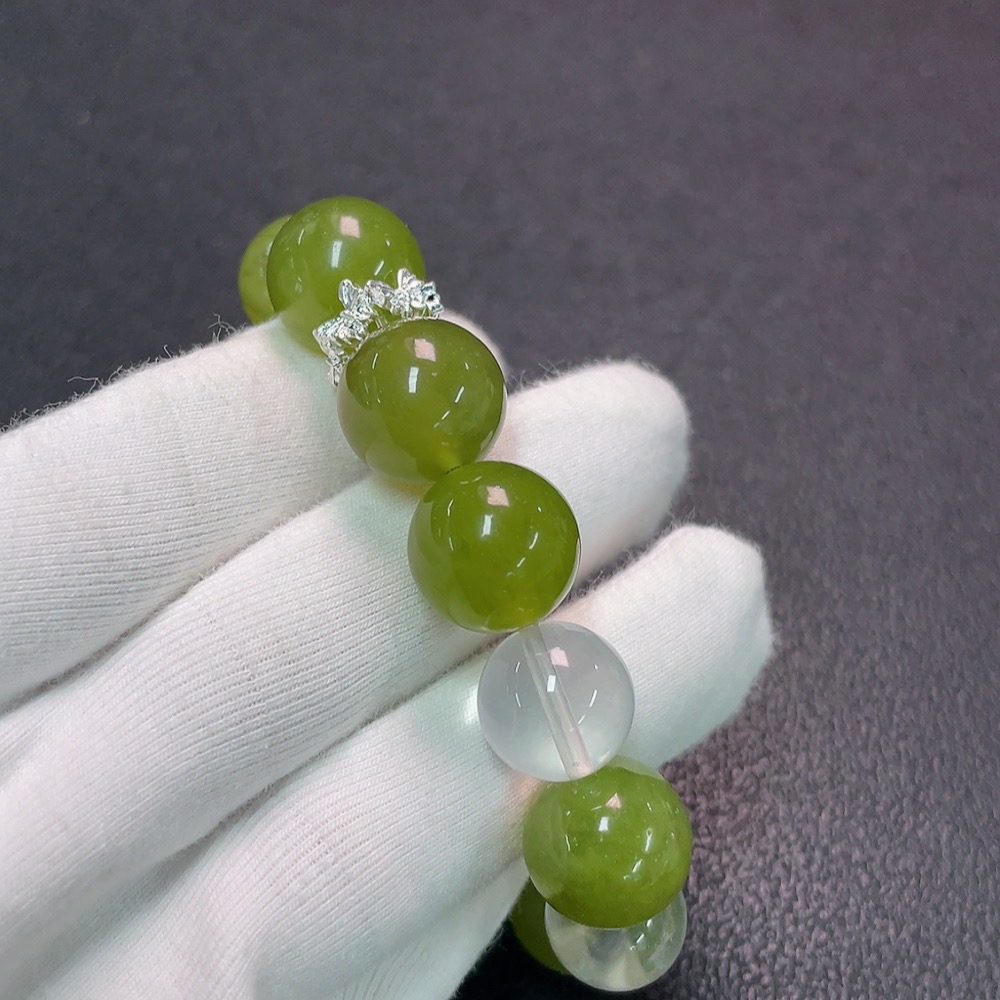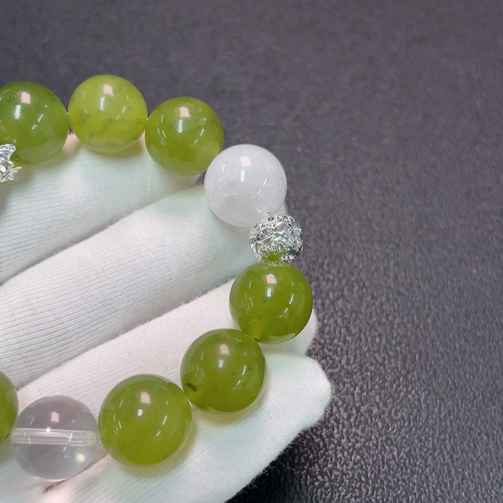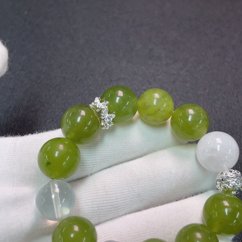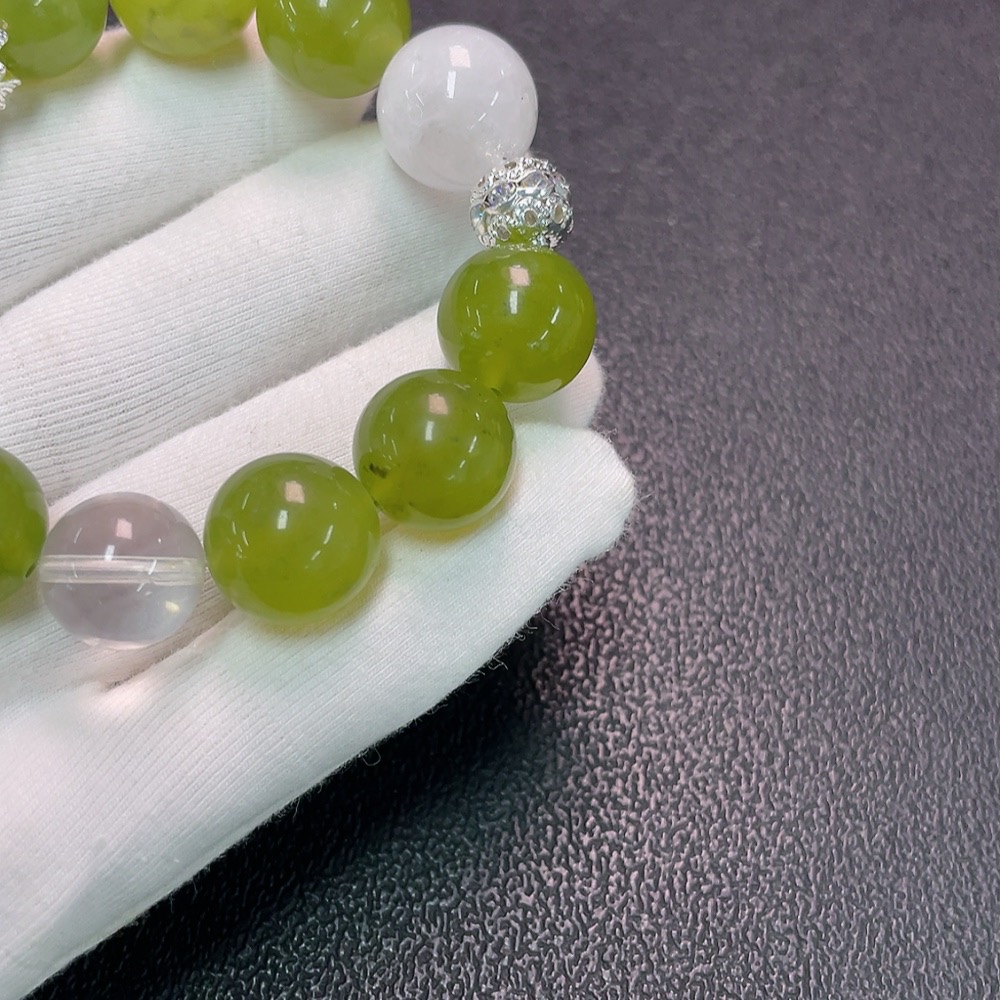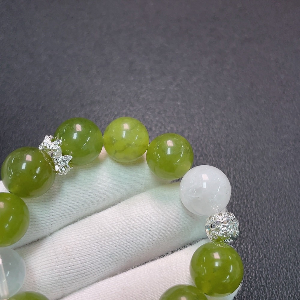 Crystal Bracelet with Xiuyan Jade, Non-Gold, Total Weight Approx. 50.34g, Size 12.7-15mm