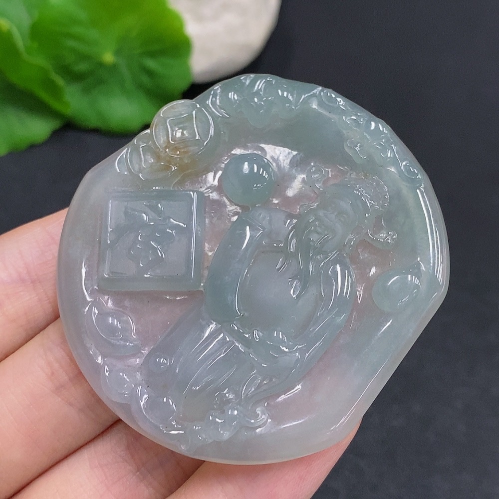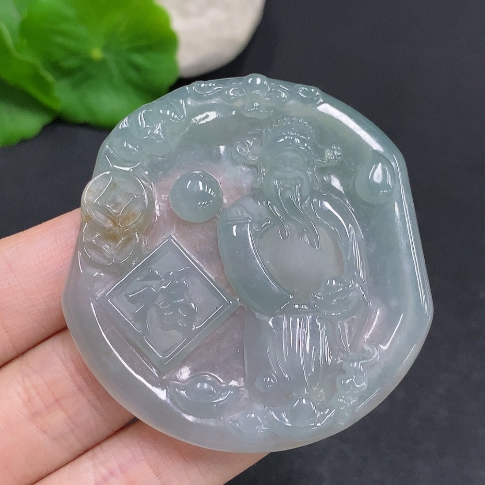 Jadeite God of Wealth Pendant, Total Weight Approx. 30g
