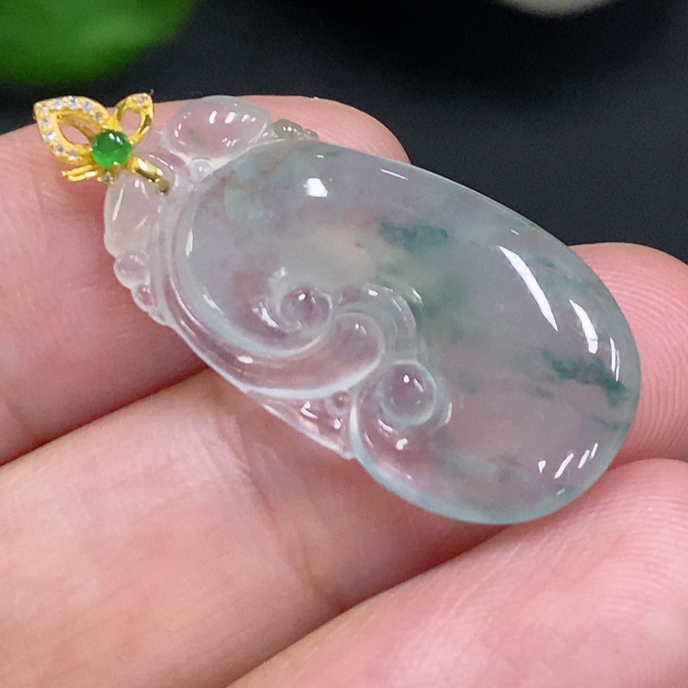 Jadeite Ruyi Pendant with 18K Gold Clasp, Total Weight Approximately 2.5g
