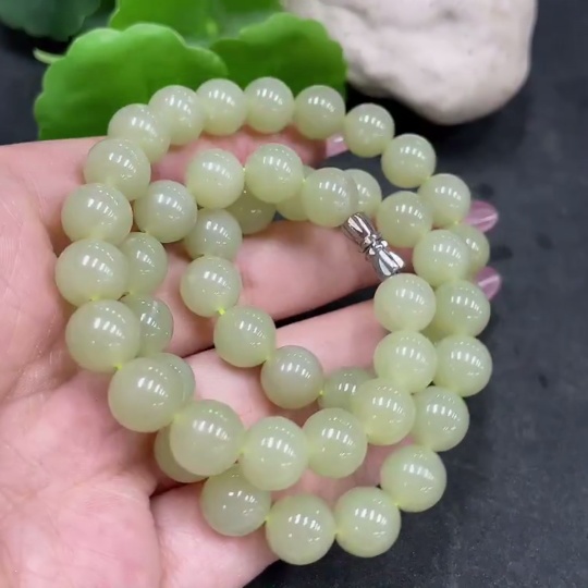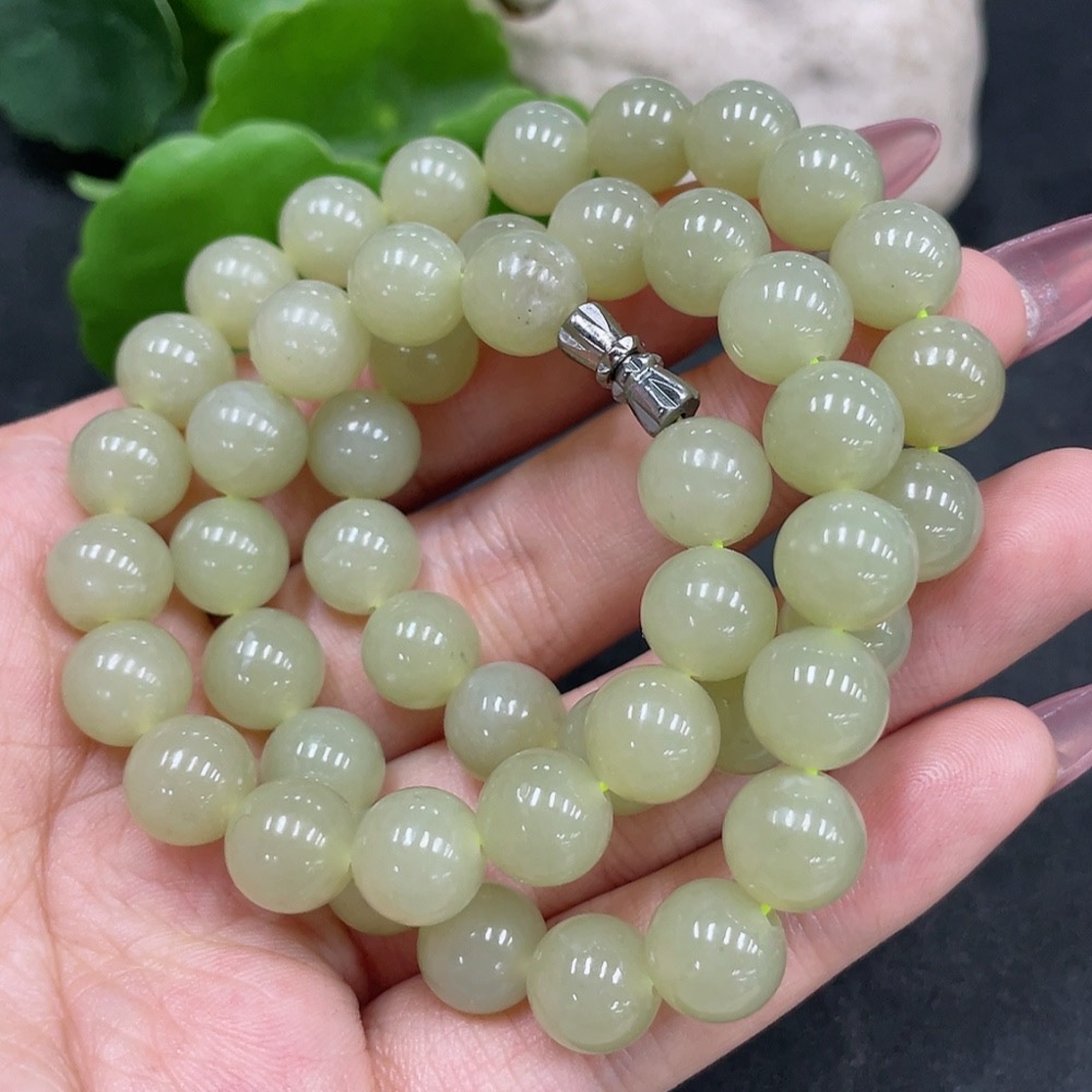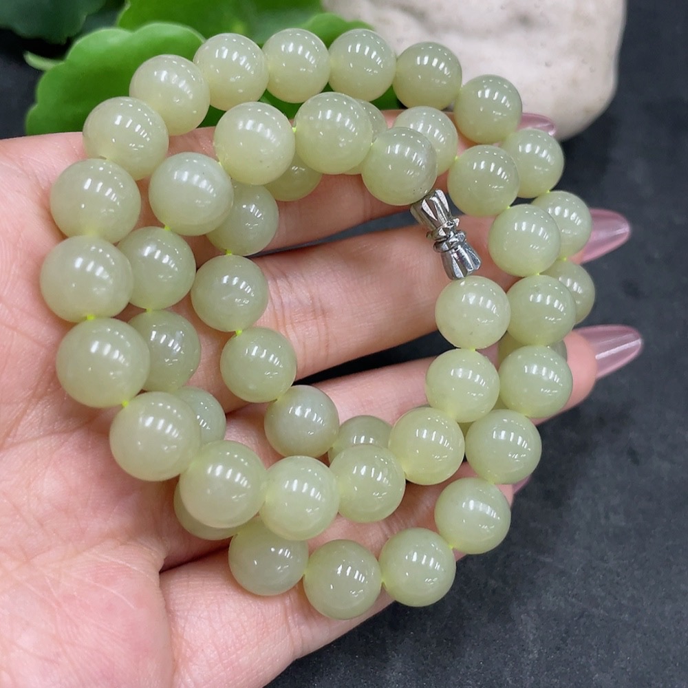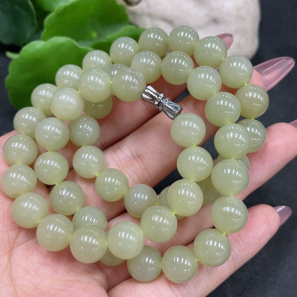 Hetian Jade Bead Necklace Approx.9.2mm Non-Gold Total Weight About 63.9g