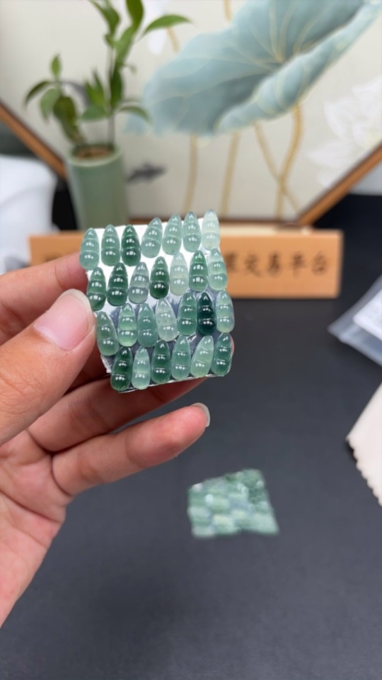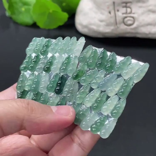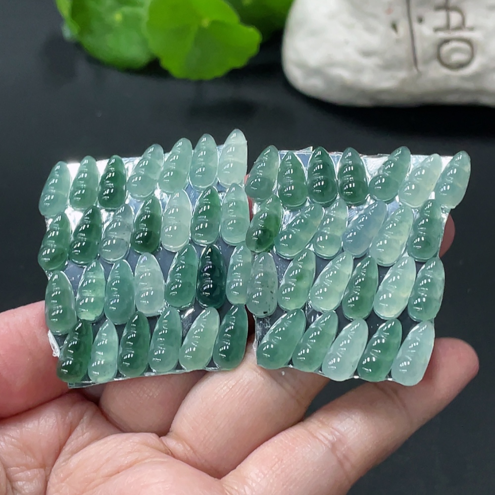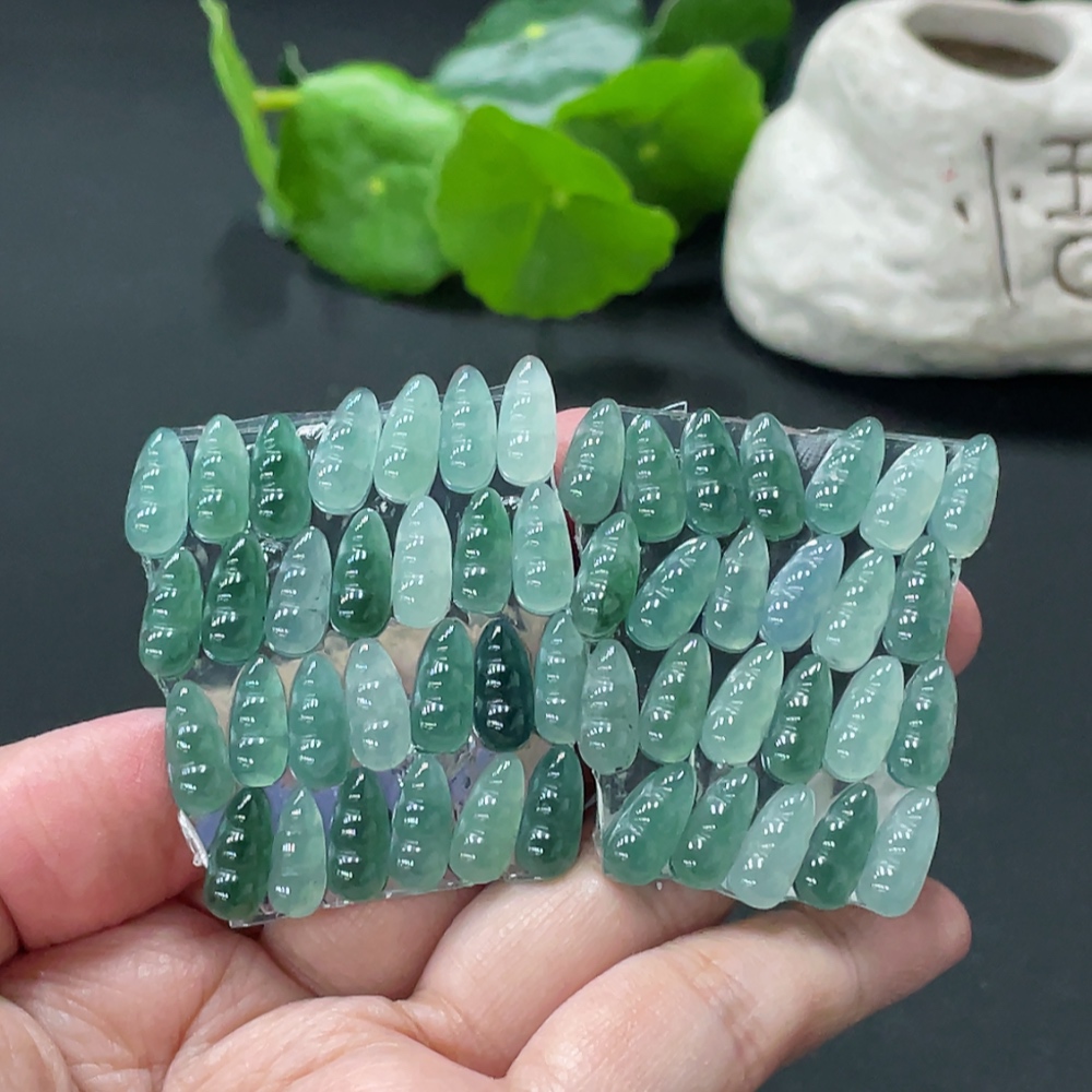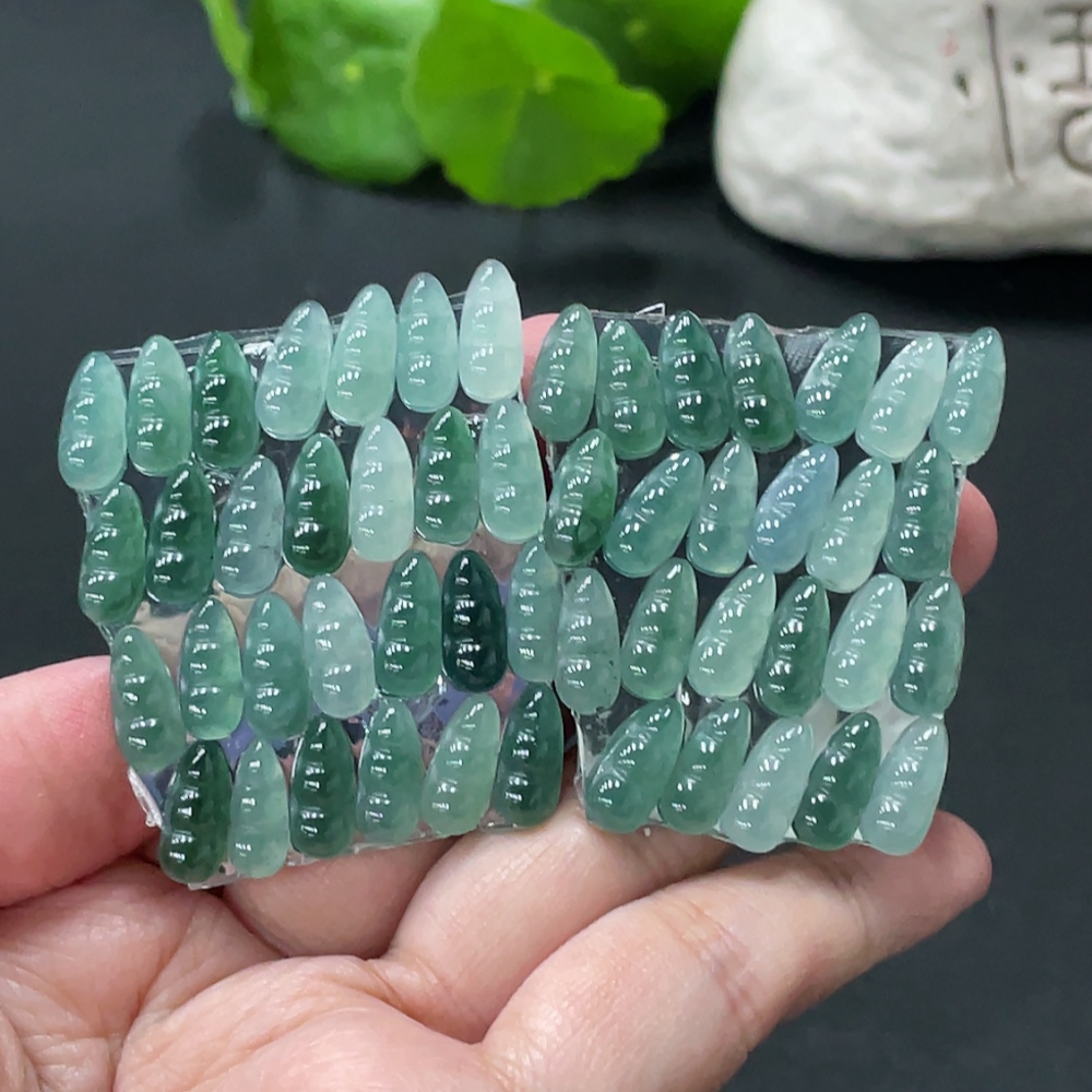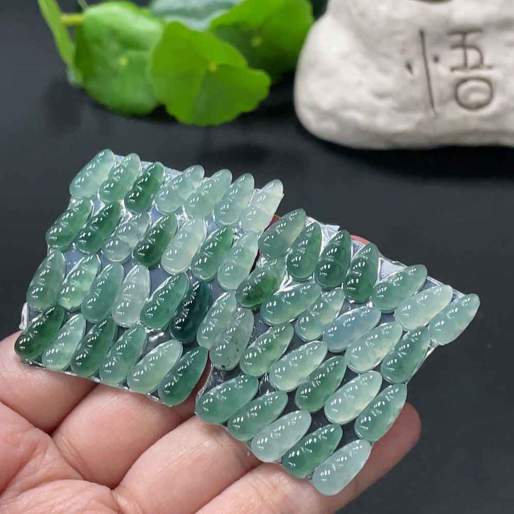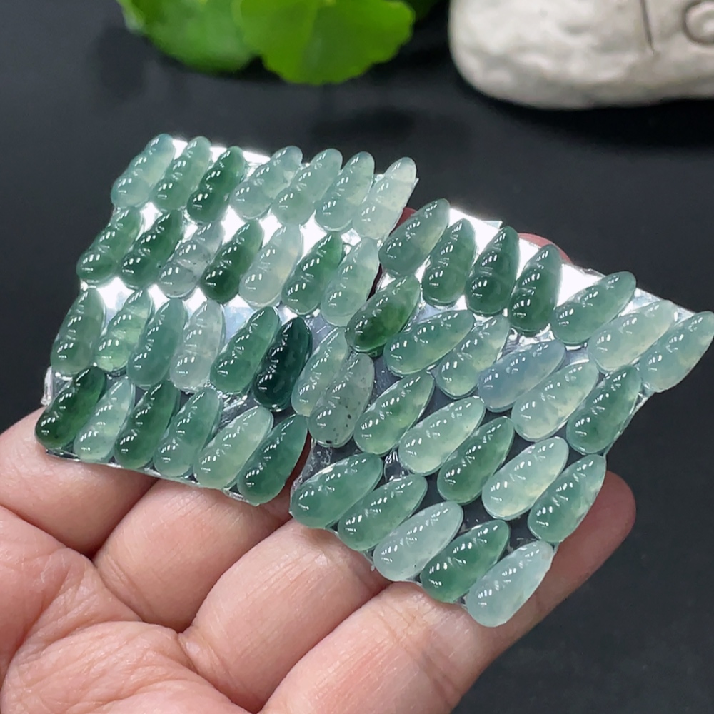 Jadeite Auspicious Bean Inlay Piece Sell as a Lot Total Weight Approx. 15.9g (Including Paper Tag)