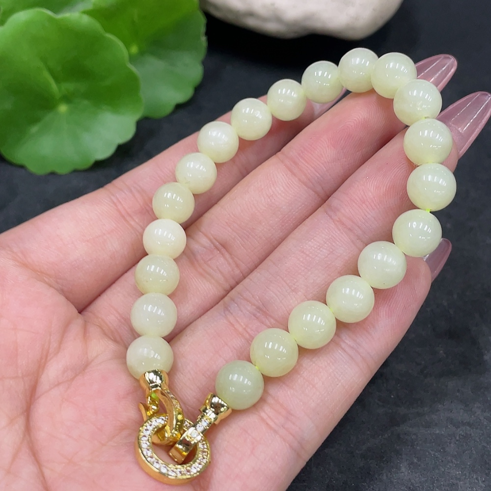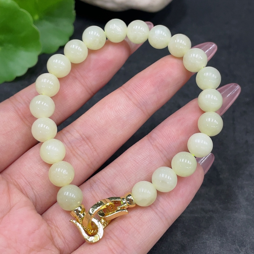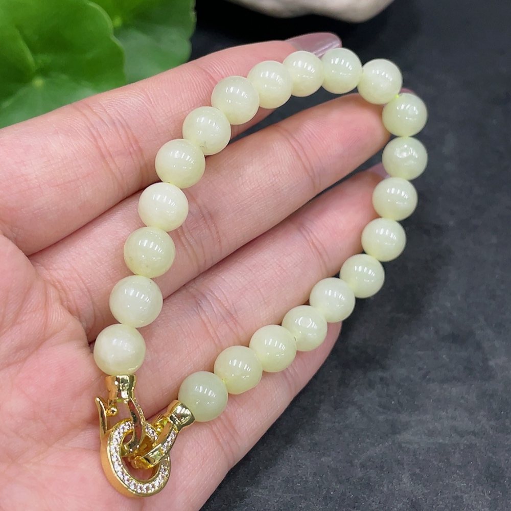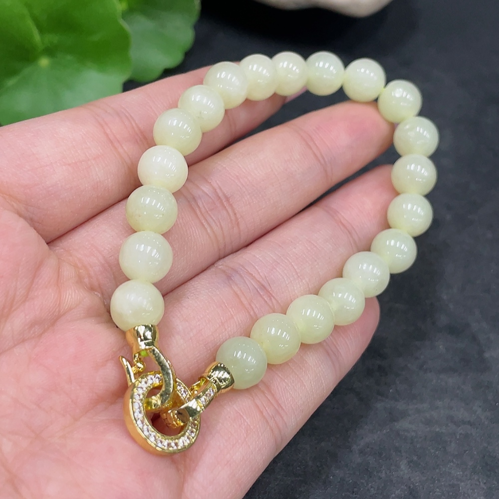 Hetian Jade Beaded Bracelet Approx.7.7mm Non-gold-inlaid Total Weight Approx.18g