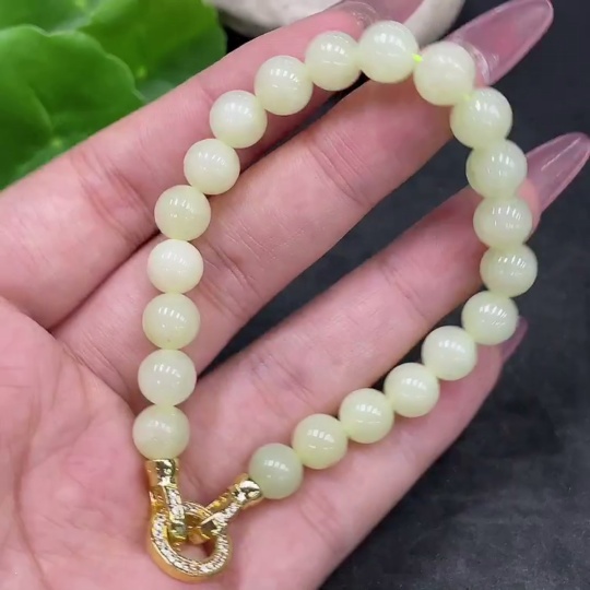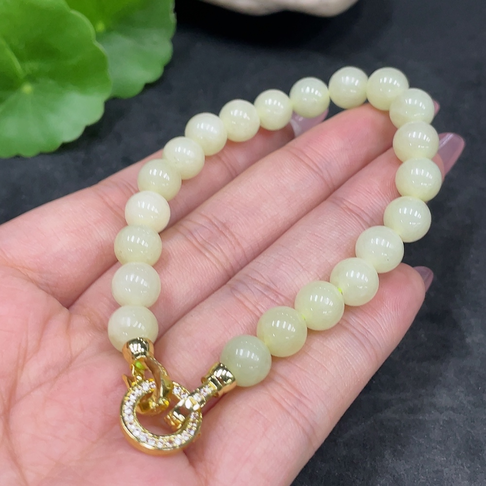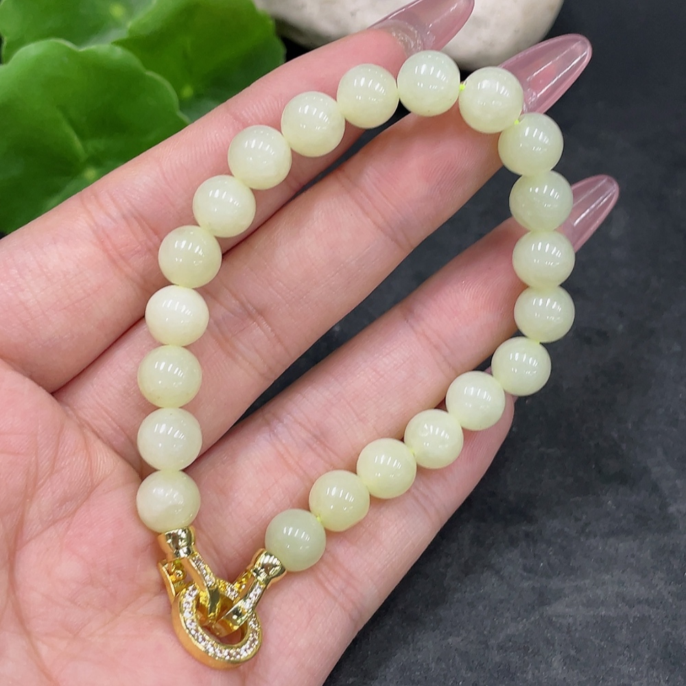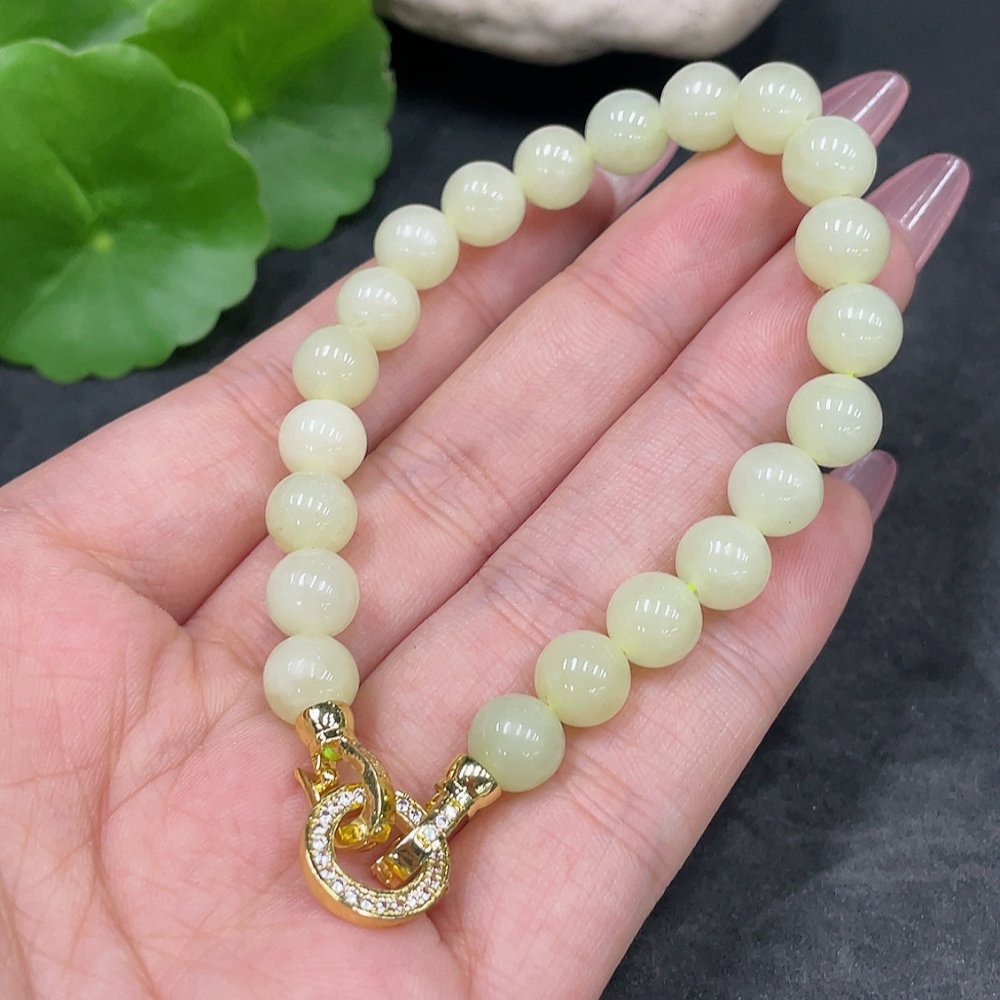 Hetian Jade Beaded Bracelet Approx.7.7mm Non-gold-inlaid Total Weight Approx.18g