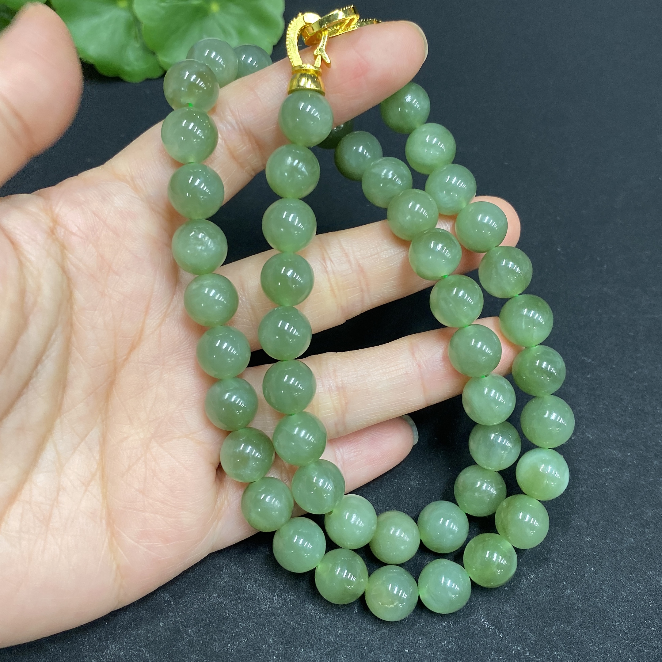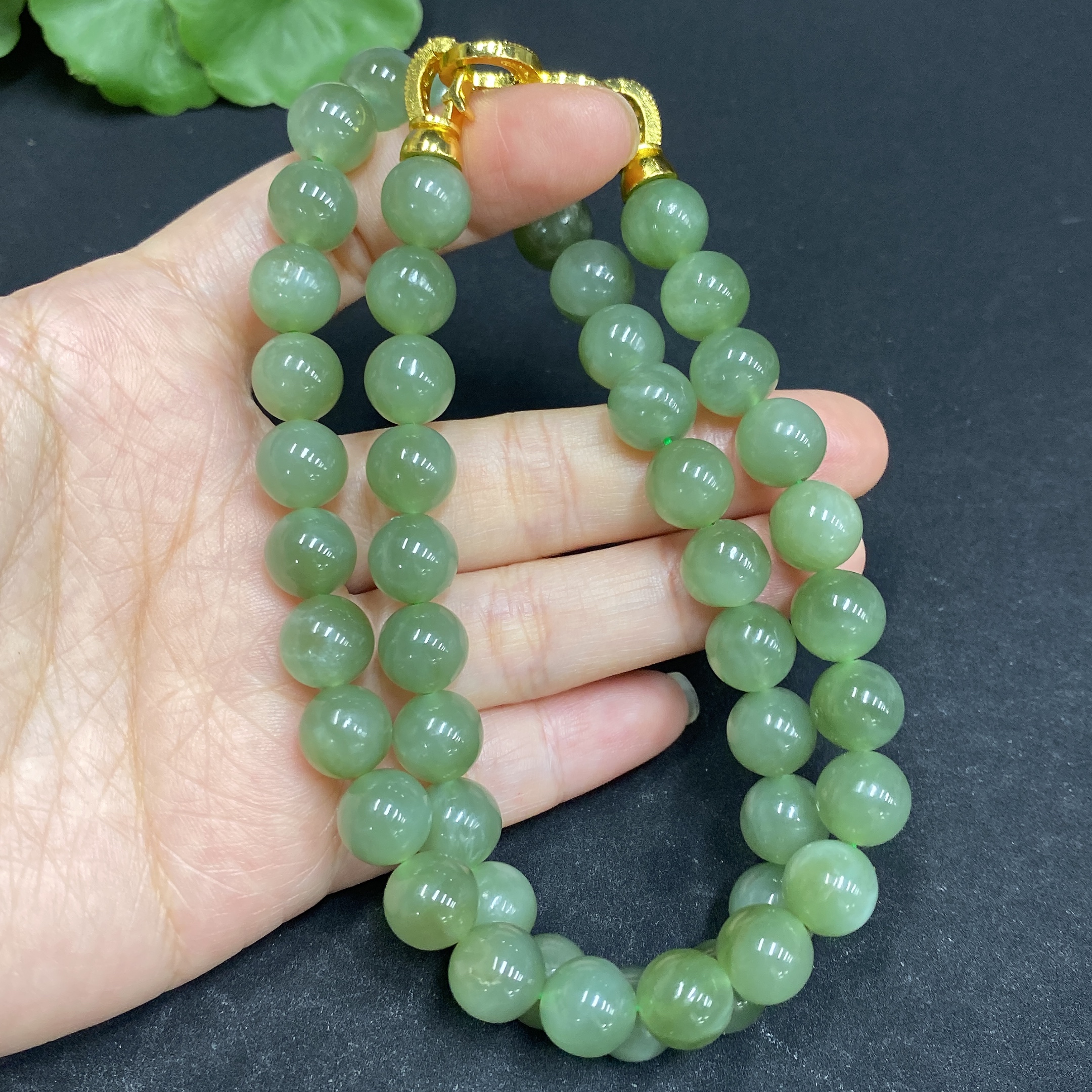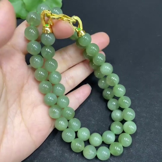 Hetian Jade Bead Necklace Approx. 9.3mm Non-gold-inlaid Total Weight Approx. 66.5g