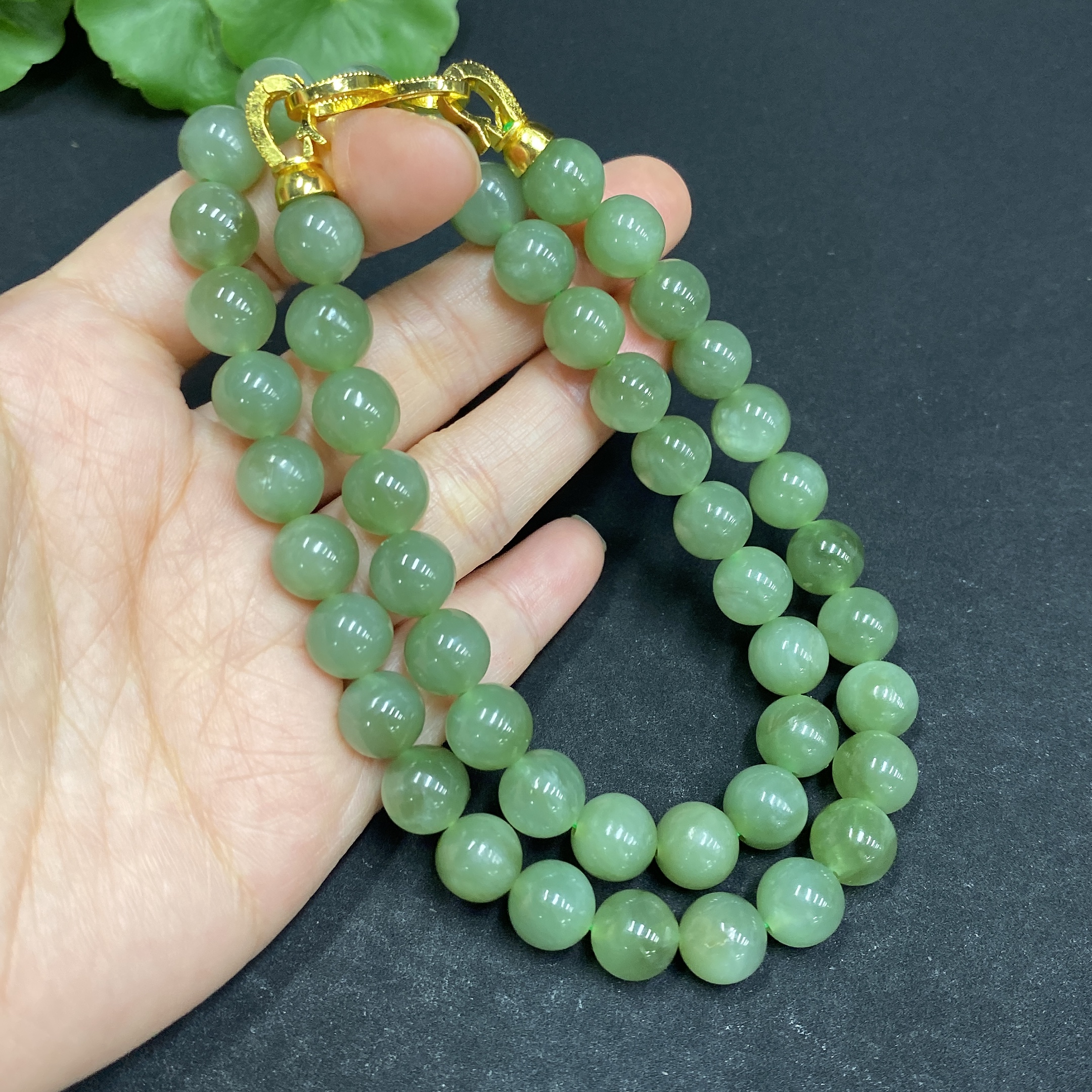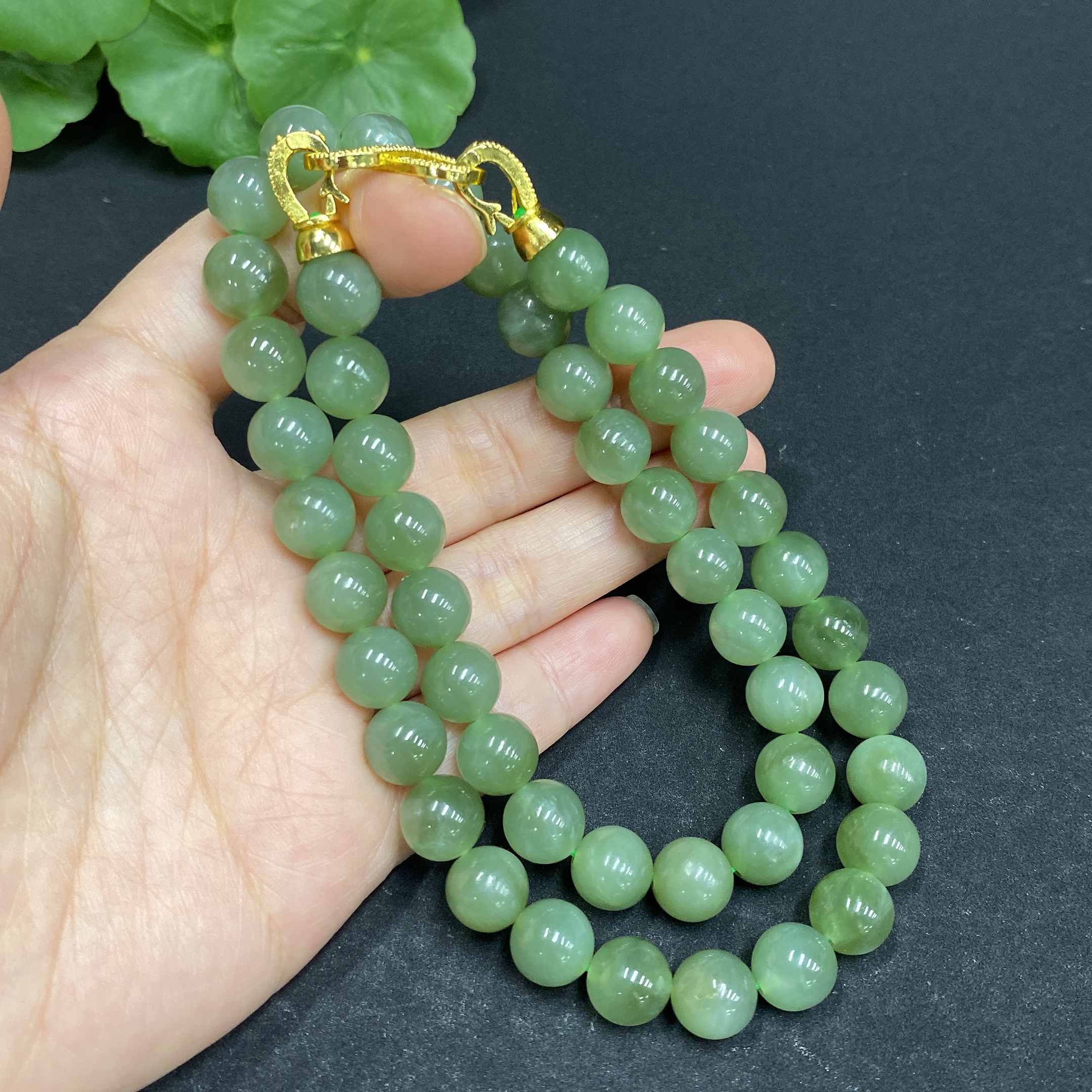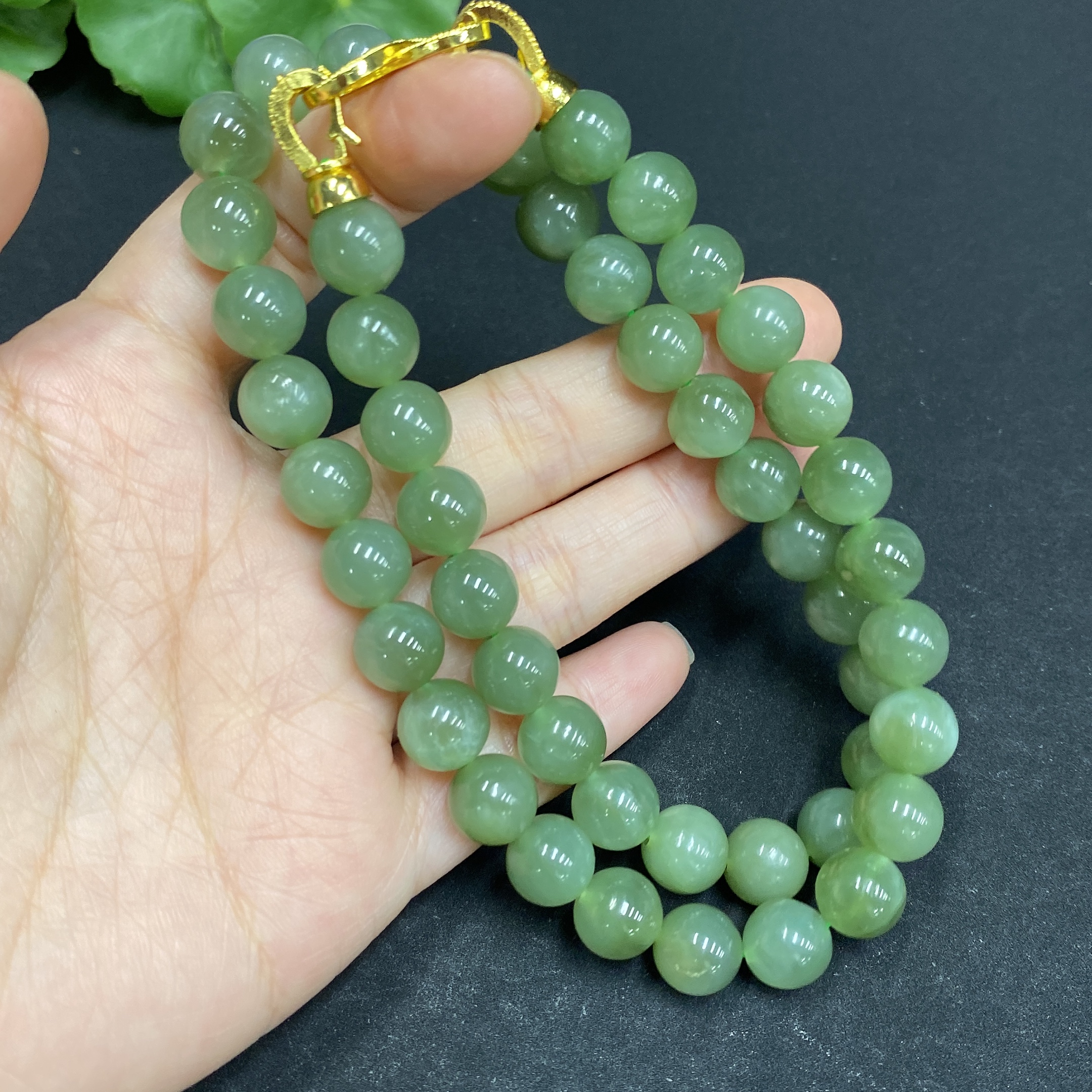 Hetian Jade Bead Necklace Approx. 9.3mm Non-gold-inlaid Total Weight Approx. 66.5g