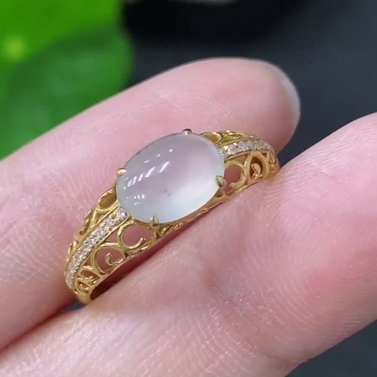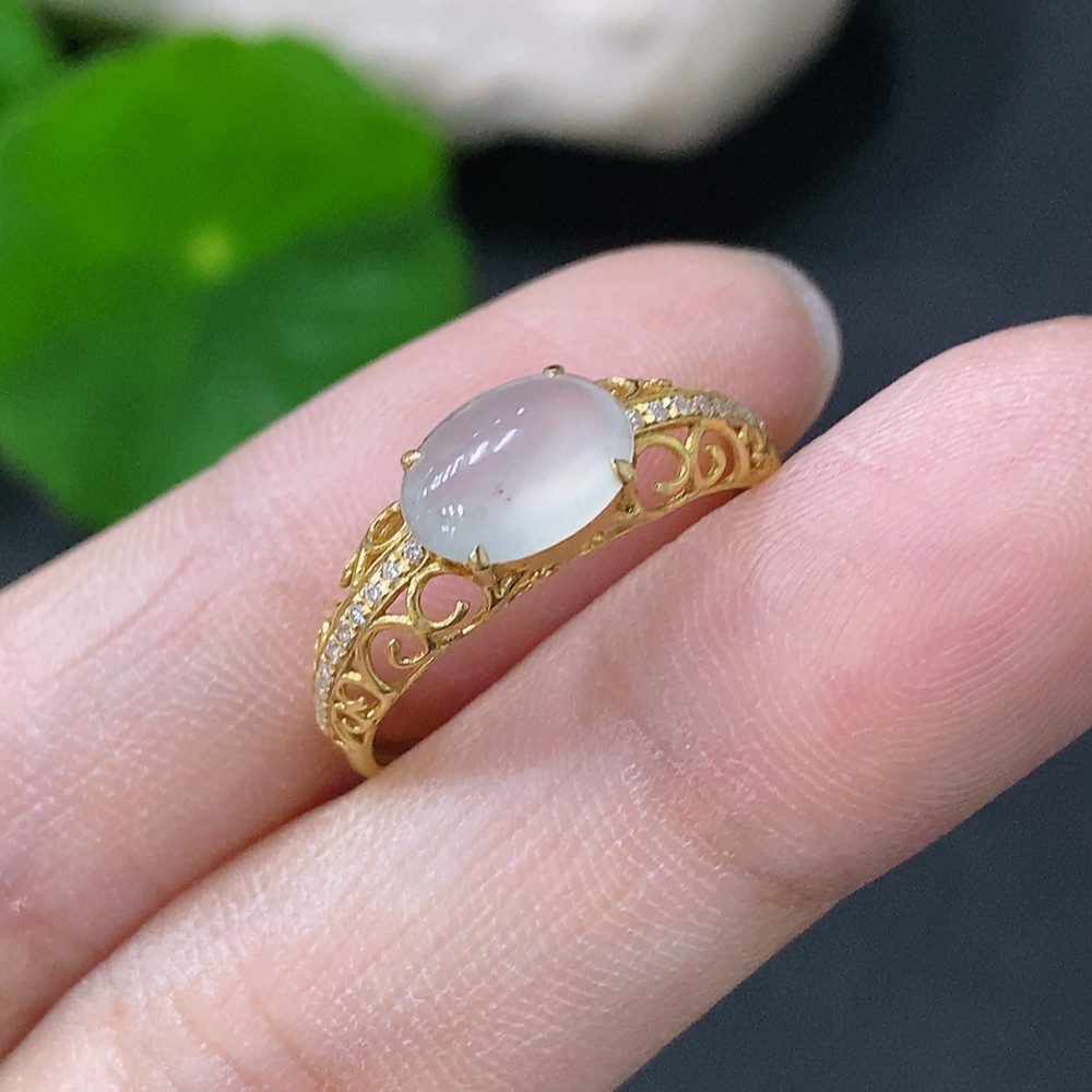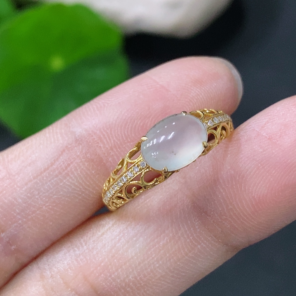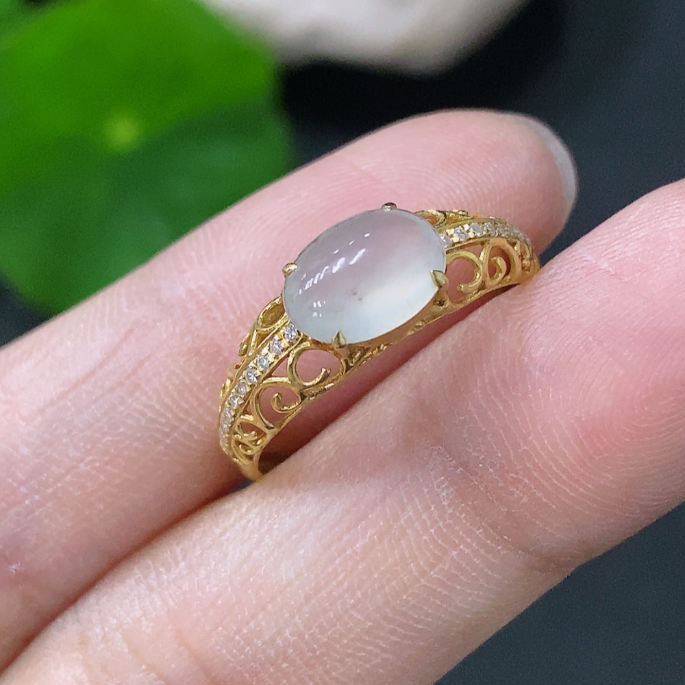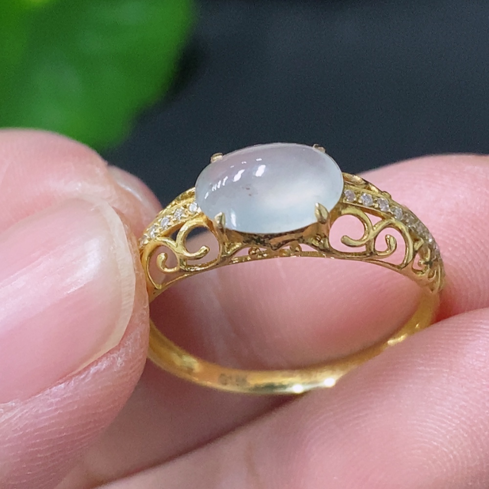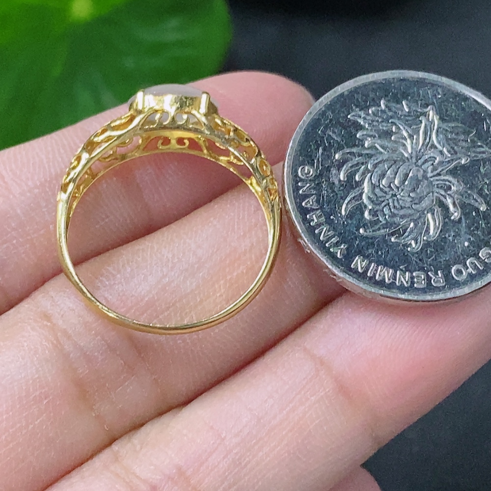 Jadeite inlaid ring 18k non-diamond size 14 total weight approx. 1.39g