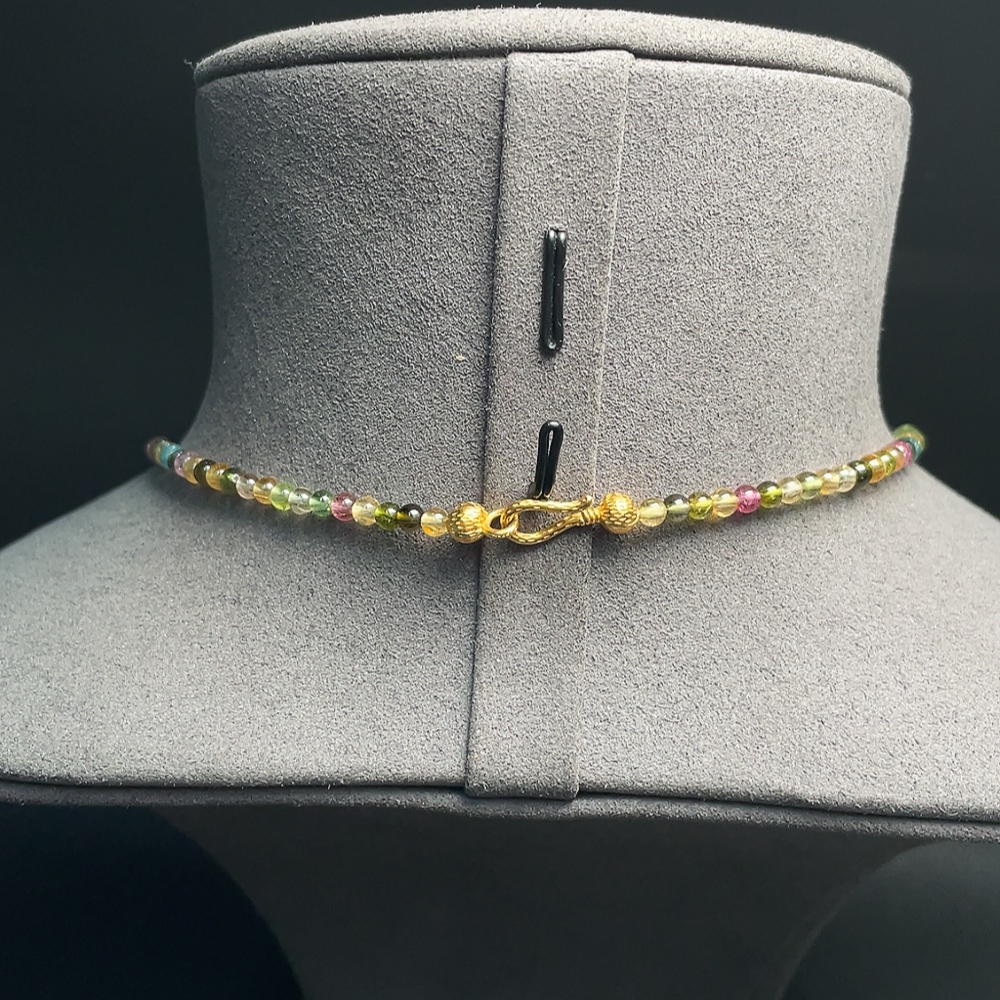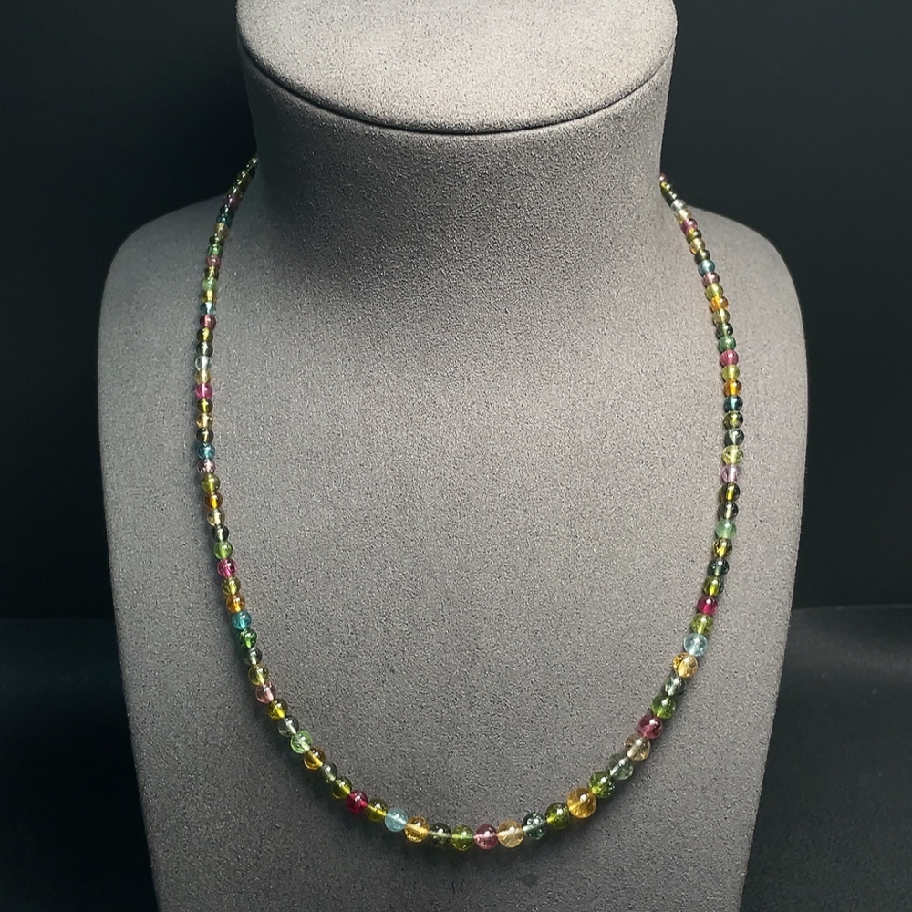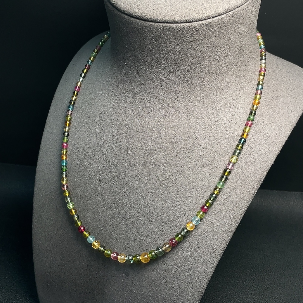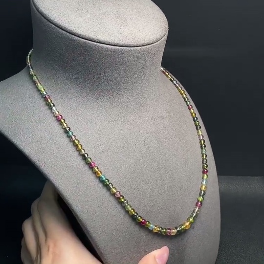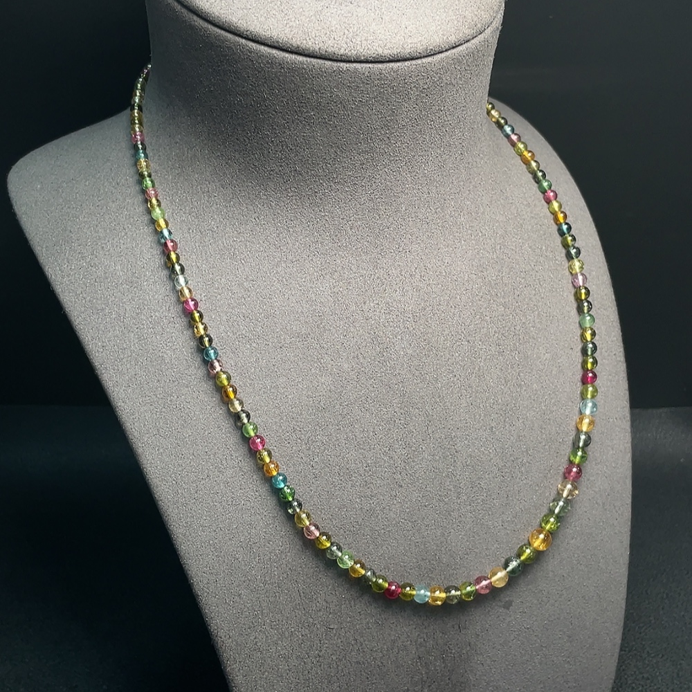 Tourmaline bead necklace with other mineral components, visible organic matter, non-gold, total weight approx. 15.52g, bead size approx. 4.5mm