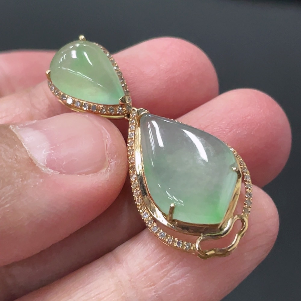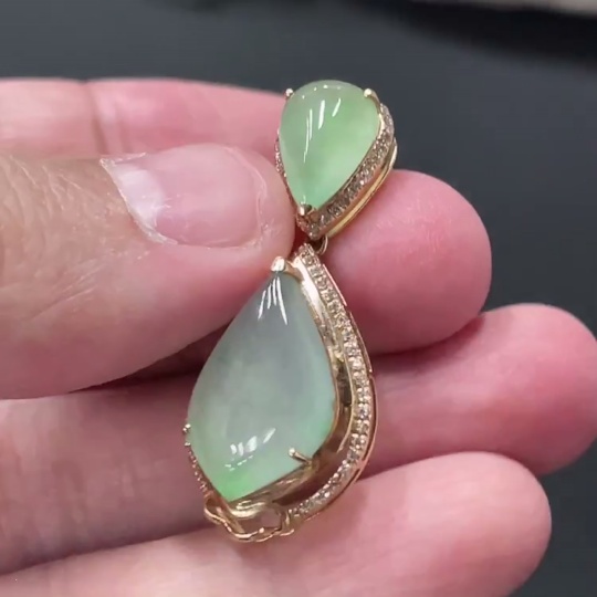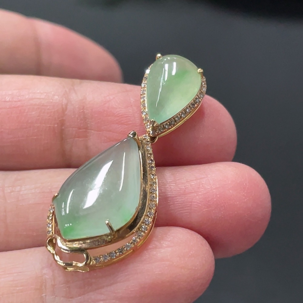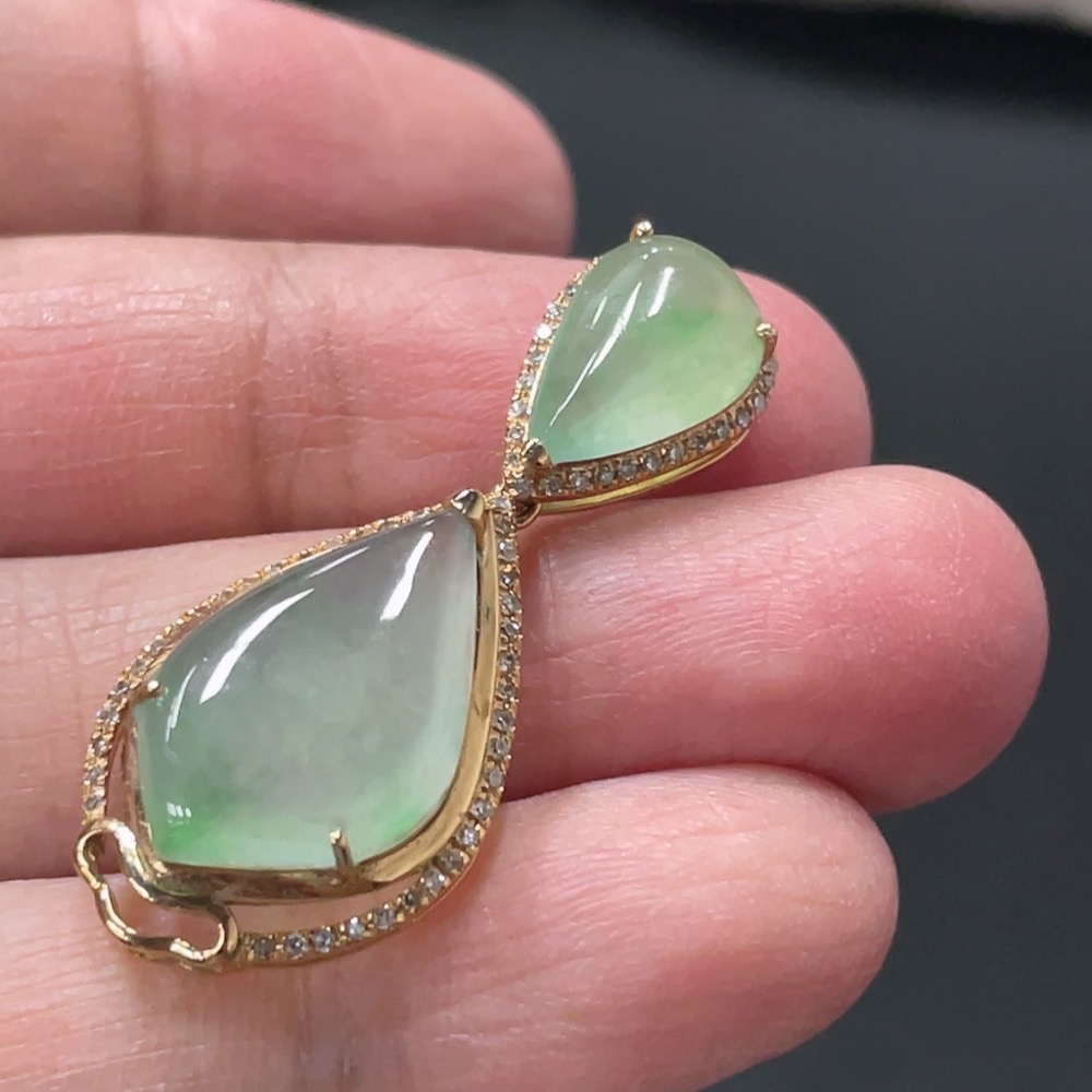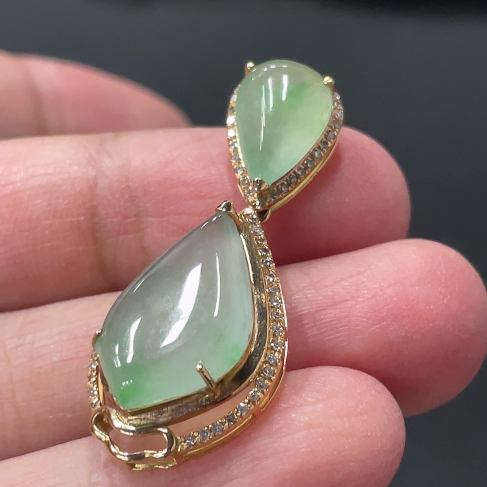 Jadeite Teardrop Inlay Pendant 18k Gold Inlaid with Diamonds Total Weight Approx. 3.58g