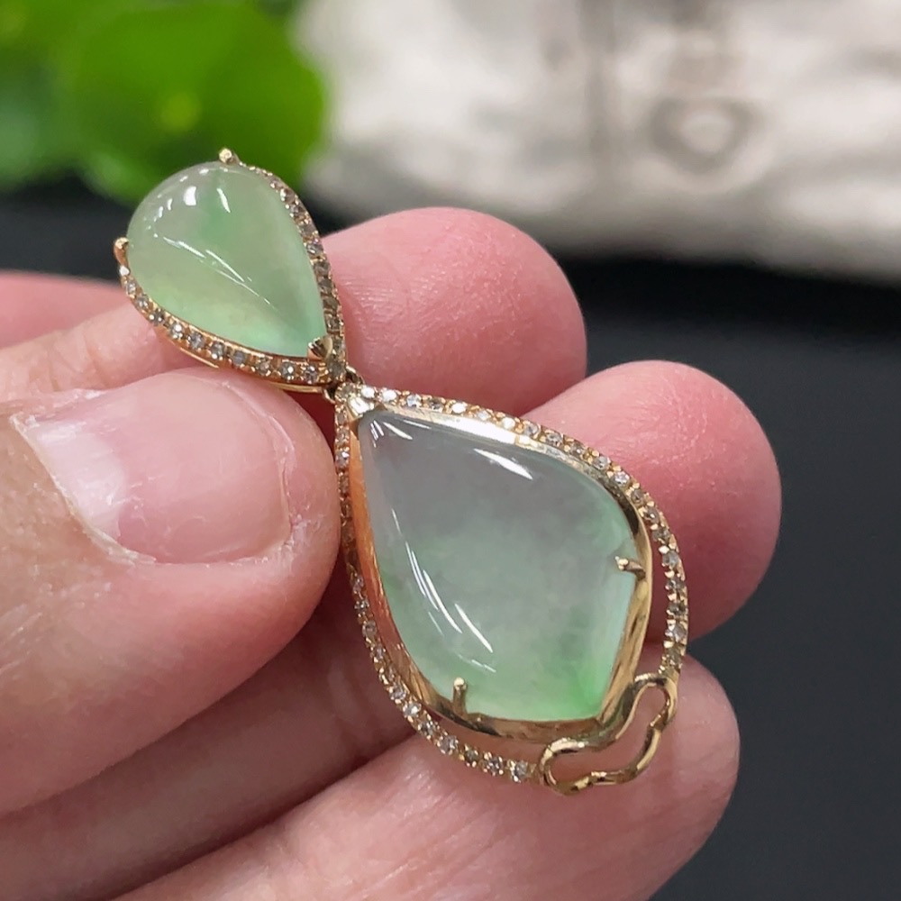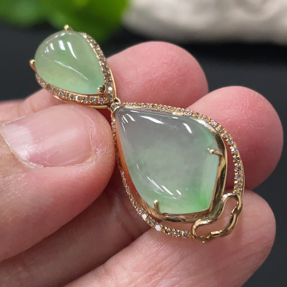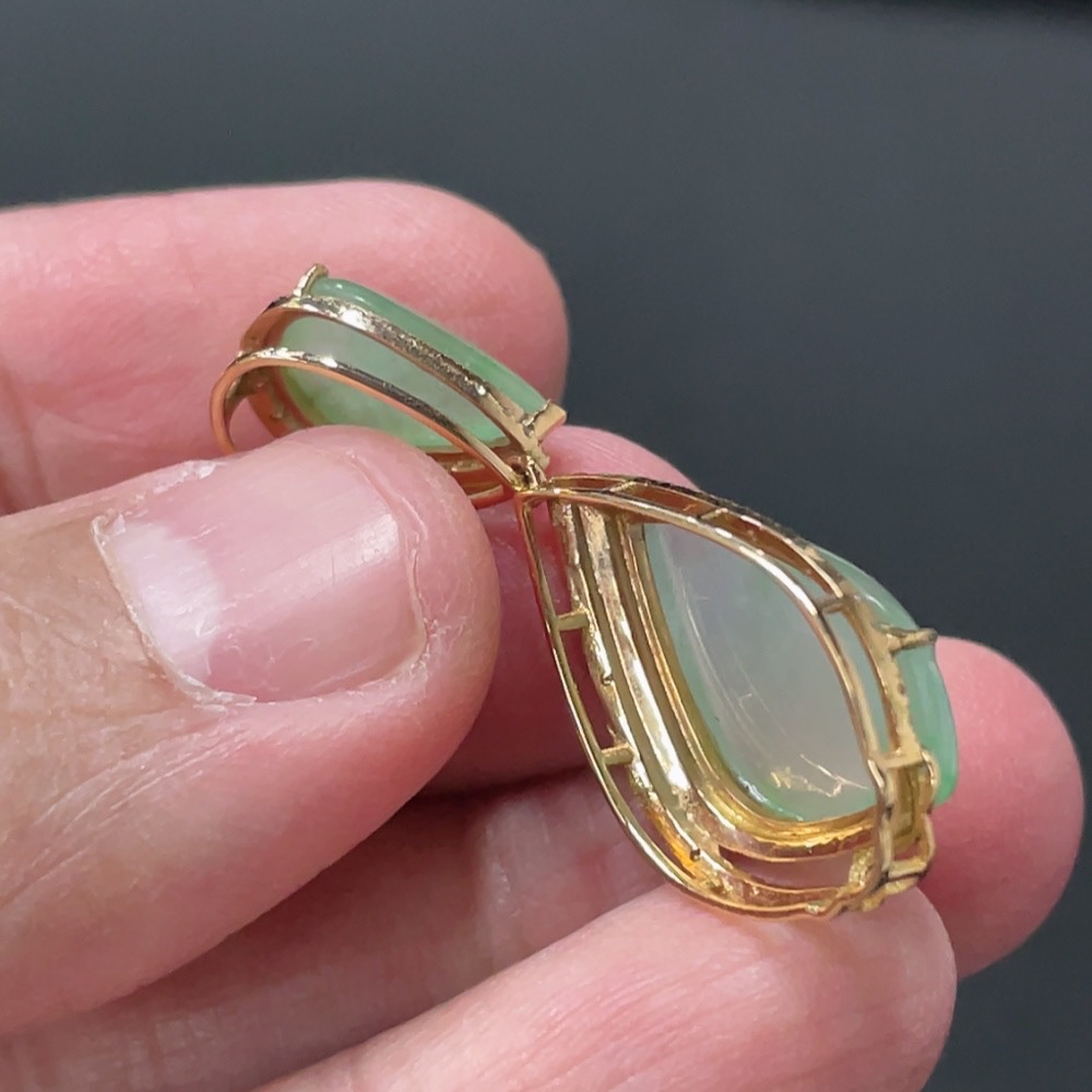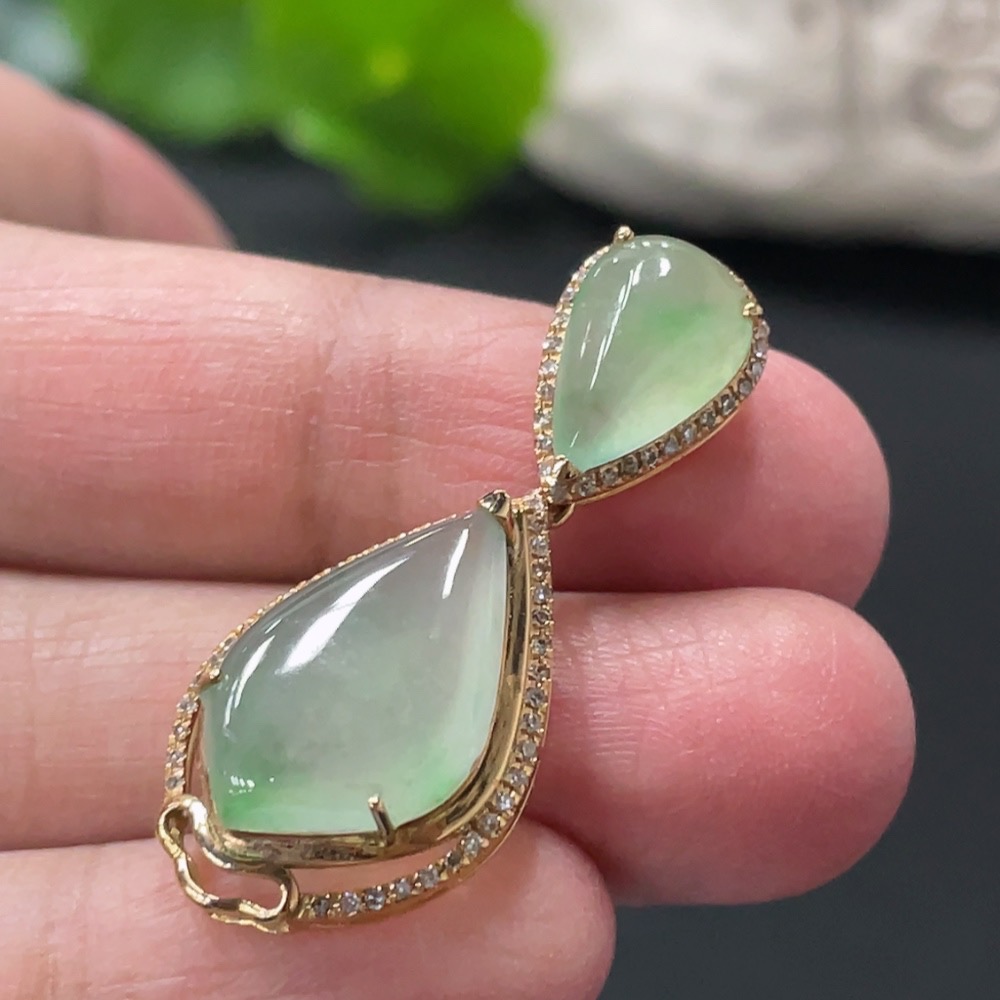 Jadeite Teardrop Inlay Pendant 18k Gold Inlaid with Diamonds Total Weight Approx. 3.58g