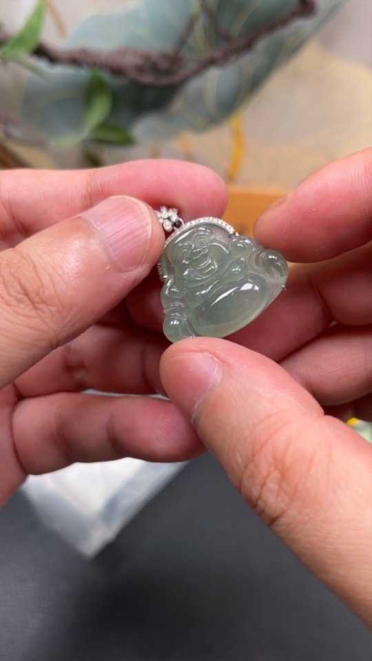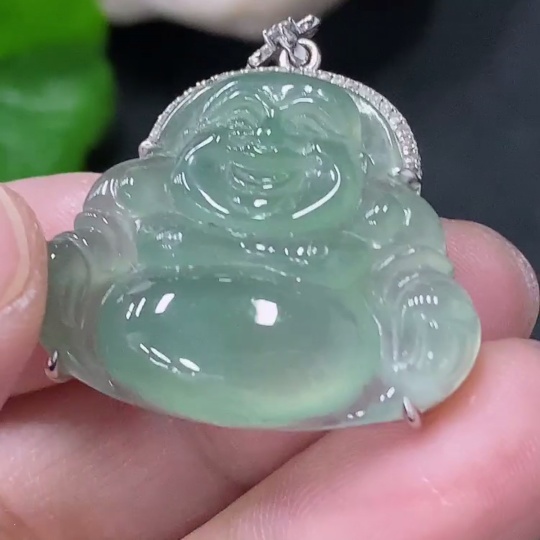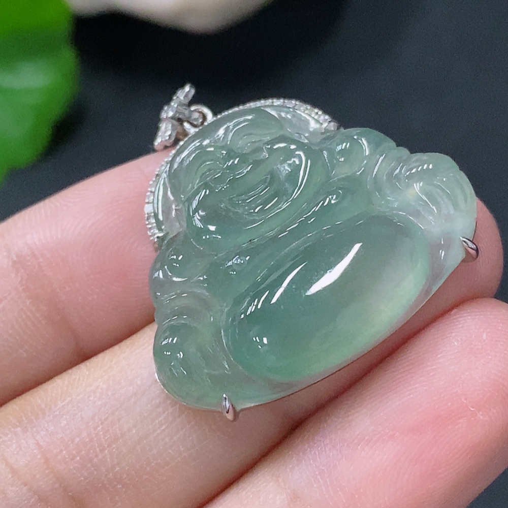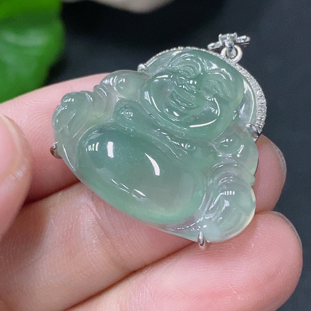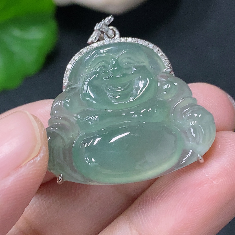 Jadeite Inlaid Buddha Pendant with 18k Gold and Diamonds, Total Weight Approx. 5.98g